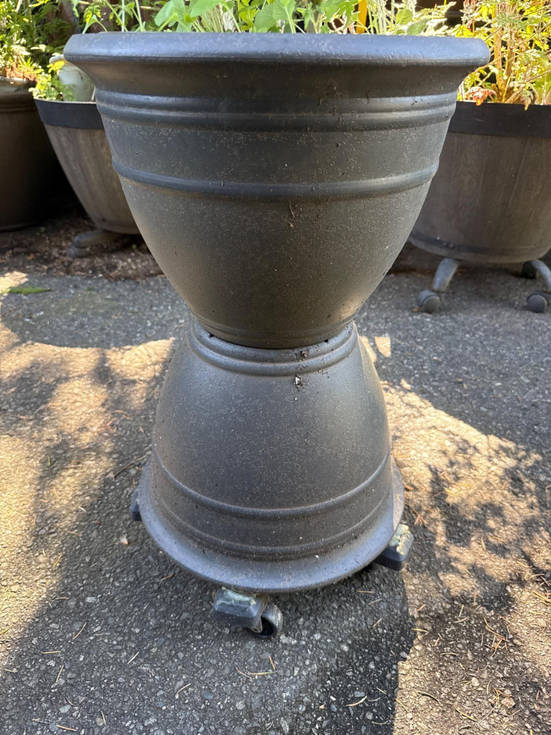 **Note: Plant dimensions are approximate. Plant health is not guaranteed but are being maintained. Plastic/Resin pot dimensions are: Stacked pot is 24in tall, 14in wide. One with wheeled base Plant dimensions from soil to tip are: Varies Blue Angel Plantain Lily Hosta 3 pots total