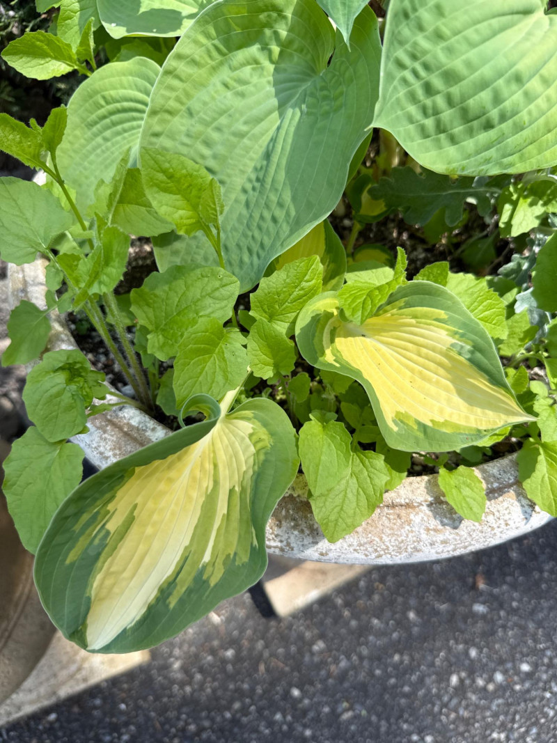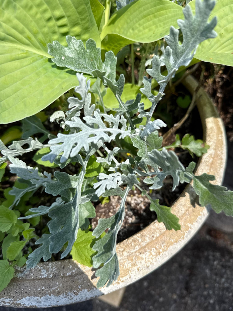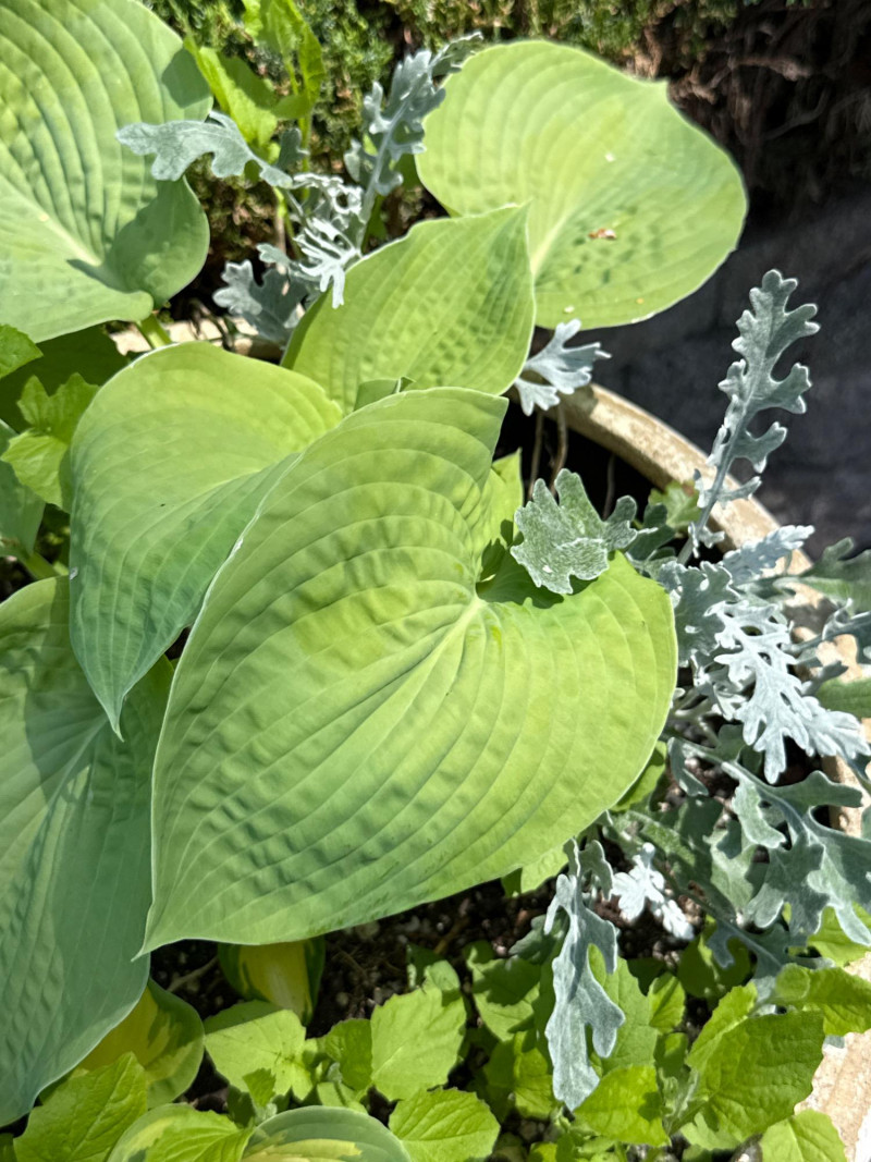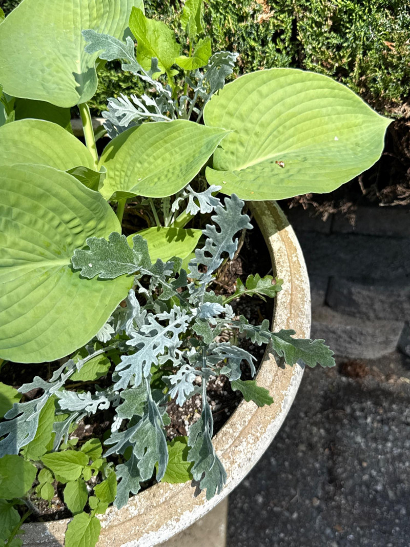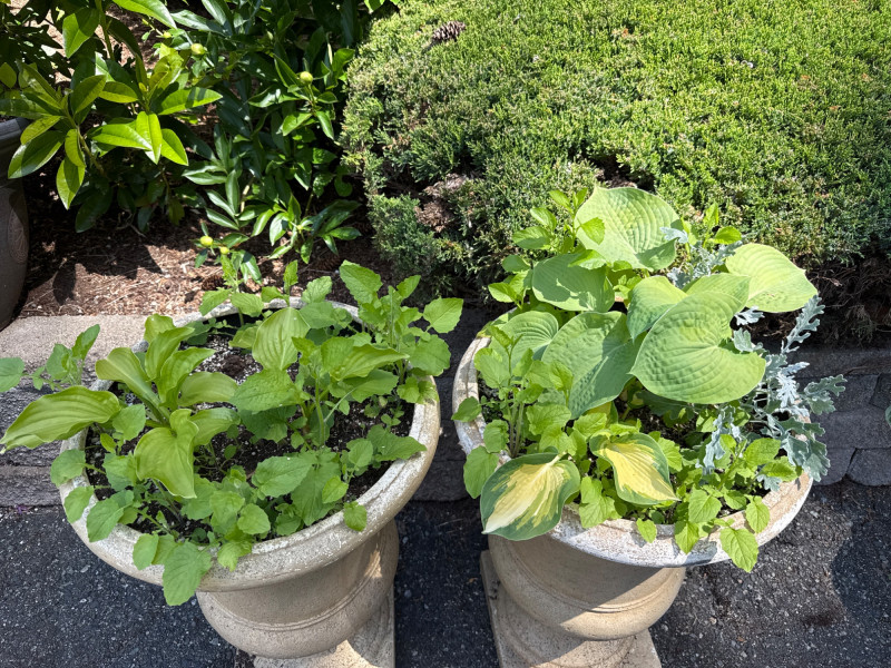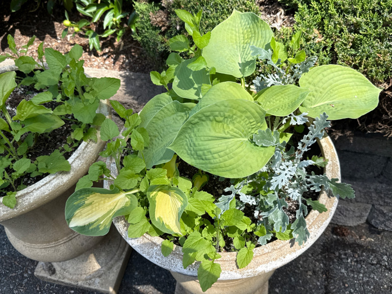 Lot # 116 - Hosta and Dusty Miller in Pedestal Pots