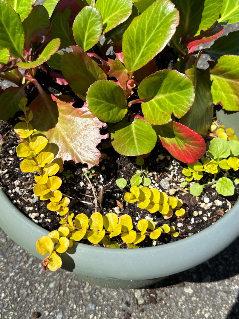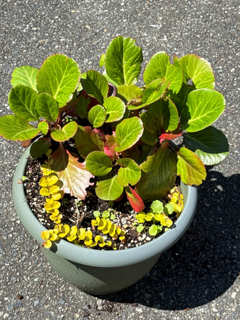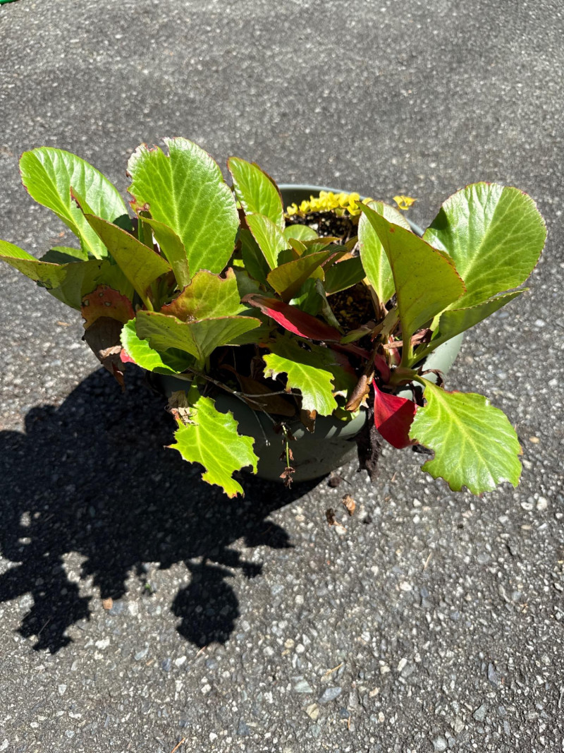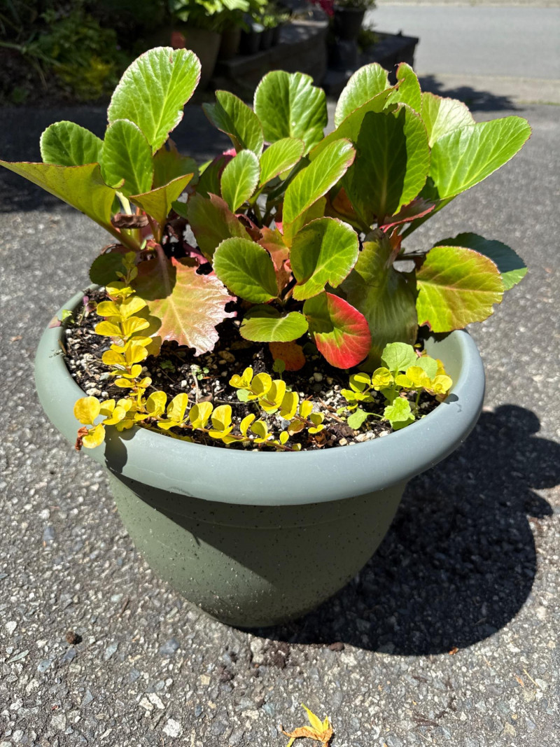**Note: Plant dimensions are approximate. Plant health is not guaranteed but are being maintained Plastic/Resin pot dimensions are: 14 inches wide, 22 inches tall. Three pots total Plant dimensions from soil to tip are: Varies Iris, Kalanchoe, Hosta, Creeping Jenny One pot is damaged