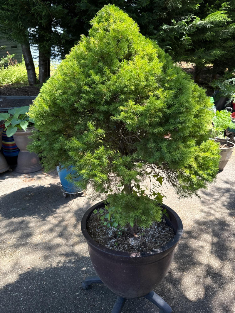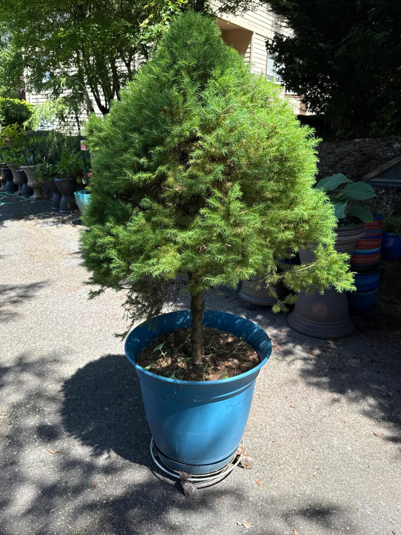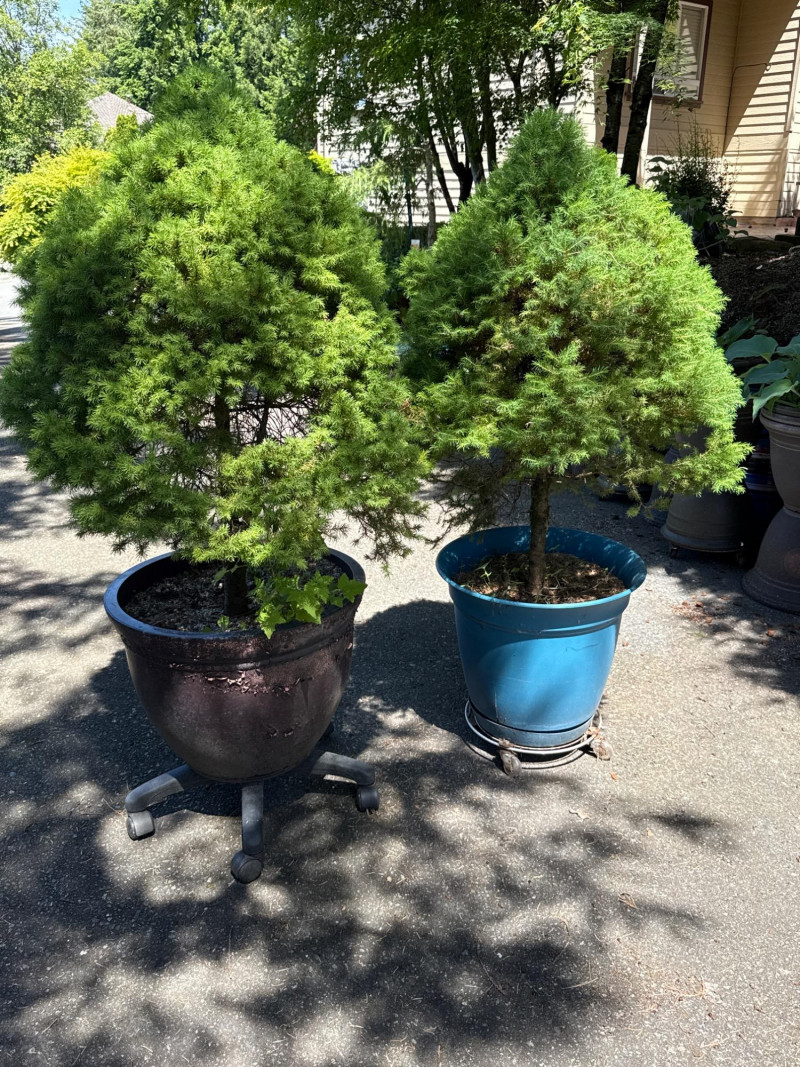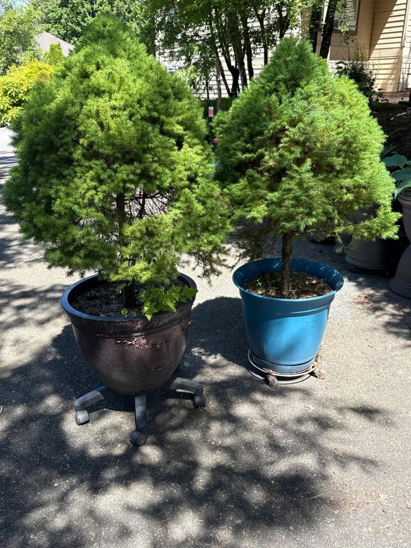 Lot # 124 - Dwarf Alberta Spruce Tree Duo in Pots with Wheels