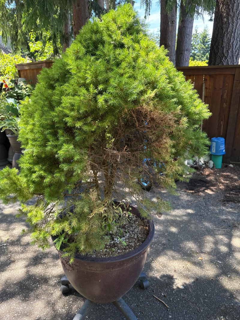 **Note: Plant dimensions are approximate. Plant health is not guaranteed but are being maintained Plastic/Resin pot dimensions are: 22 inches wide, 22 inches tall. Second is 20in tall, 20in wide Plant dimensions from soil to tip are: 44in tall, 35in wide. 44in tall, 34in wide Heavy, with easy load location. Bring support and equipment to help load.