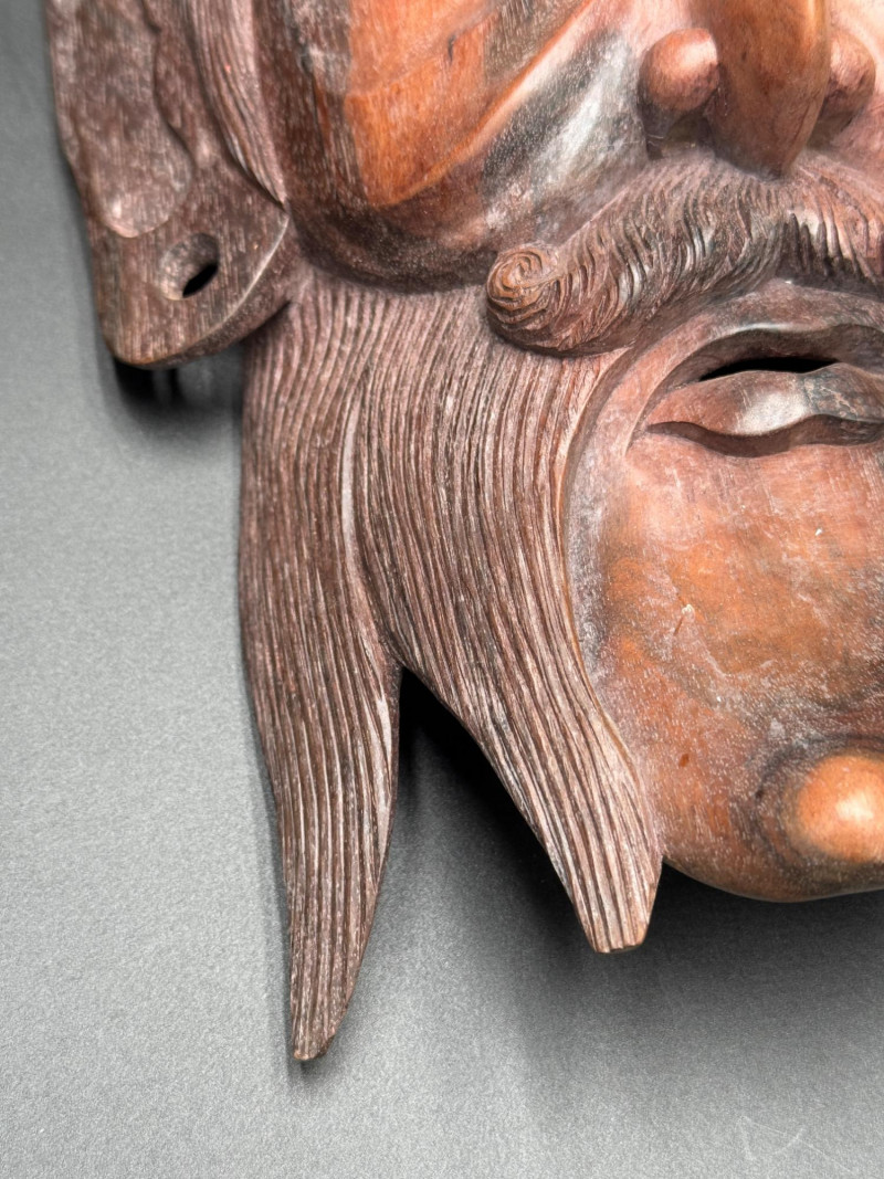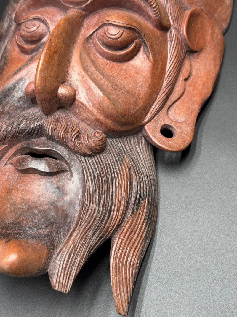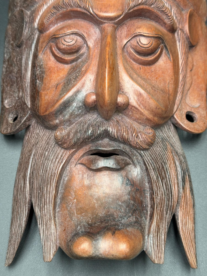Lot # 92 - Hand-Carved Wooden Tribal Mask – Bearded Elder with Leaf Headdress