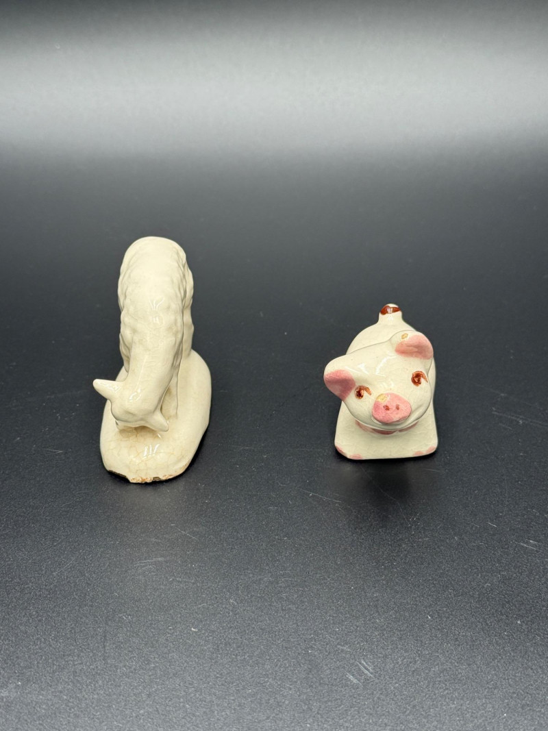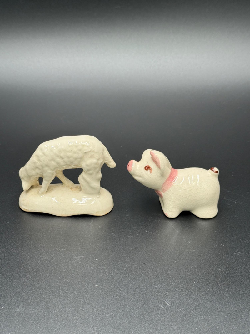 Lot # 134 - Royal Haeger Green Dish with Pig and Sheep Figurines