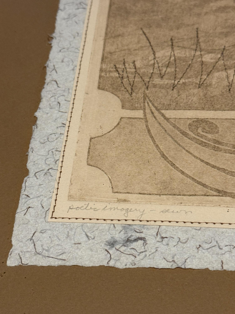 Lot # 9 - "Poetic Imagery – Sewn" by M.P. Marion Original Etching Landscape Art