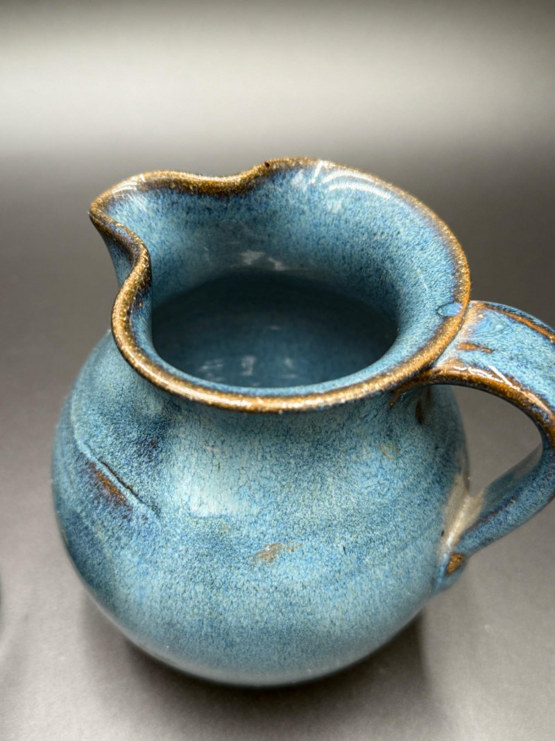 Lot # 52 - Trio of Studio Art Pottery – Blue Glazed Vases & Pitchers