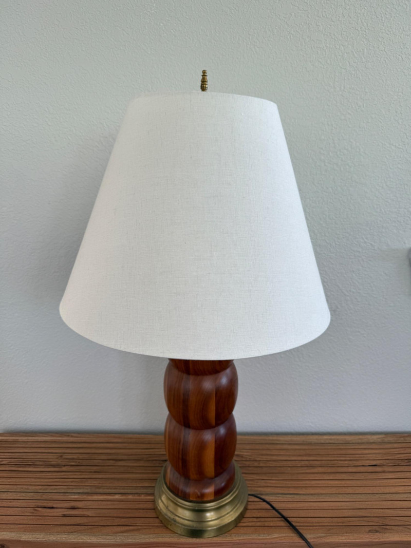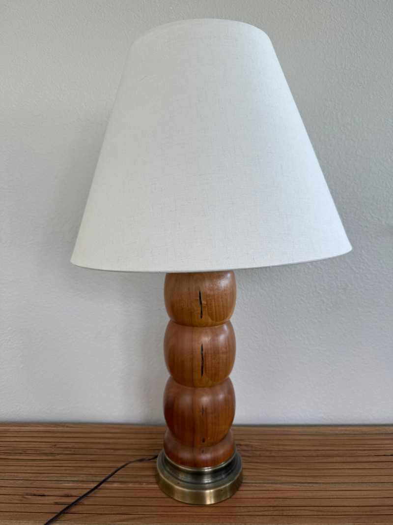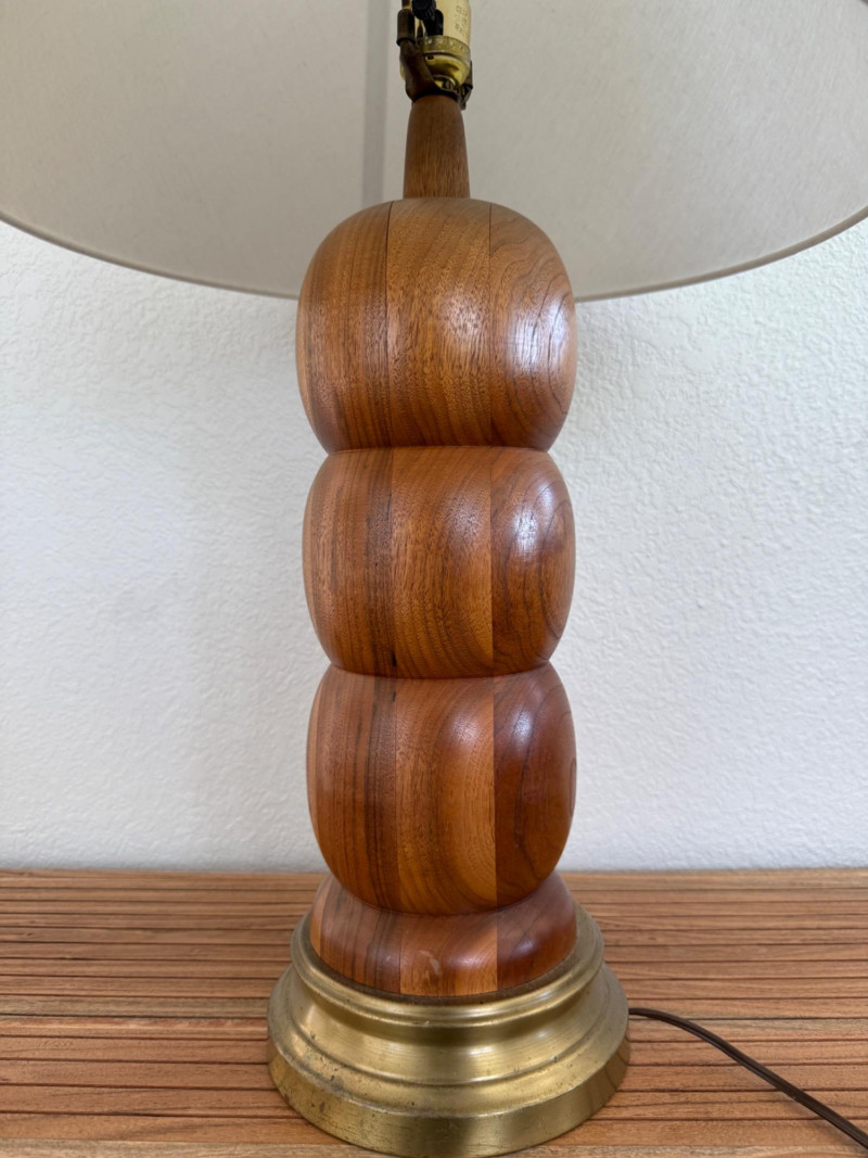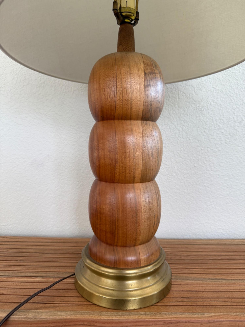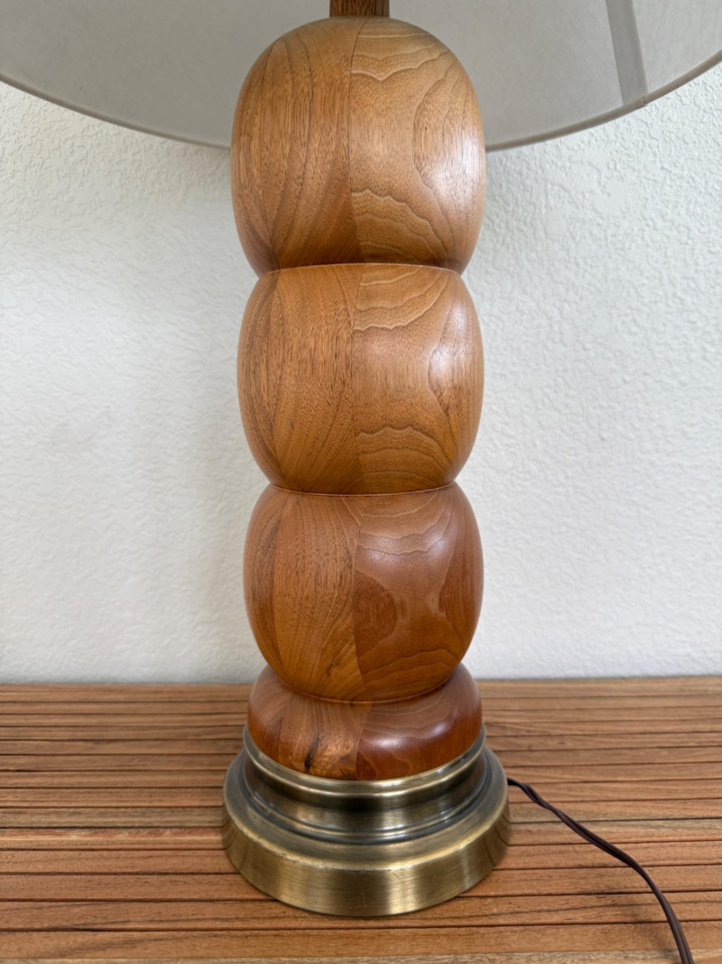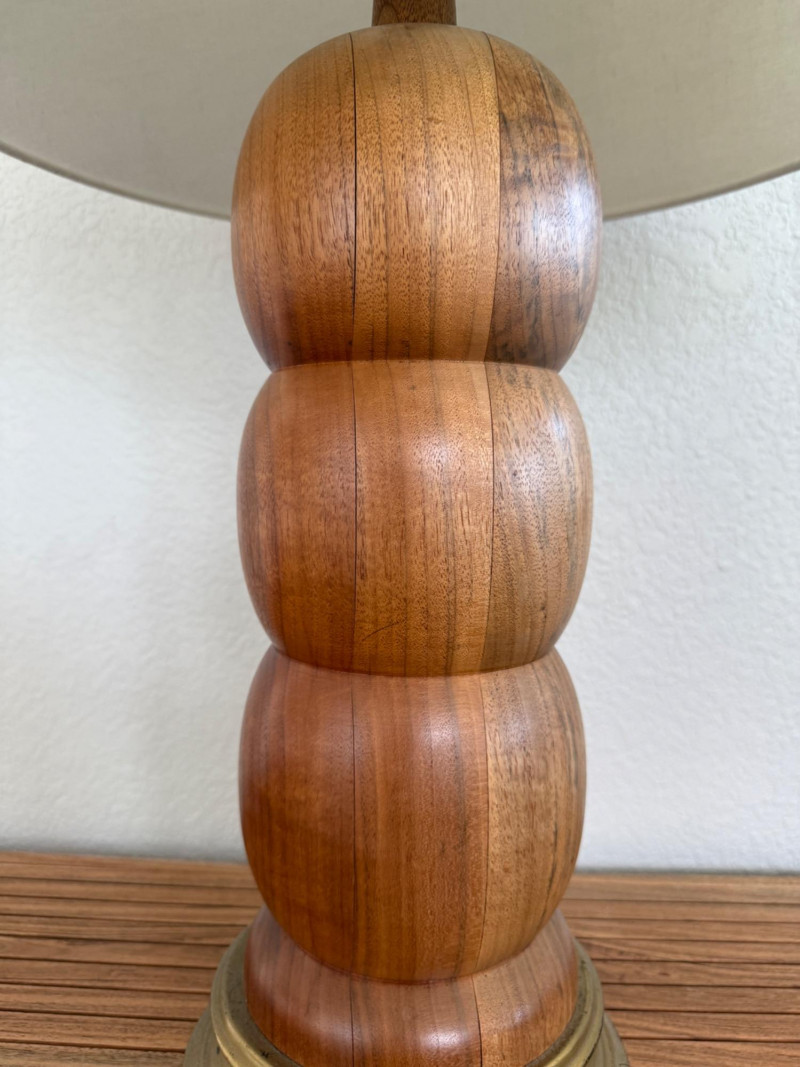Lot # 82 - Pair of Stacked Wood Table Lamps with Brass Base
