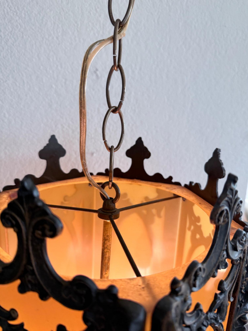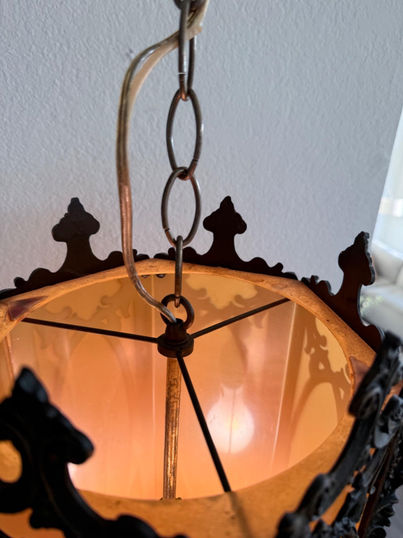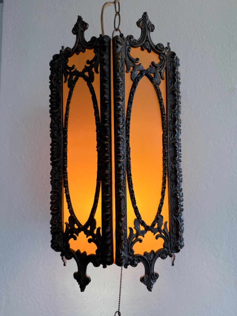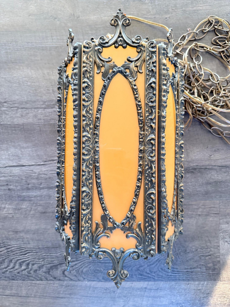 Lot # 106 - Vintage Hanging Light with Ornate Frame Plug In