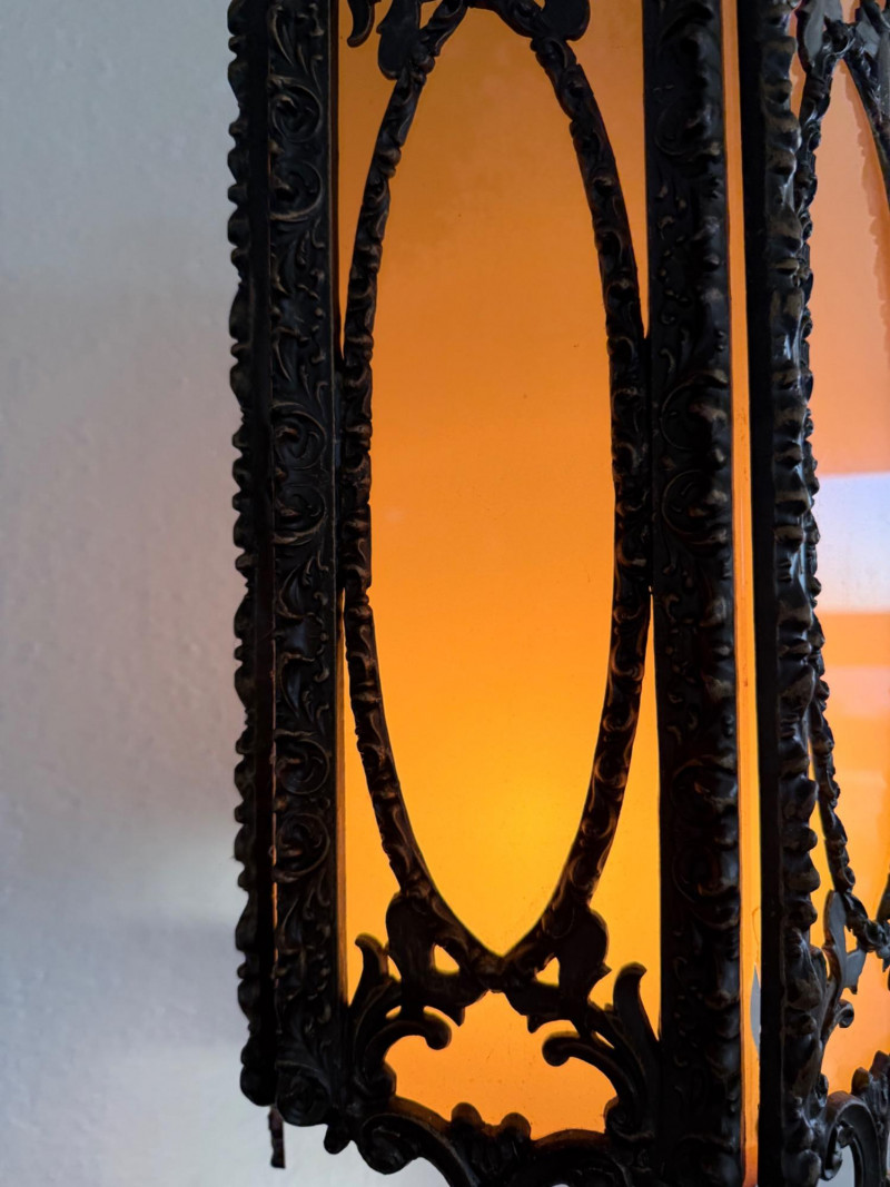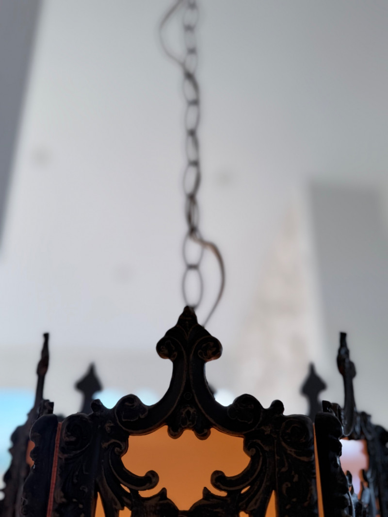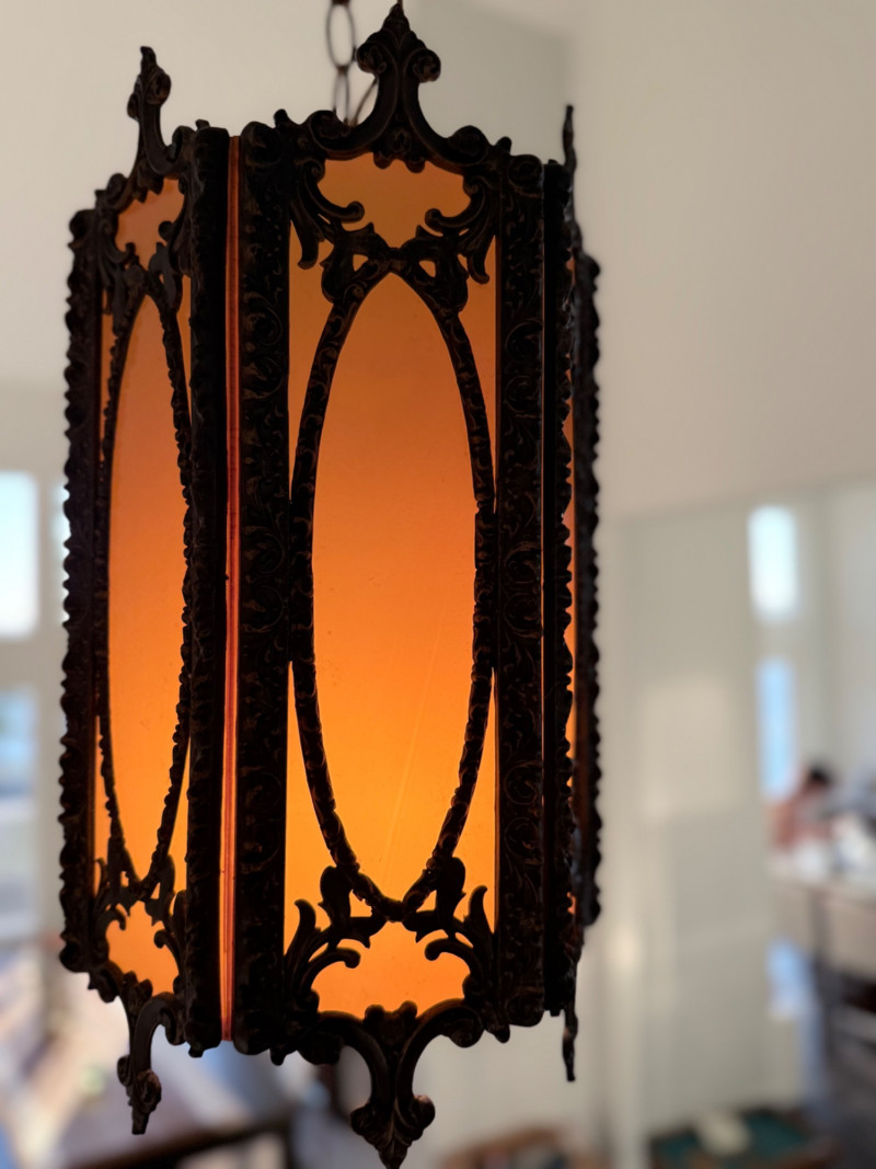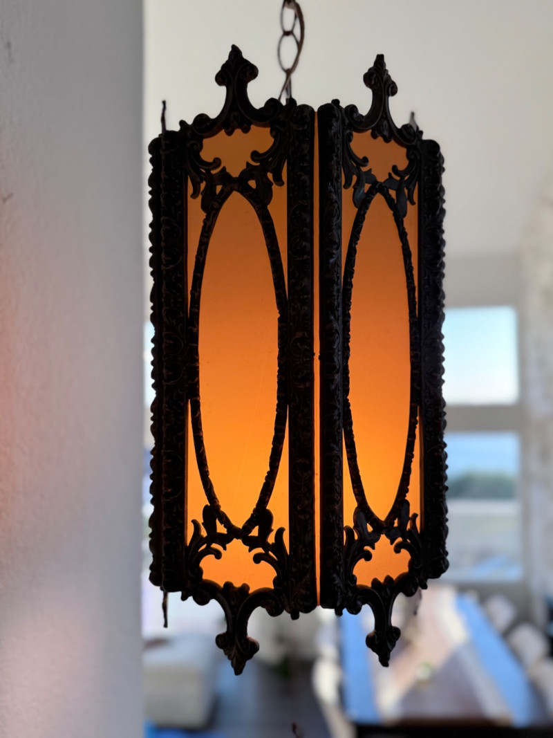 Lot # 106 - Vintage Hanging Light with Ornate Frame Plug In