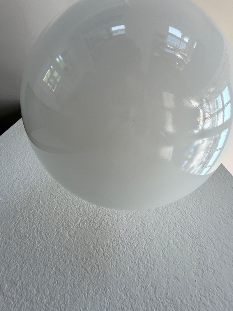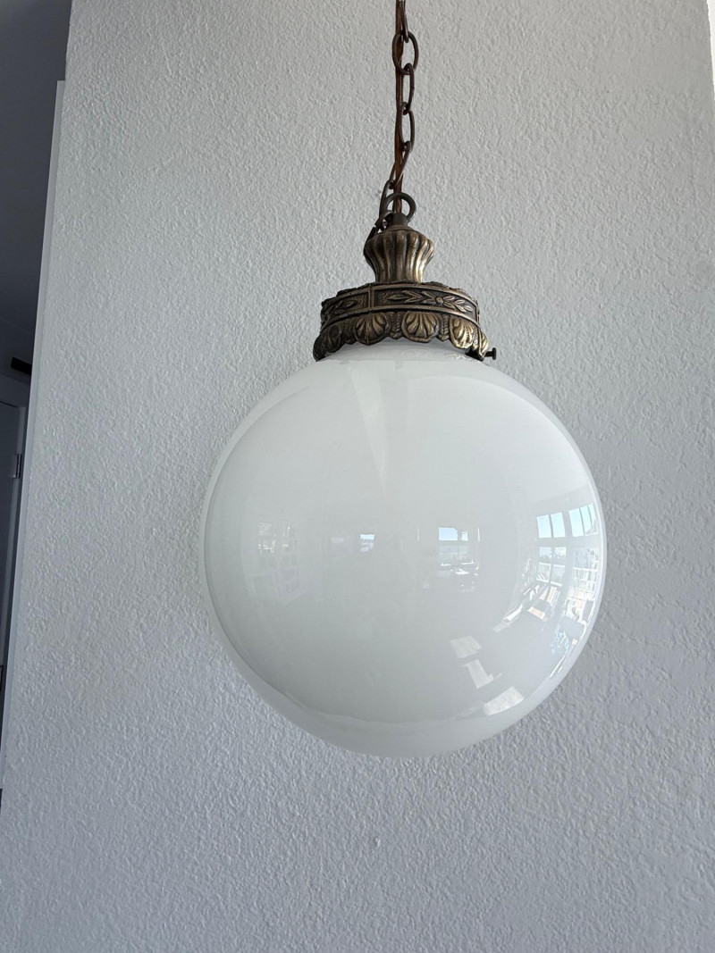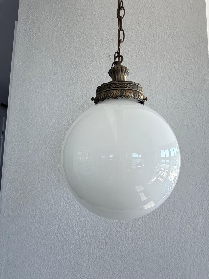 Lot # 107 - Brass Pendant Light with Opaline Glass Globe