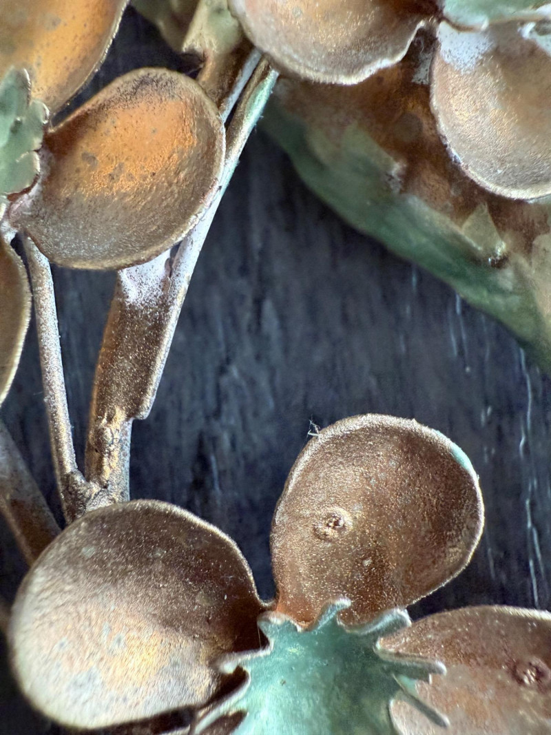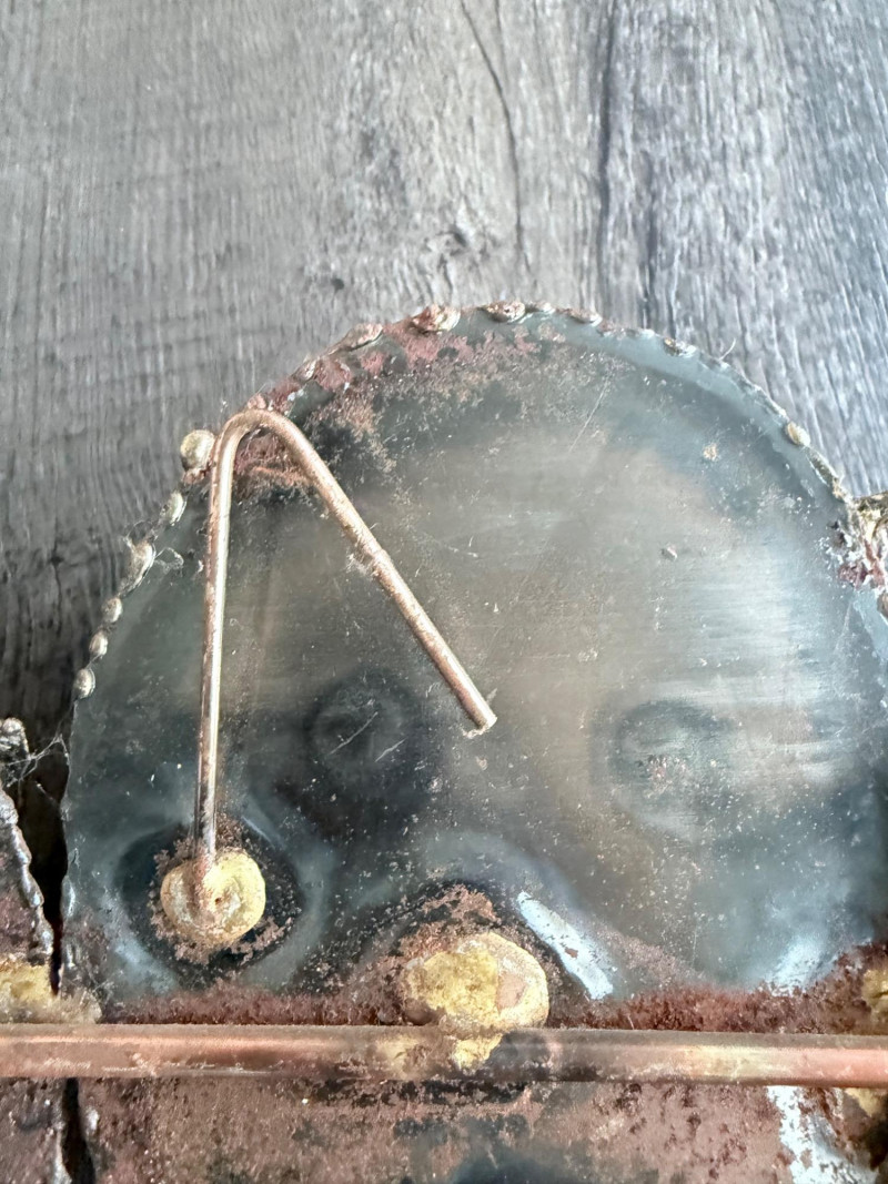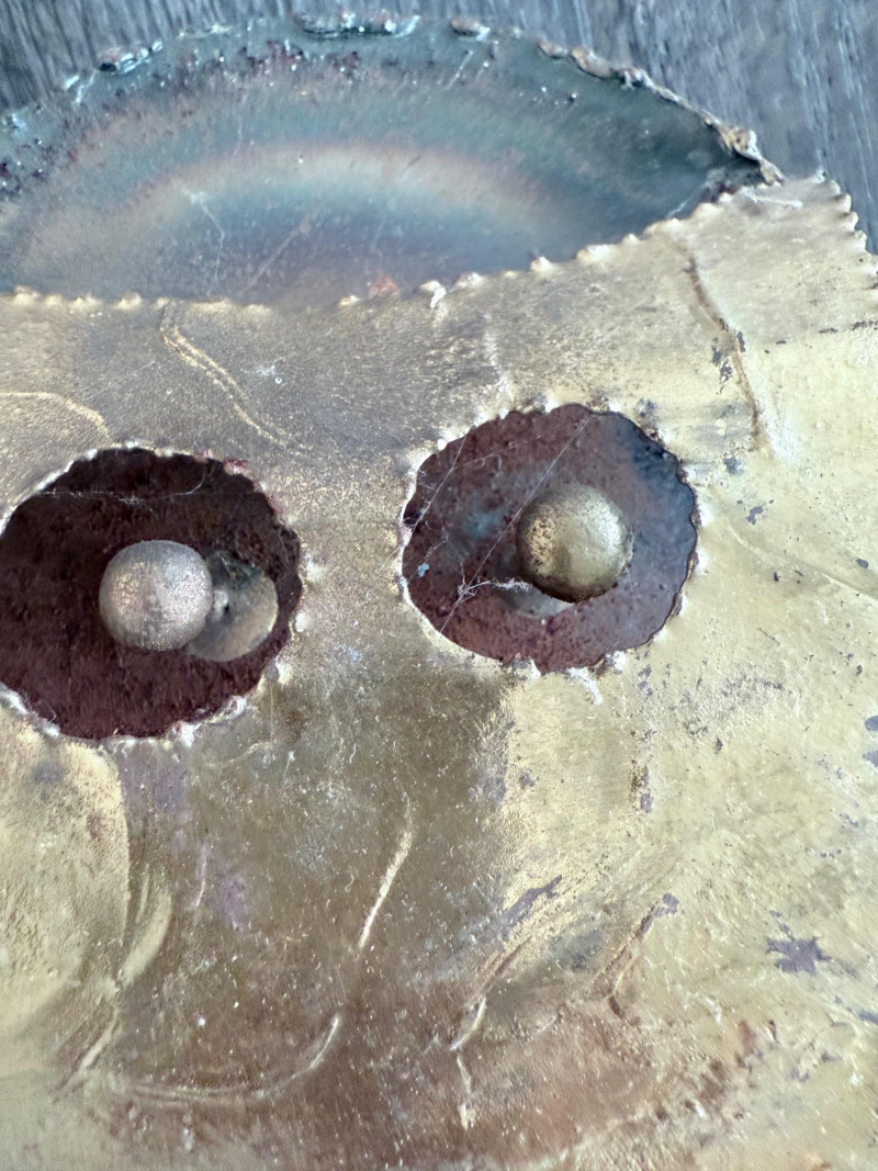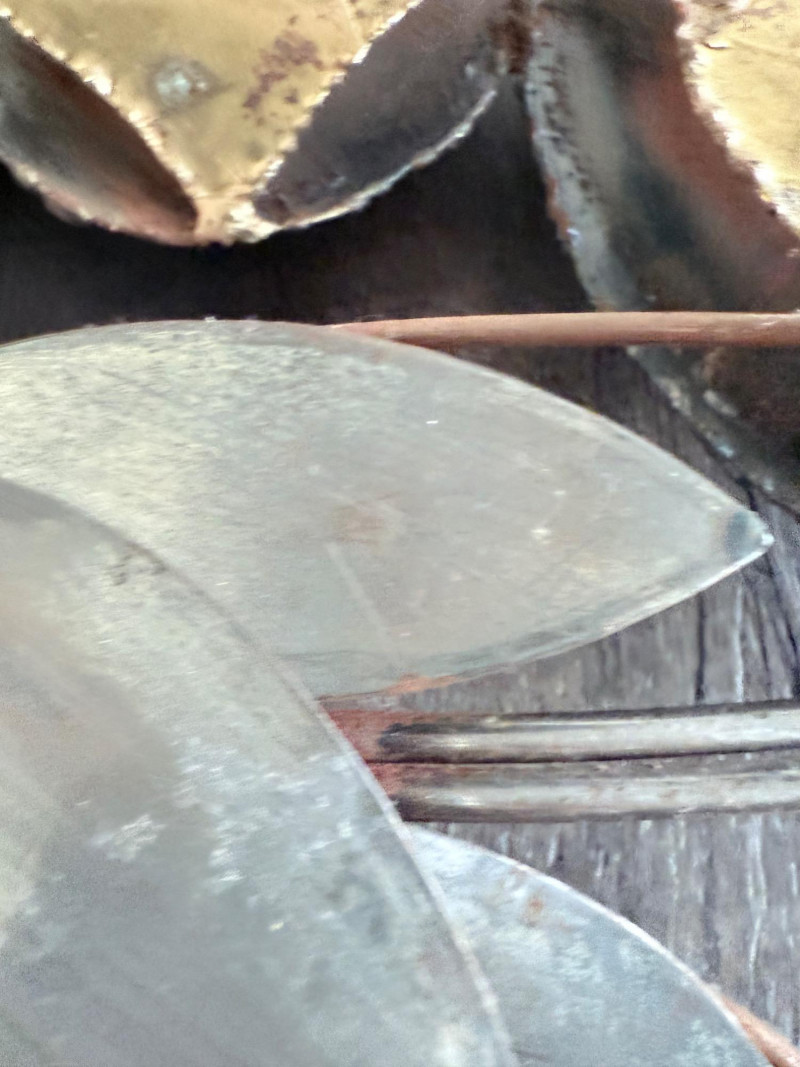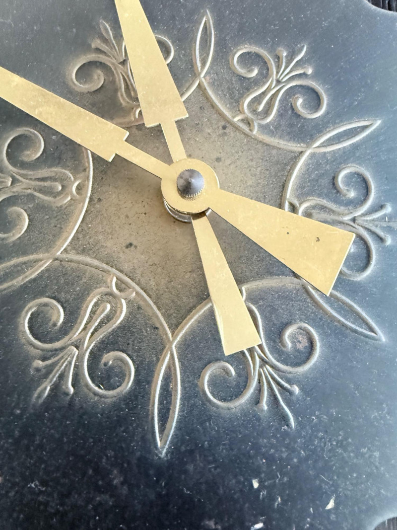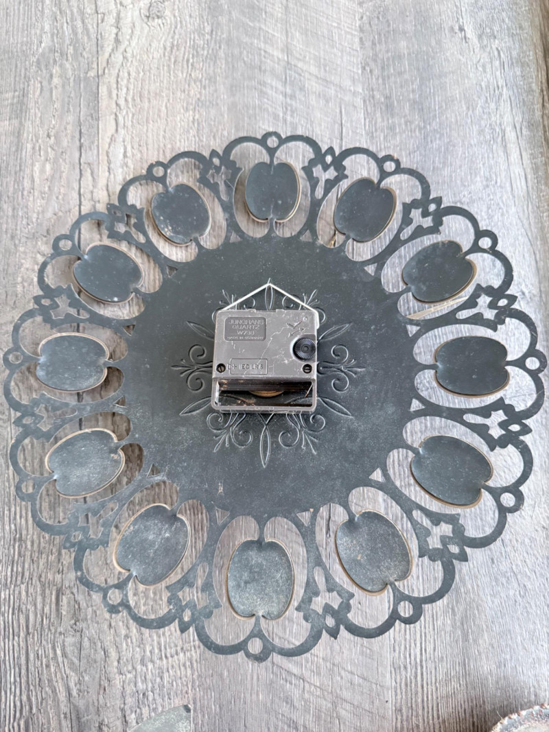 Vintage Metal Wall Art Collection – Owls, Clock & Floral Bird Panel (3 Pieces) Bring a touch of vintage charm and artistic texture to your space with this 3-piece metal wall art collection, each item offering unique handcrafted detail and mid-century appeal. This mixed lot includes a sculptural owl trio, a decorative Roman numeral wall clock, and a floral bird relief panel. Included in this lot: Three Owls on Branch Wall Art Size: 27" x 13" Features layered metal textures with gold-toned and patinated finishes Stylized design with hand-formed leaves and whimsical expressions Metal Roman Numeral Wall Clock (Not Tested) Size: 11" diameter Decorative black filigree-style backing with raised gold Roman numerals Please note: Clock is untested and may require a new mechanism or battery Floral Bird Panel Art Size: 8" x 20" Features a delicately sculpted bird perched among blossoms Aged green and bronze tones with beautiful patina throughout This collection is a wonderful example of vintage metalwork with a nature-inspired theme.