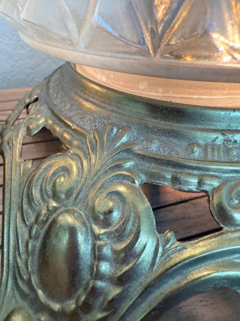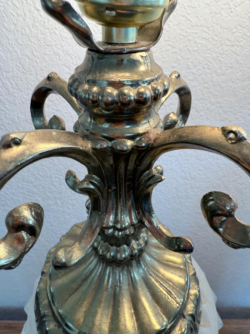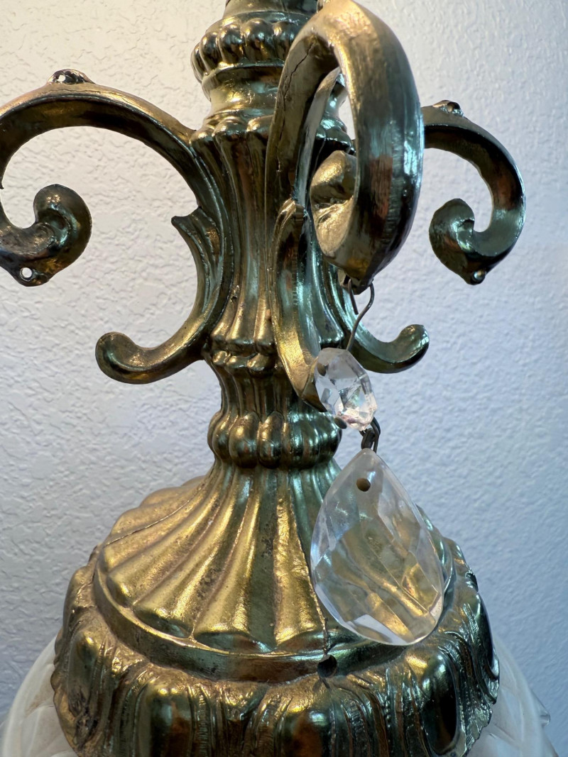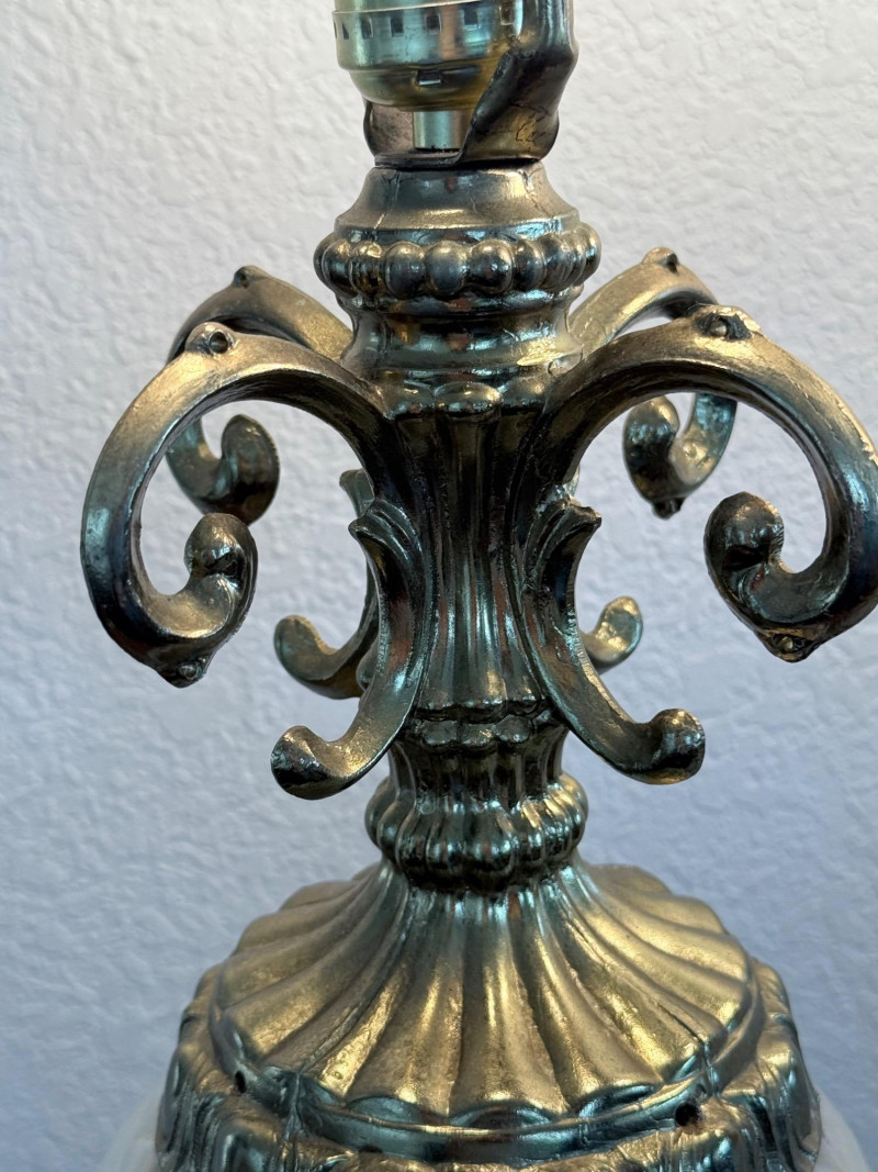 Lot # 71 - Vintage Pair of Ornate Frosted Glass and Brass Table Lamps – 23” Tall