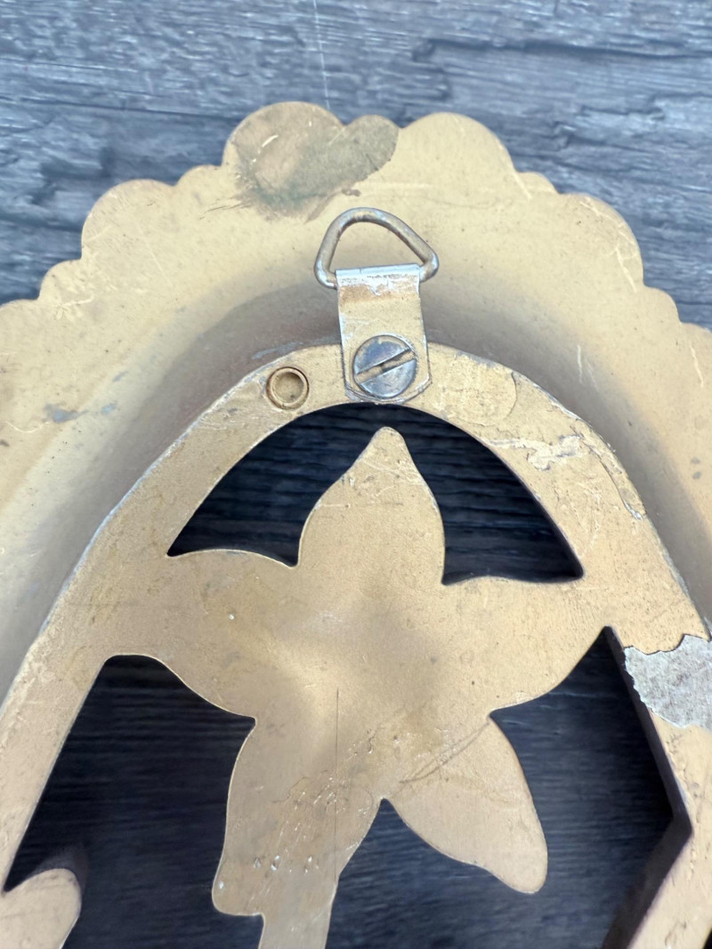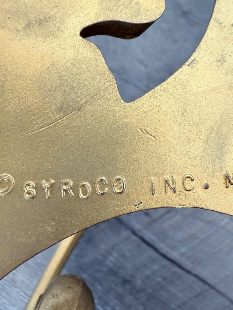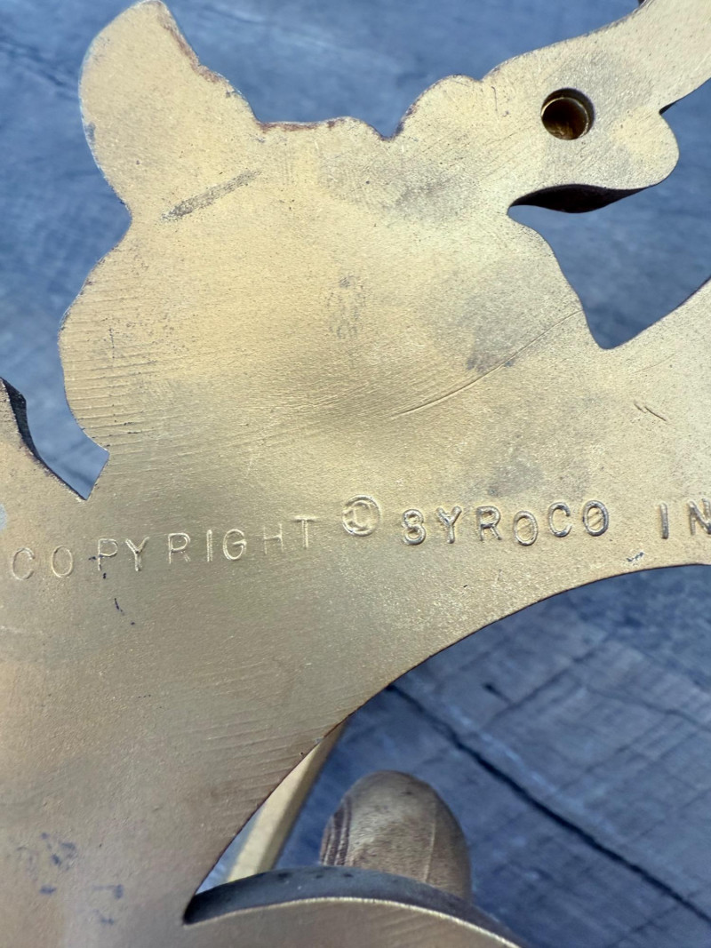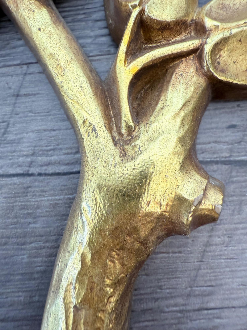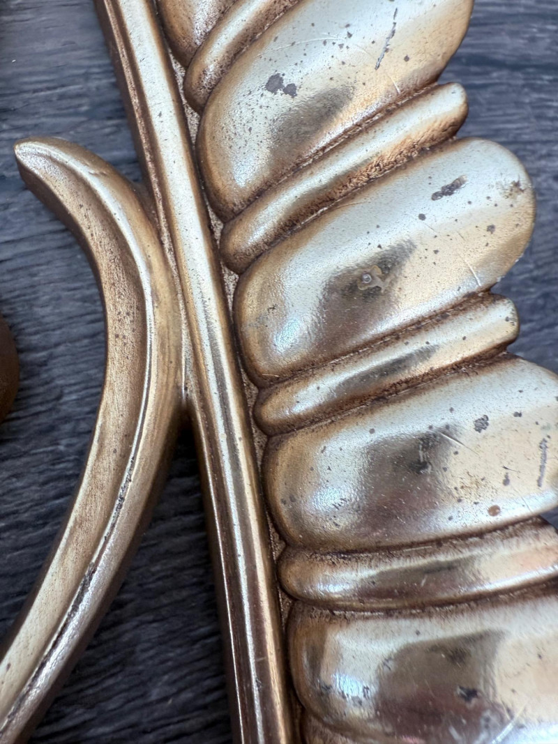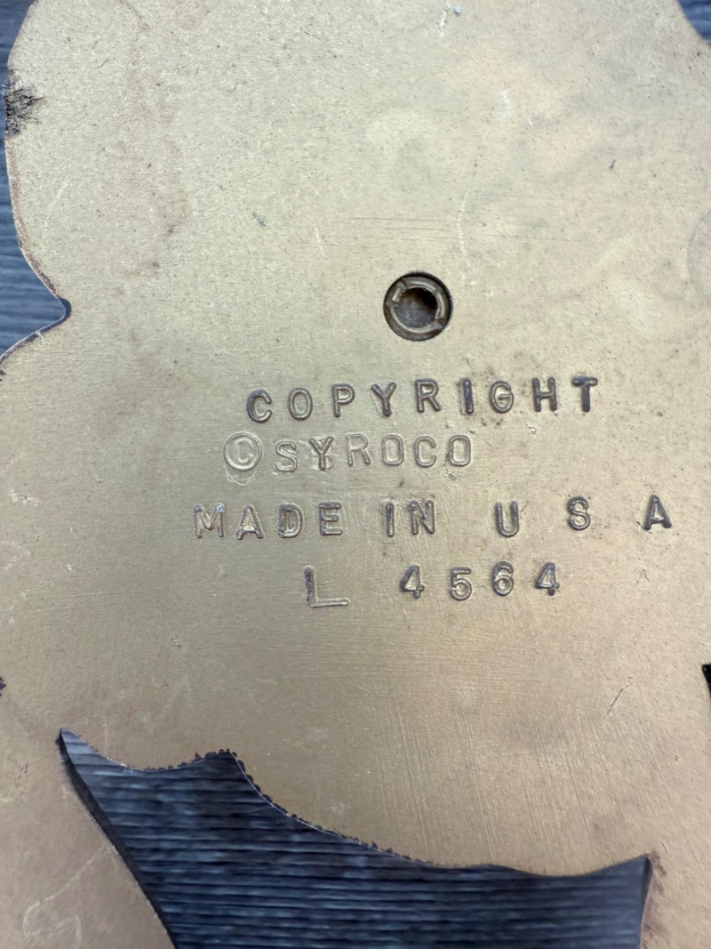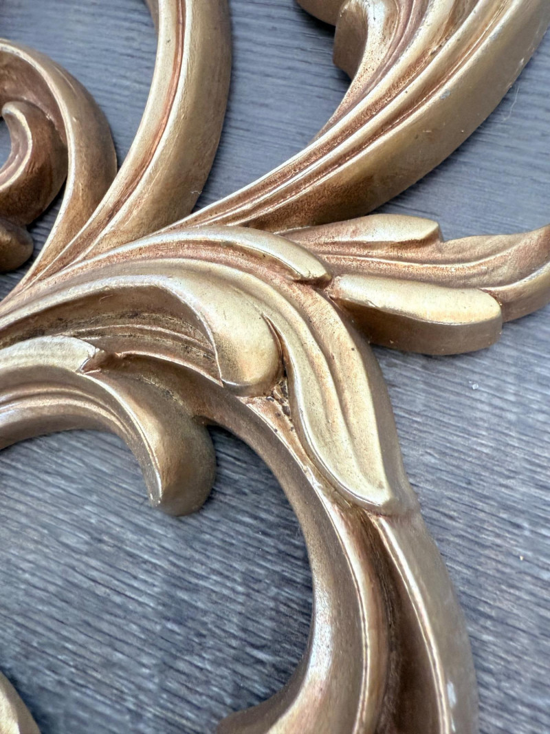Syroco Wall Plaques – 4-Piece Resin Set One floral wall plaque with layered flower and leaf forms (20" x 14") One vertical oval plaque with raised flower arrangement in a vase (19" x 8") Two scroll-form candle holders with integrated flower designs (each 16" x 6") Each piece is molded with surface relief details. Backs are marked with SYROCO or SYROCO INC. and copyright numbers. Hanging hardware is attached. Material is resin