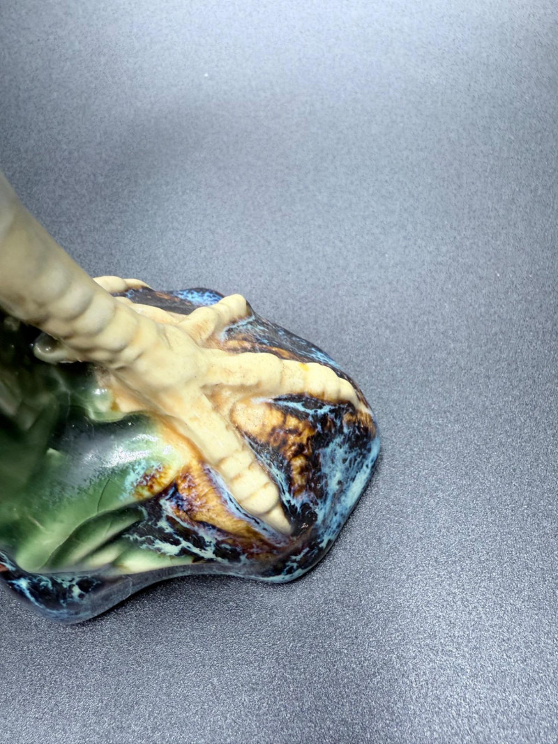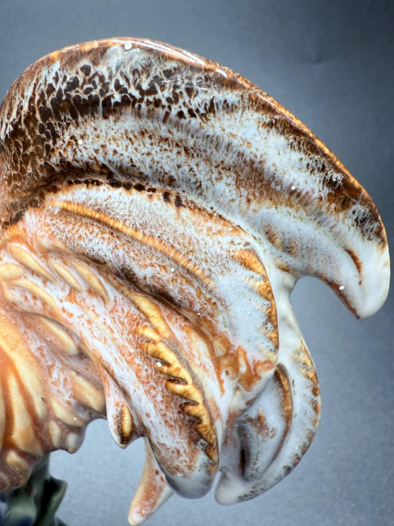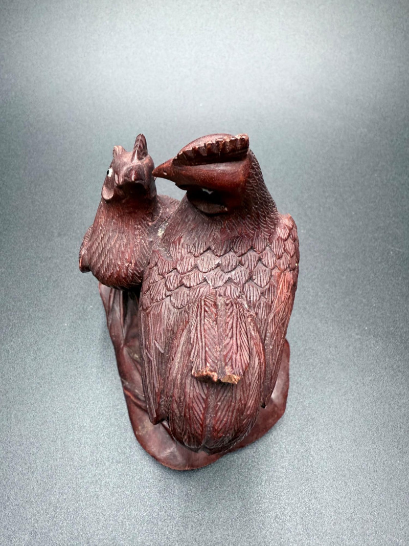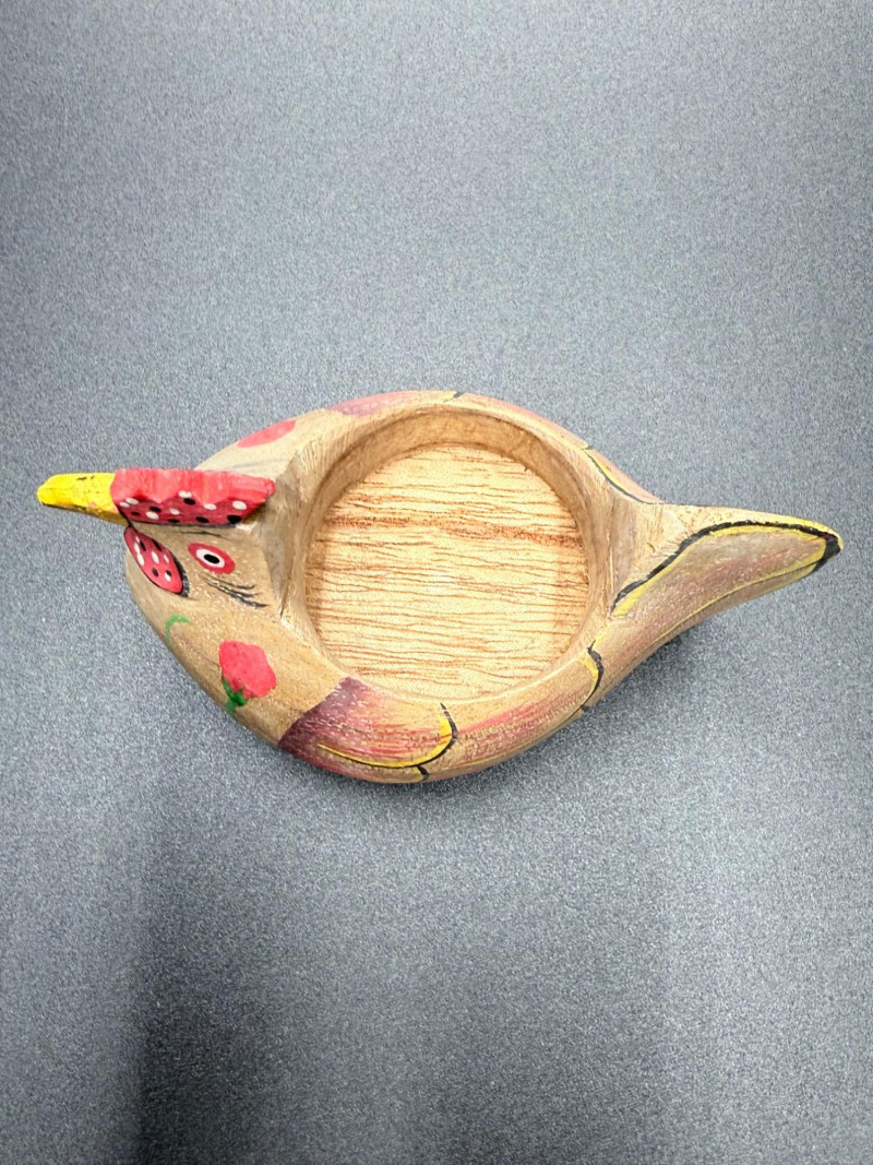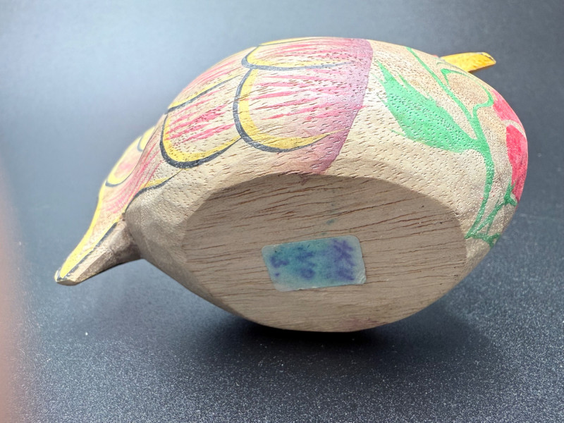 A mixed-material decorative set featuring poultry and harvest themes. Includes ceramic, carved wood, and glass pieces. The wooden items are hand-painted with floral and poultry designs, while the pumpkin is made of ribbed glass with a curled stem.