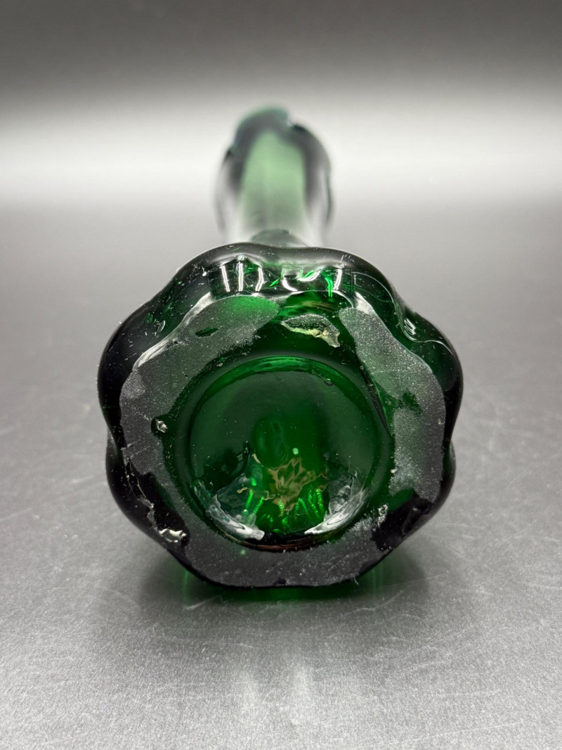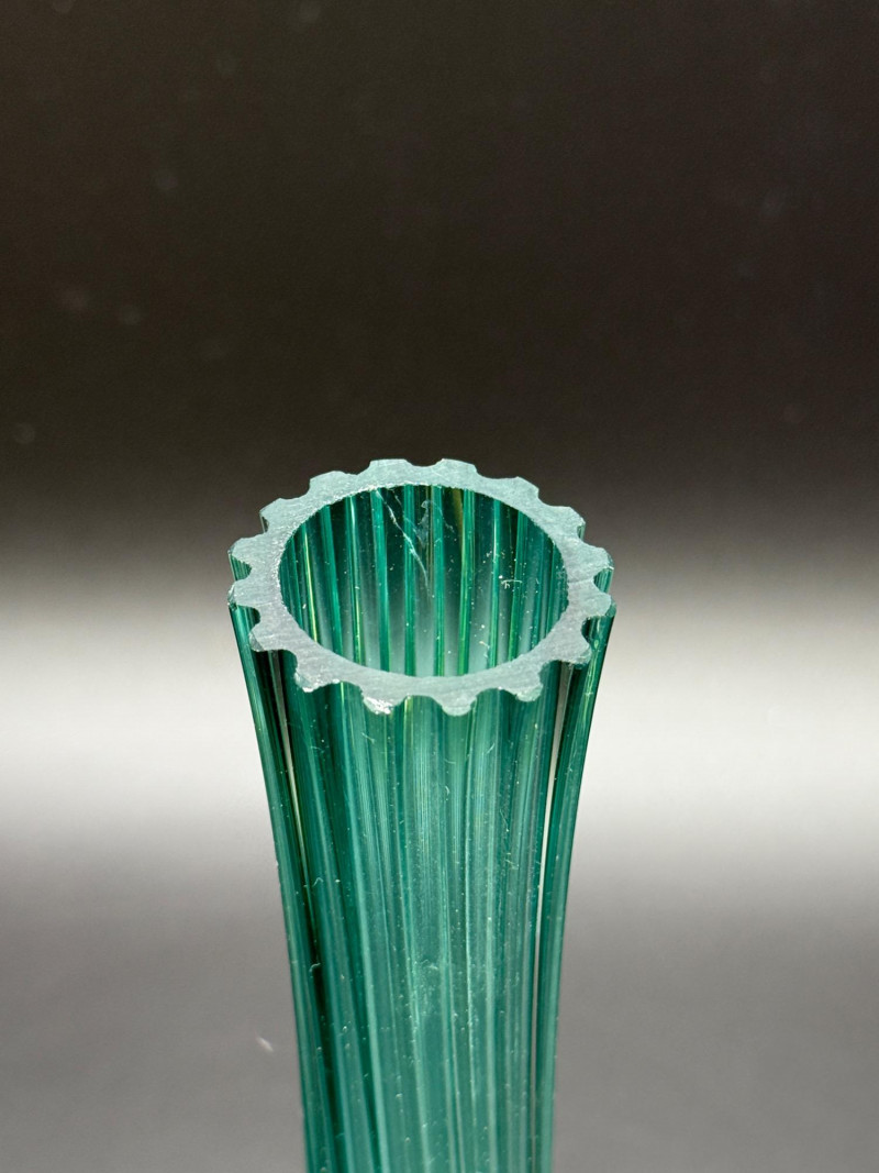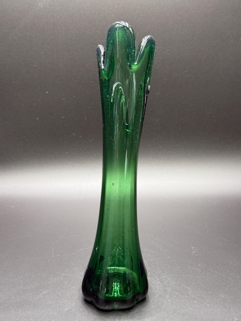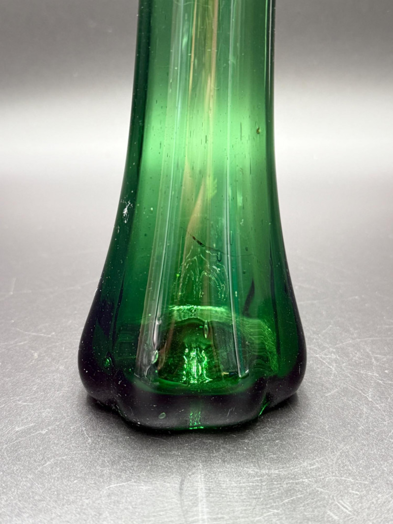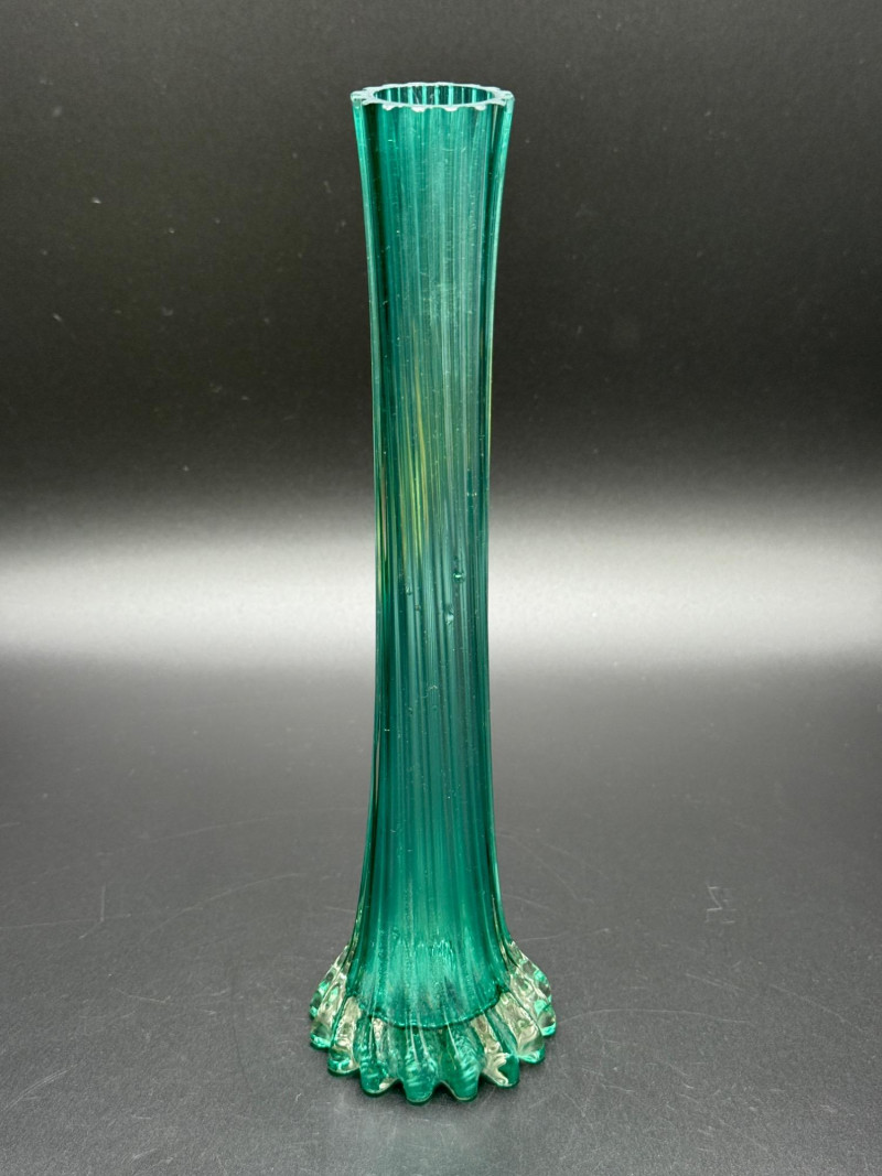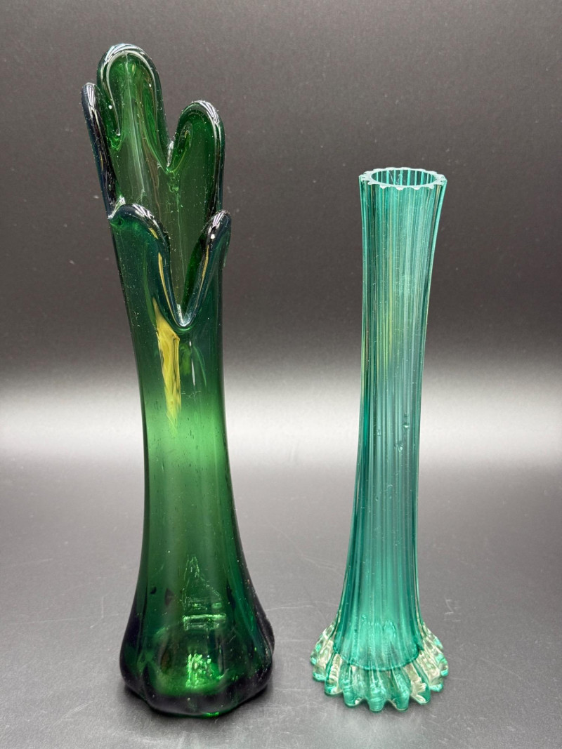 Green Swung Glass Vases – Ribbed and Five-Finger Style Measurements: