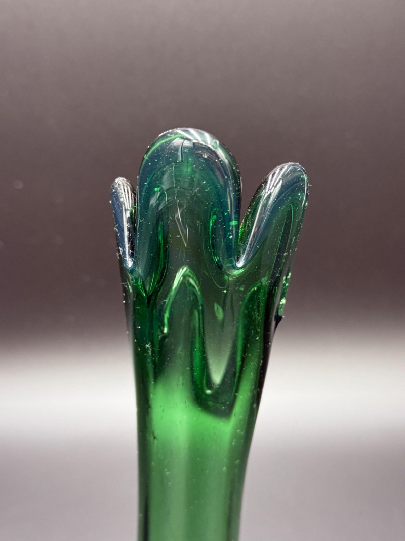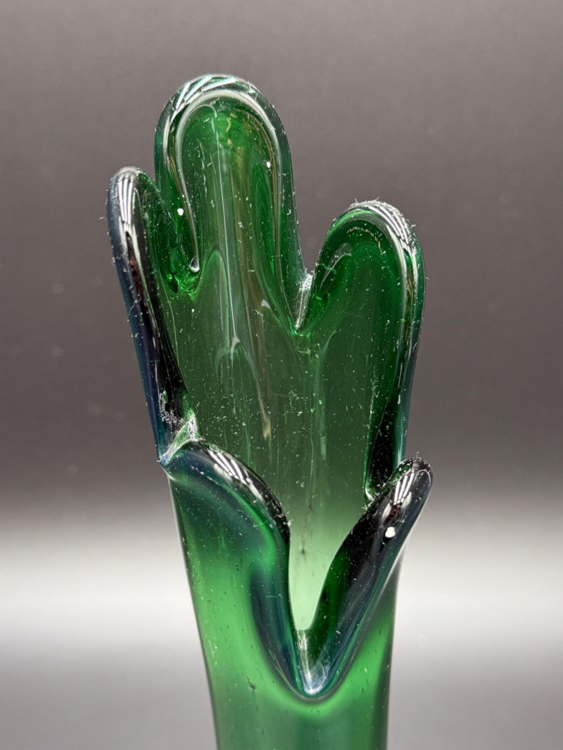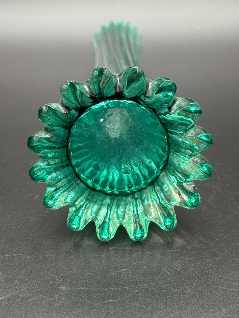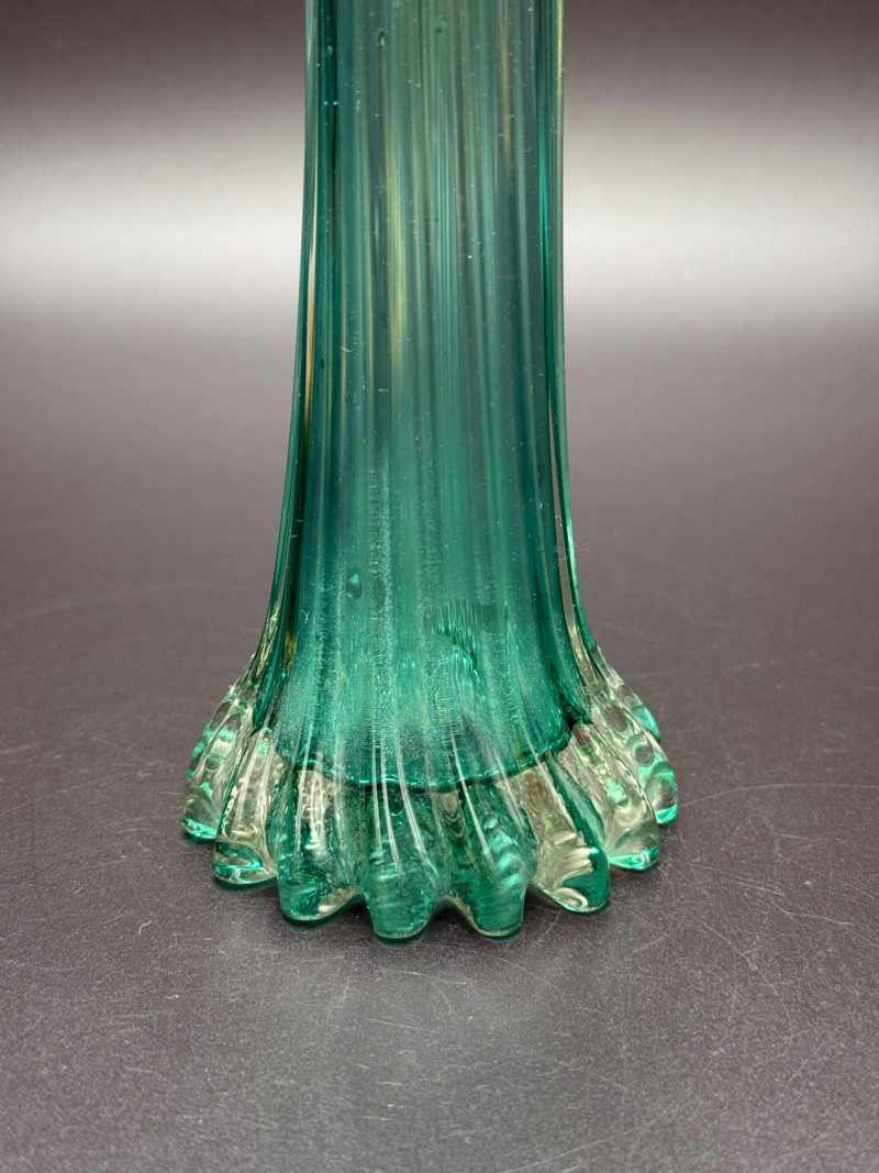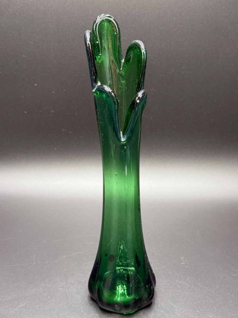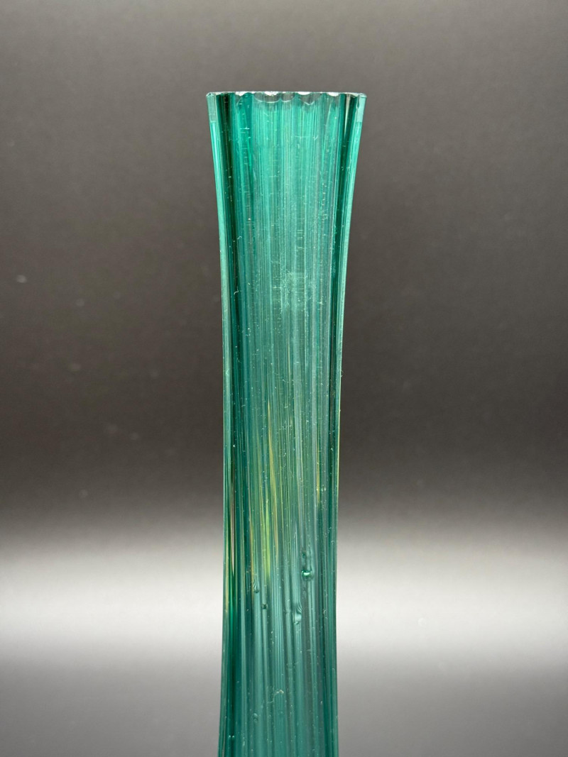 Green Swung Glass Vases – Ribbed and Five-Finger Style Measurements:
