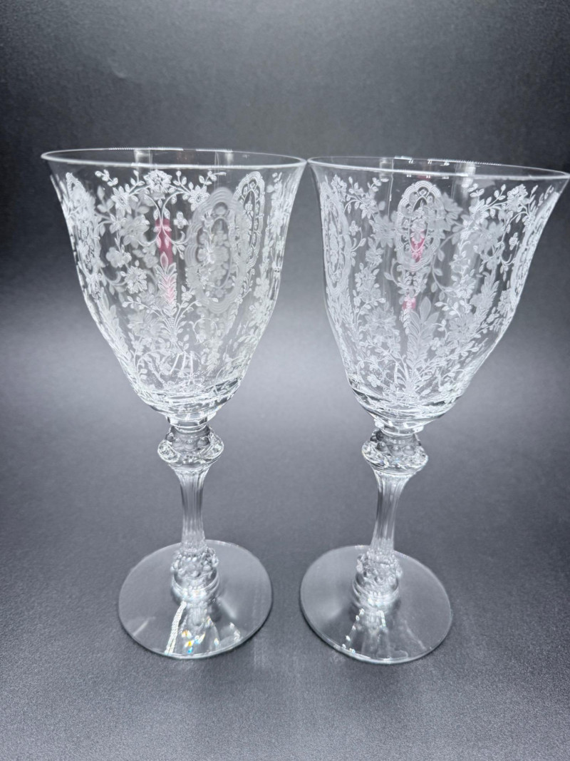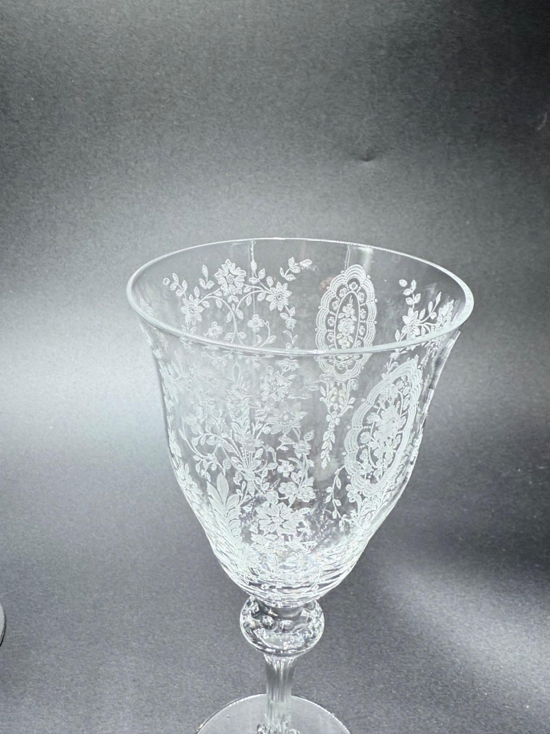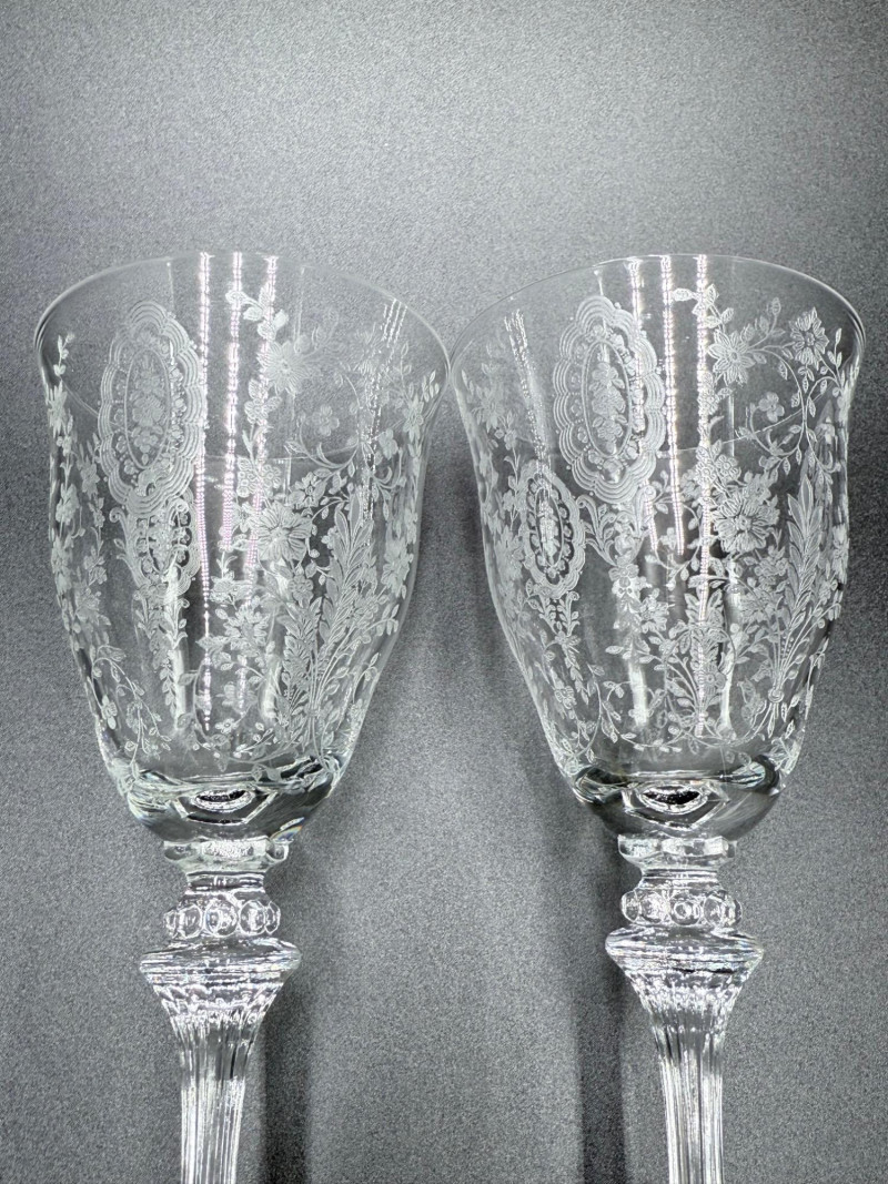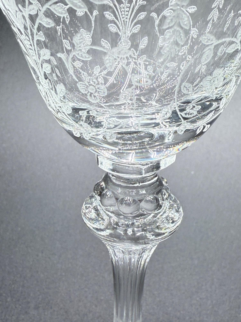 Lot # 188 - Etched Floral and Cut Crystal Goblet Set