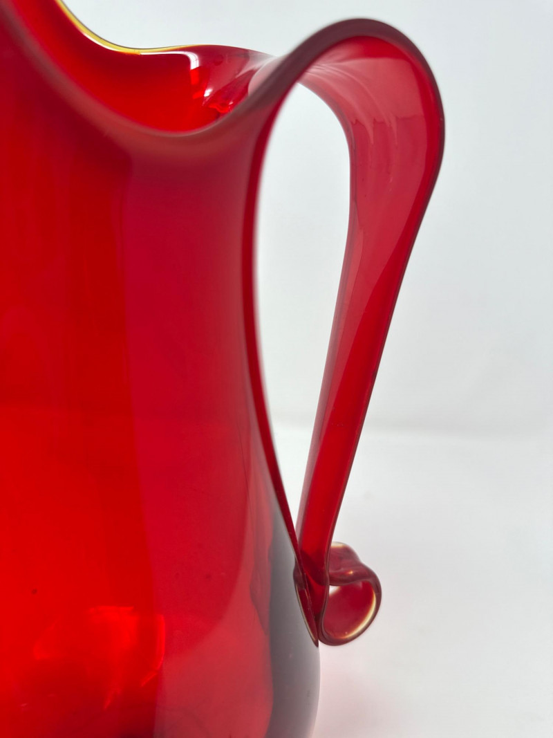 Lot # 1 - Vintage Red/Yellow Amberina Swung Glass Pitcher, L.E. Smith–Style-20"