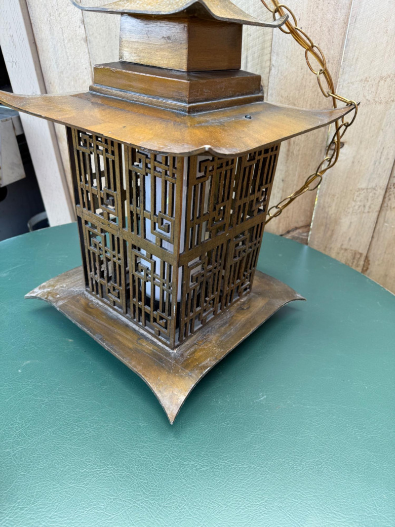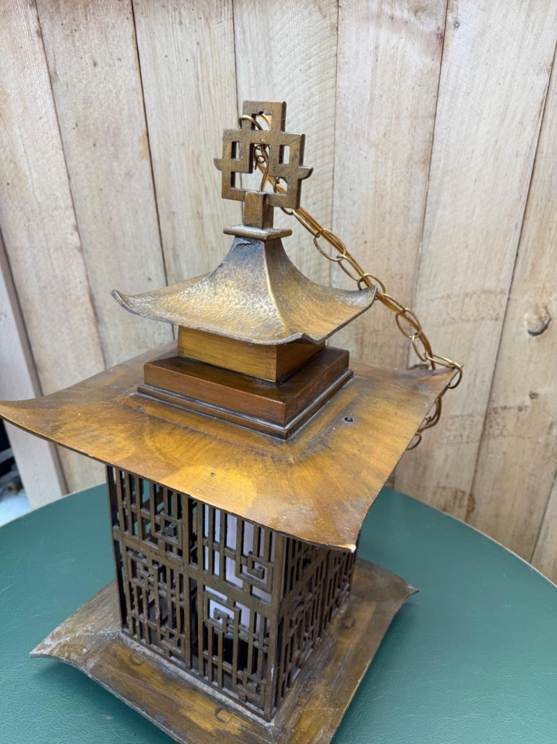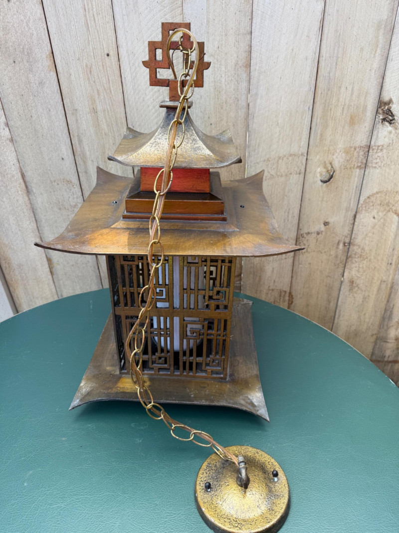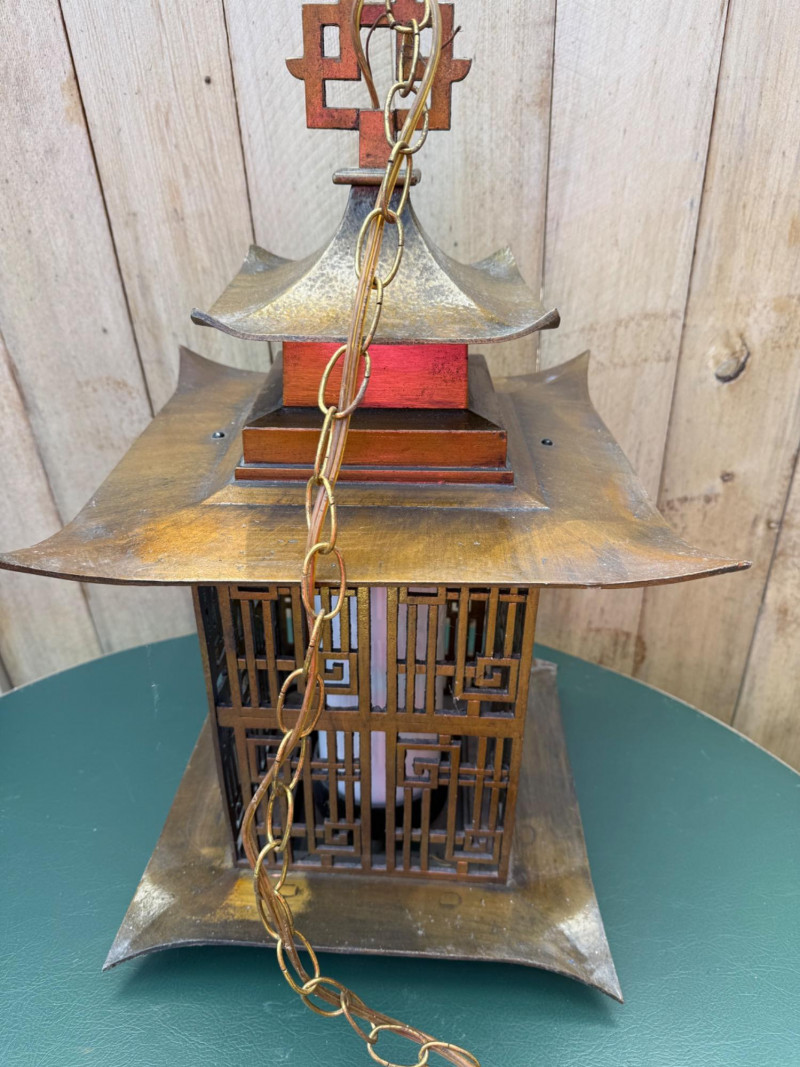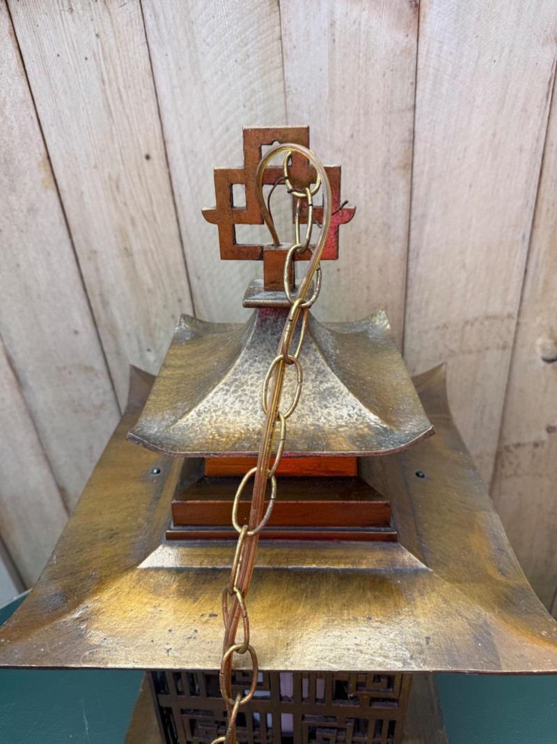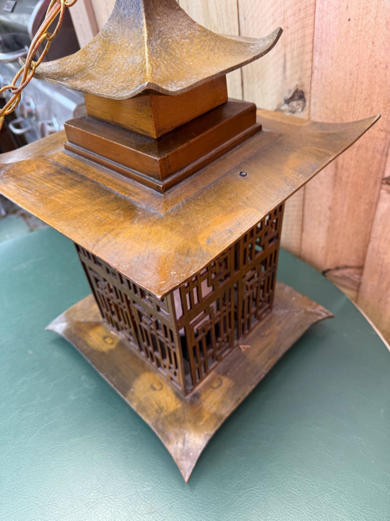 Lot # 5 - Vintage Chinoiserie Pagoda Pendant Light, Patina, Est. Value $1,300+