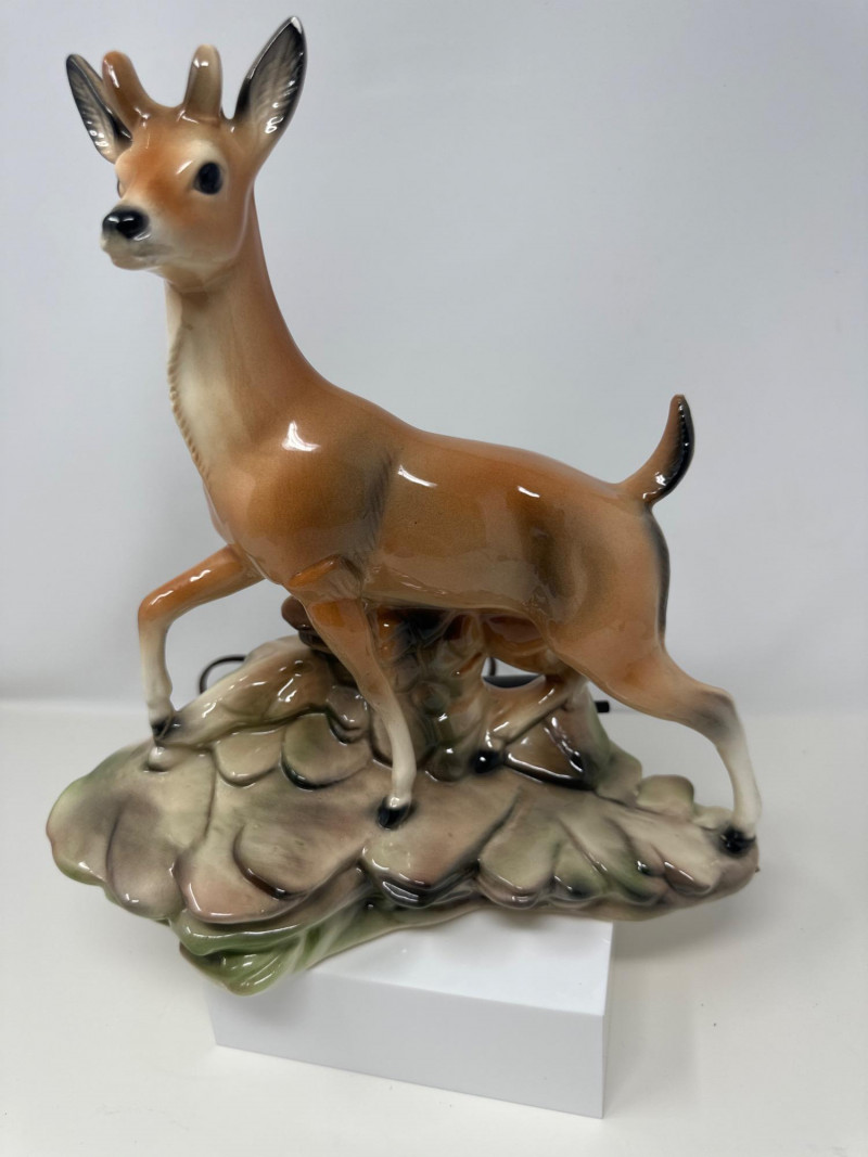 Lot # 19 - Vintage MCM Ceramic Deer Stag TV Lamp, 1950s