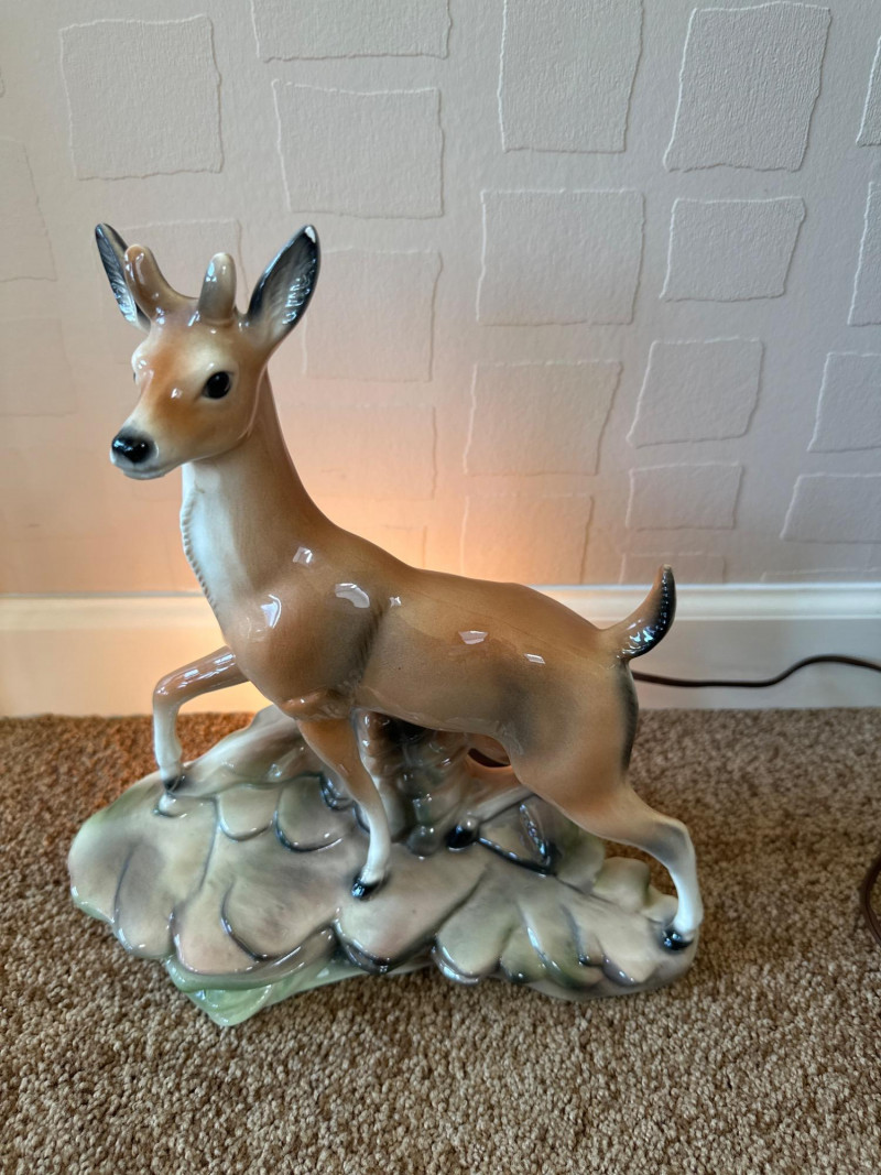 Vintage MCM Ceramic Deer Stag TV Lamp, 1950s