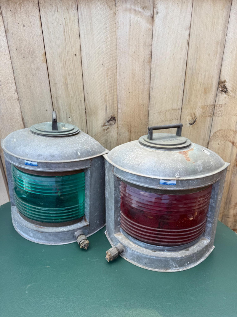 Lot # 28 - Pair Vintage Perko Marine Navigation Lights - Red & Green Lanterns