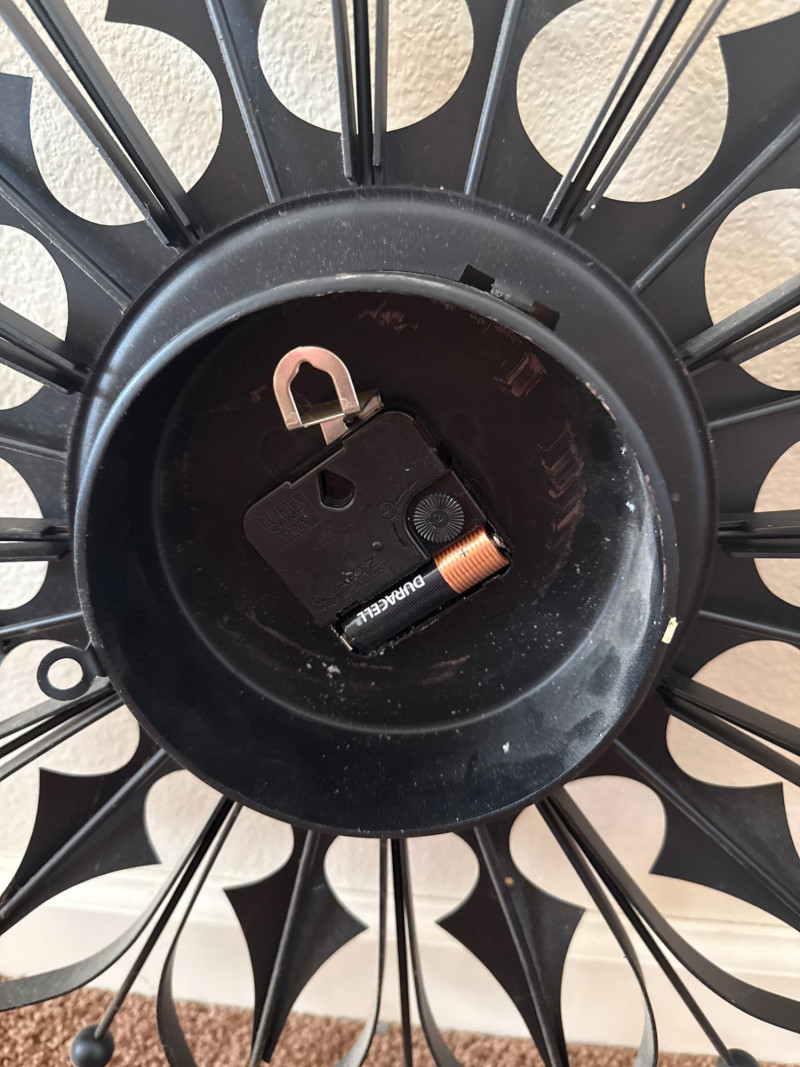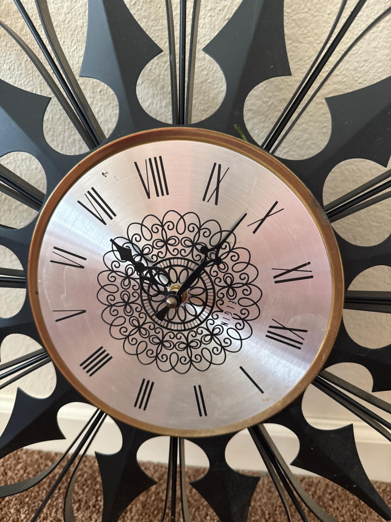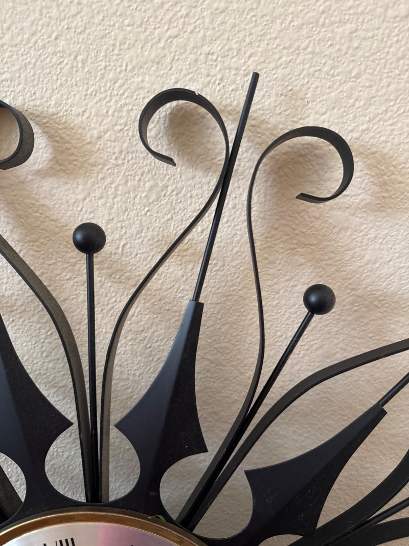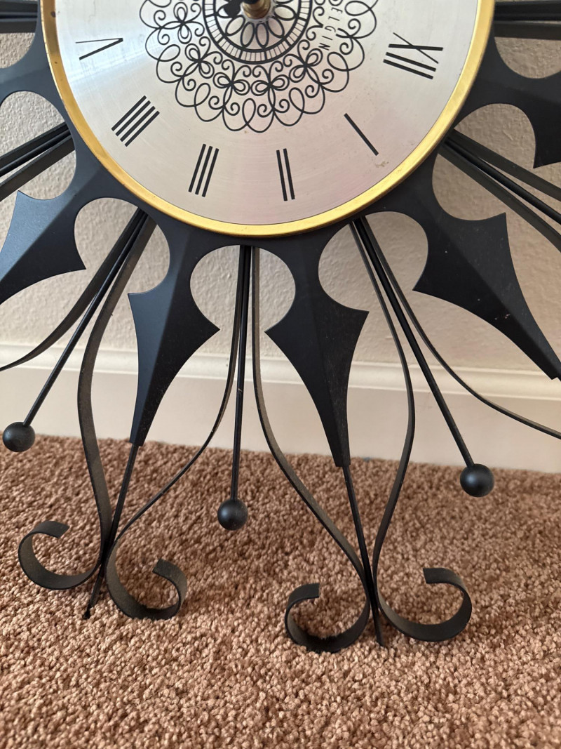 Lot # 30 - Vintage MCM Elgin Black Metal Starburst Wall Clock - 26" - Works