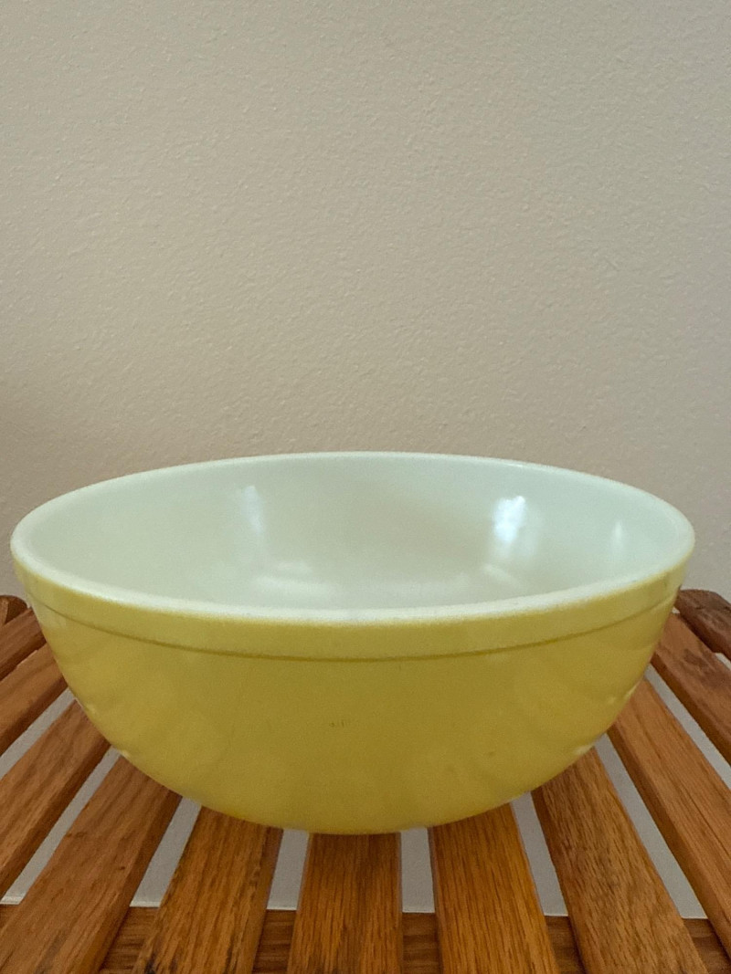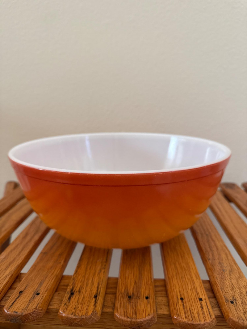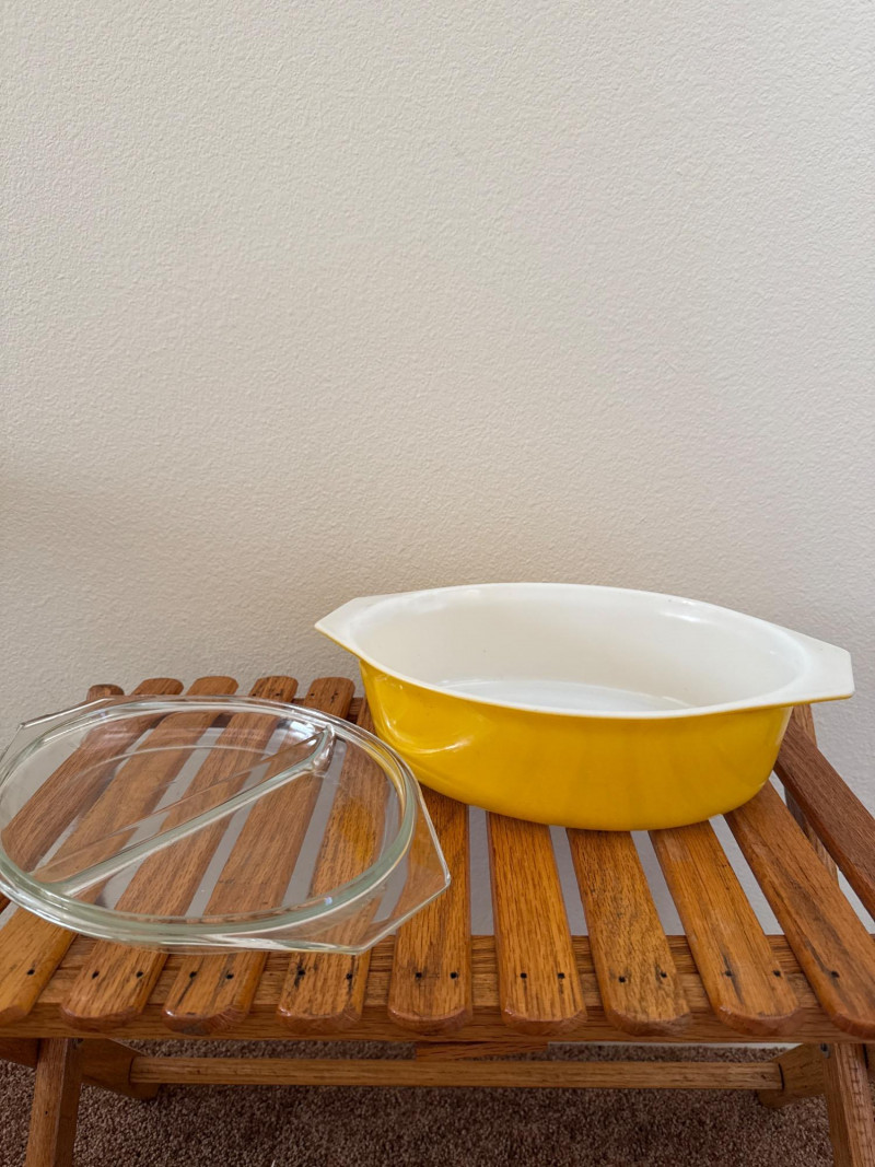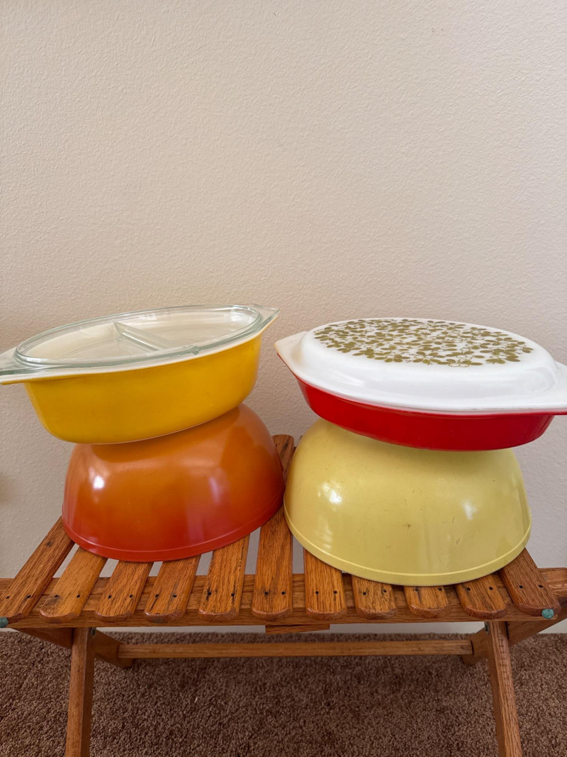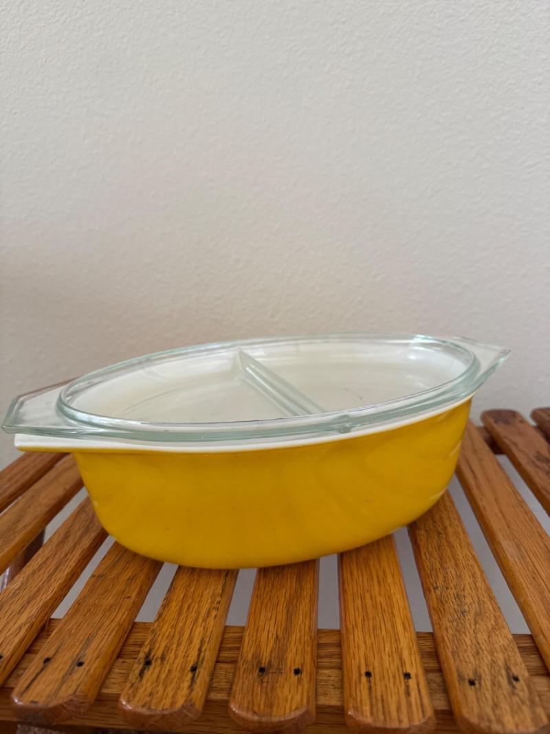 Vintage 1960’s PYREX Verde Divided Casserole, Pyrex FlameGlo, & More This lot includes a collection of vintage Pyrex kitchenware from the 1960s. It features a Pyrex Verde divided casserole dish with its lid, an orange Pyrex Flameglo bowl, a yellow mixing bowl, and another yellow Pyrex dish with a clear lid. These are popular collectible items. Included Pieces: