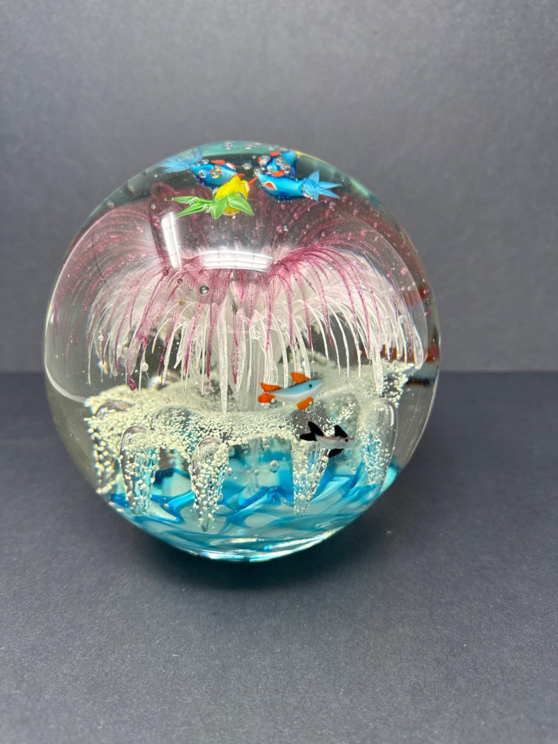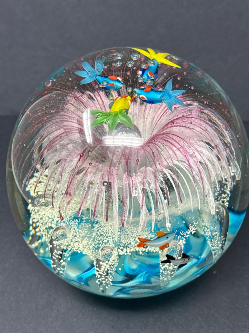 Lot # 46 - 7" Glass Aquatic Paperweight with Fish & Floral Burst-See Details