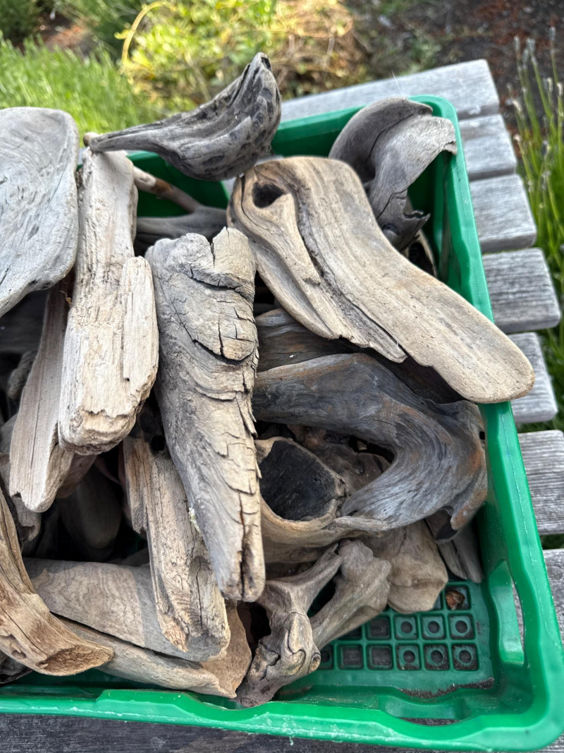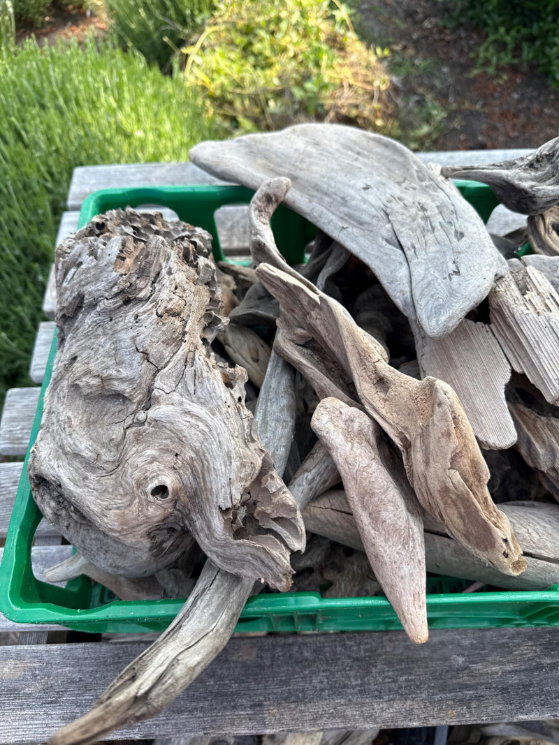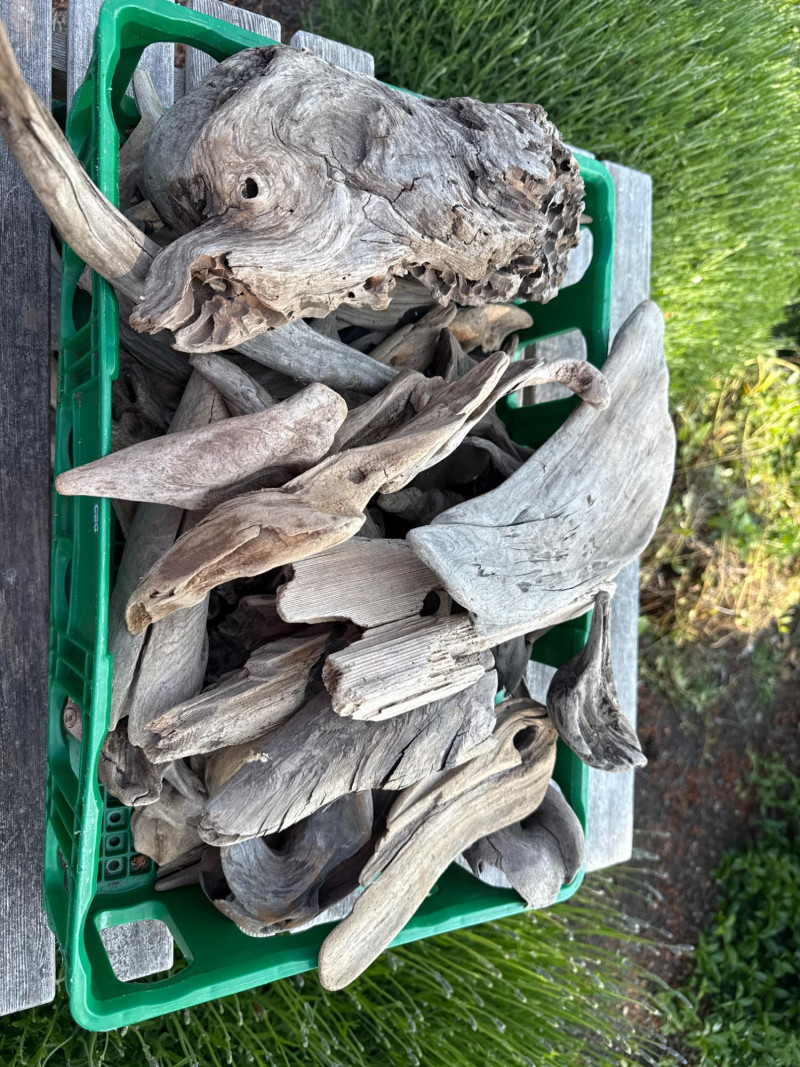 Large Bulk Lot of Natural Assorted Driftwood - Crates Not Included This lot includes a generous assortment of natural, weathered driftwood pieces harvested from various shorelines. Each piece has unique grain, texture, and form, making them ideal for craft projects, home décor, aquarium displays, or garden accents. Assorted Sizes & Shapes: Pieces range from small accent fragments to larger sculptural sections—perfect for mixing and matching. Natural Weathered Finish: Smooth, drift-worn surfaces with natural cracks, knots, and grain variations.