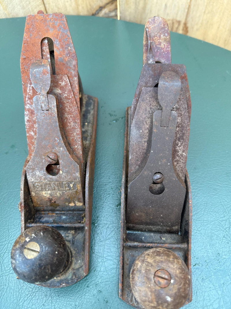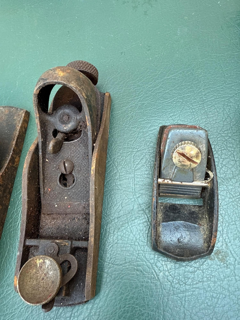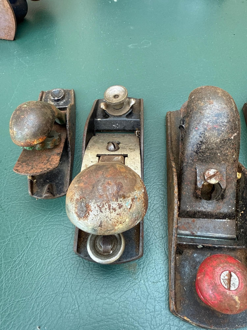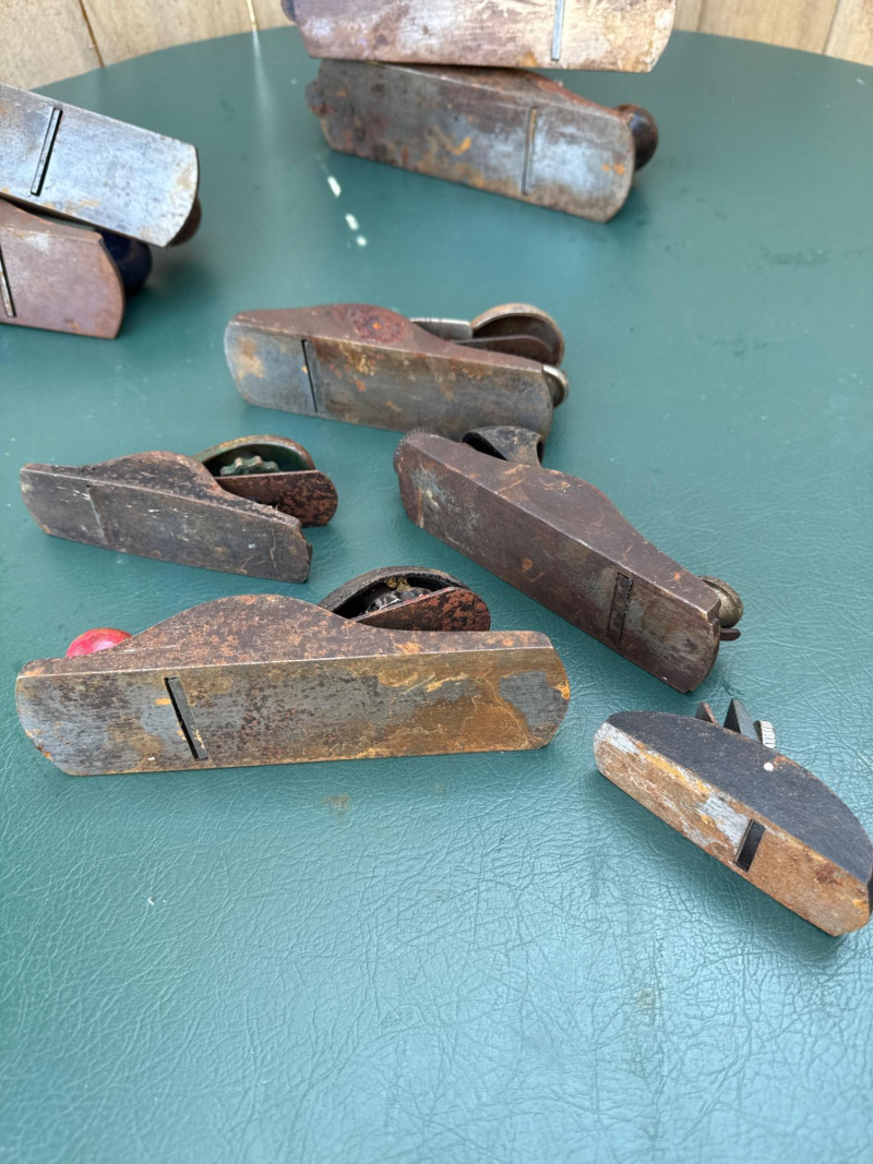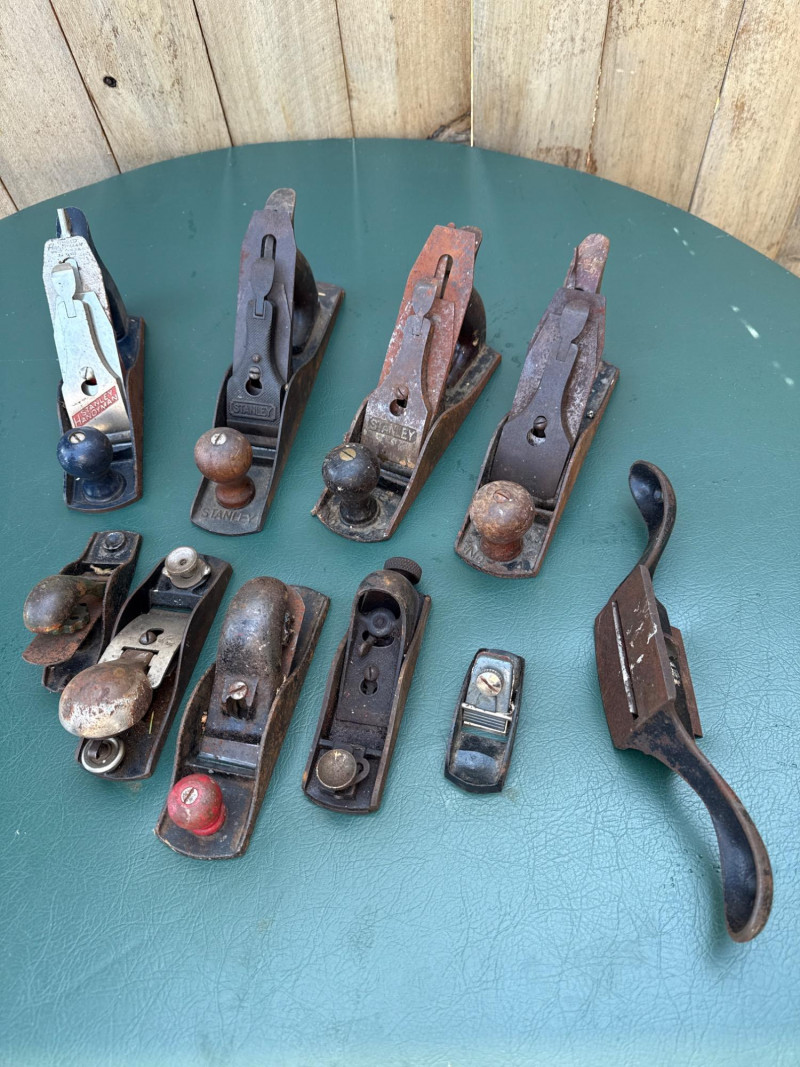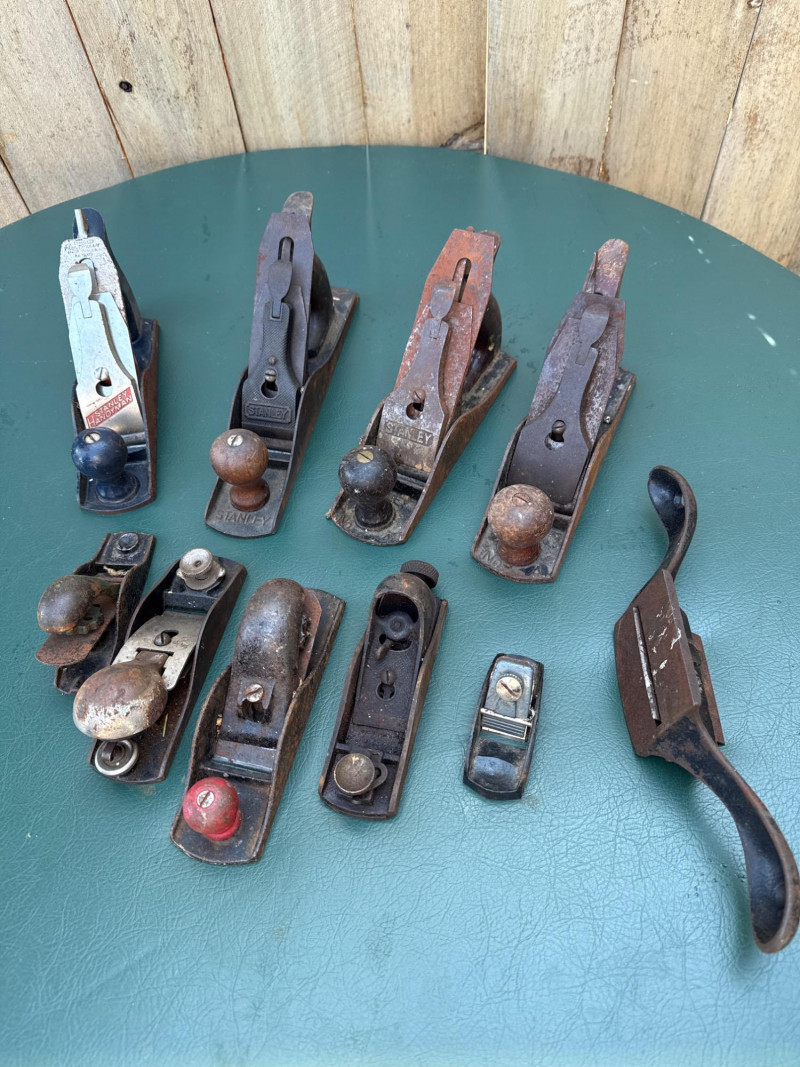 10 Vintage Block Planes Stanley & More The planes vary in size and configuration—some full-sized, some small—making them suitable for collection, restoration projects, or everyday woodworking use once cleaned and sharpened. All show surface rust, patina, and signs of age but remain structurally intact. Assorted Brands & Sizes: Includes multiple Stanley block planes along with smaller “jack” and “jeweler’s” style planes from various makers.