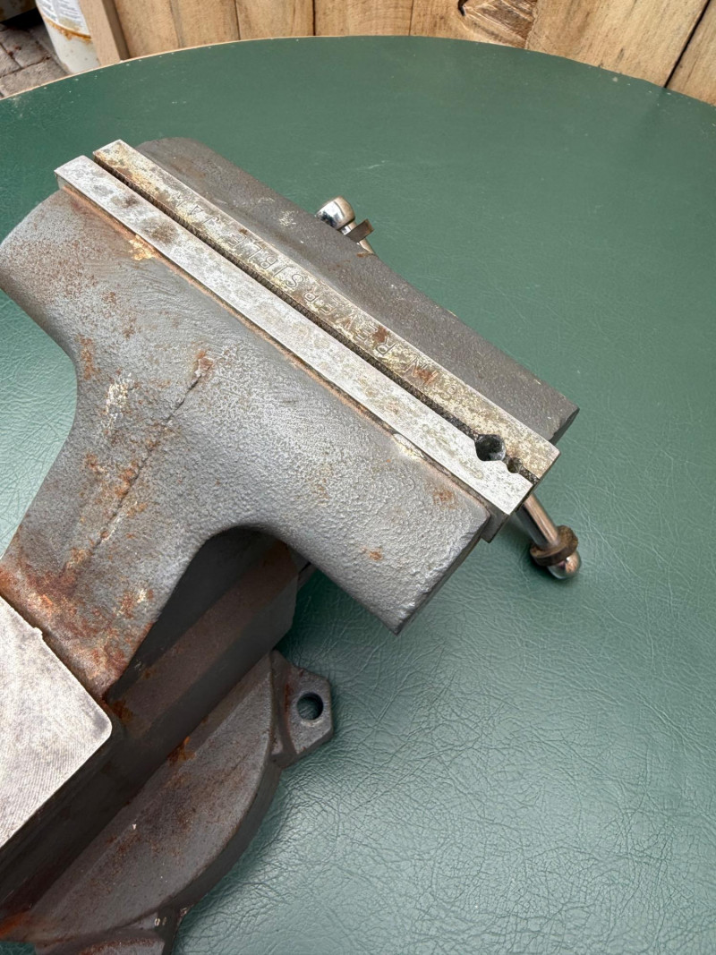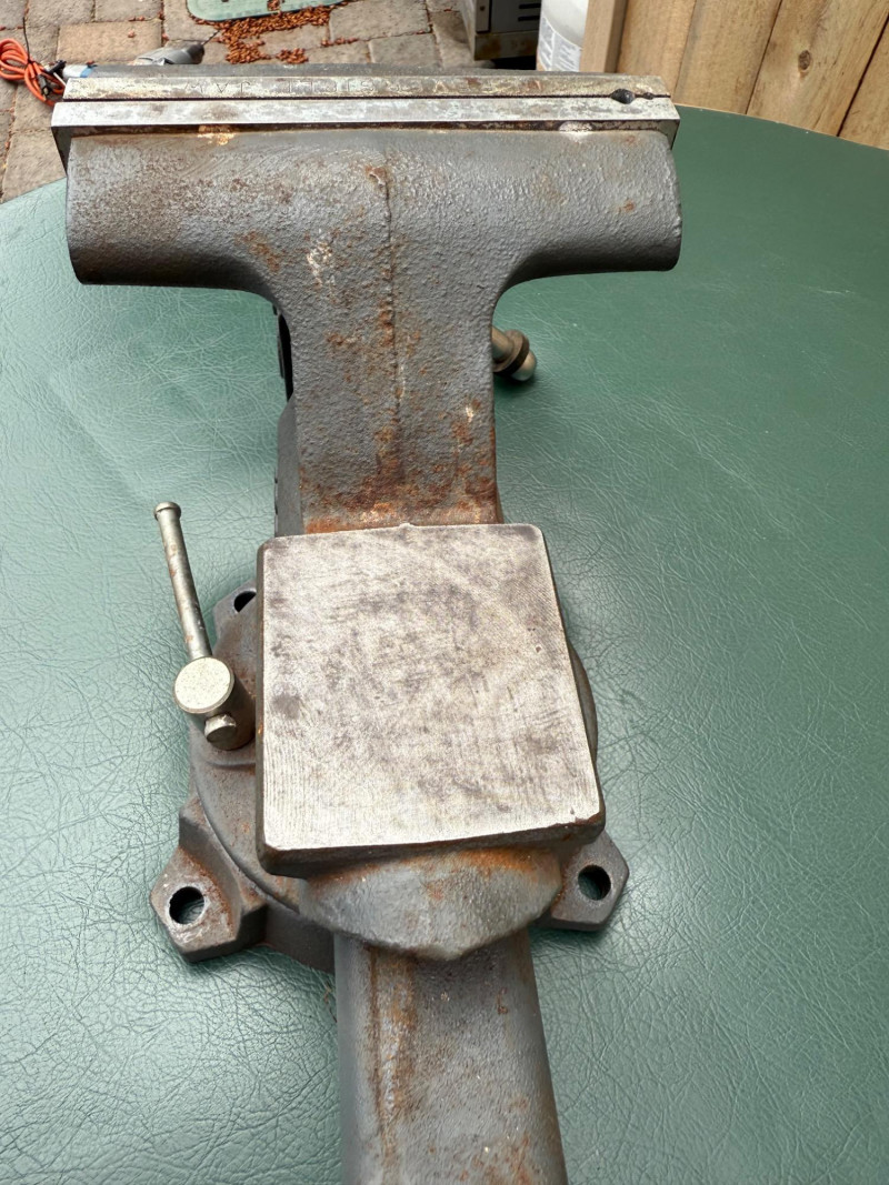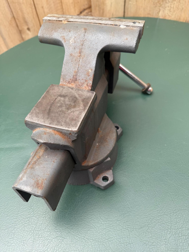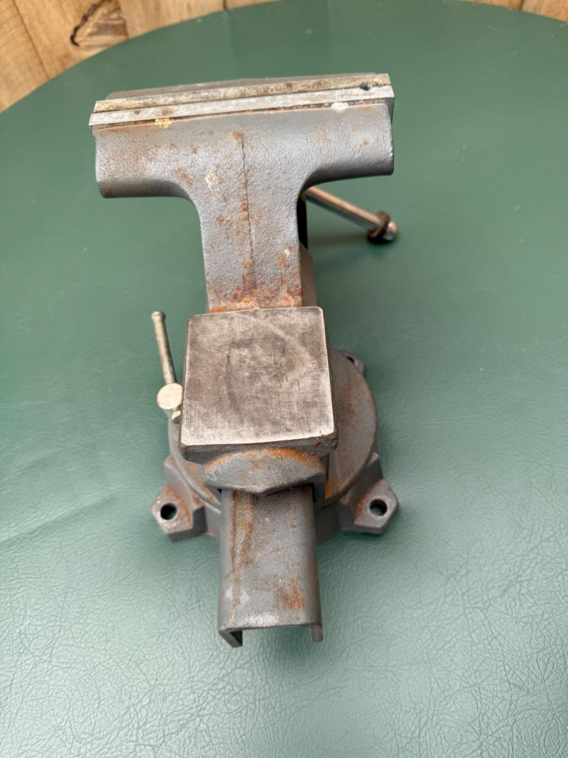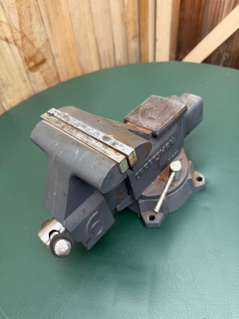 Vintage Craftsman 6" Swivel-Base Cast Iron Bench Vise This vintage bench vise from Craftsman features 6″ cast-iron jaws and a 360° swivel base, making it a durable addition to any workshop. The solid cast-iron construction provides stable clamping for woodworking, metalworking, and general repair tasks.