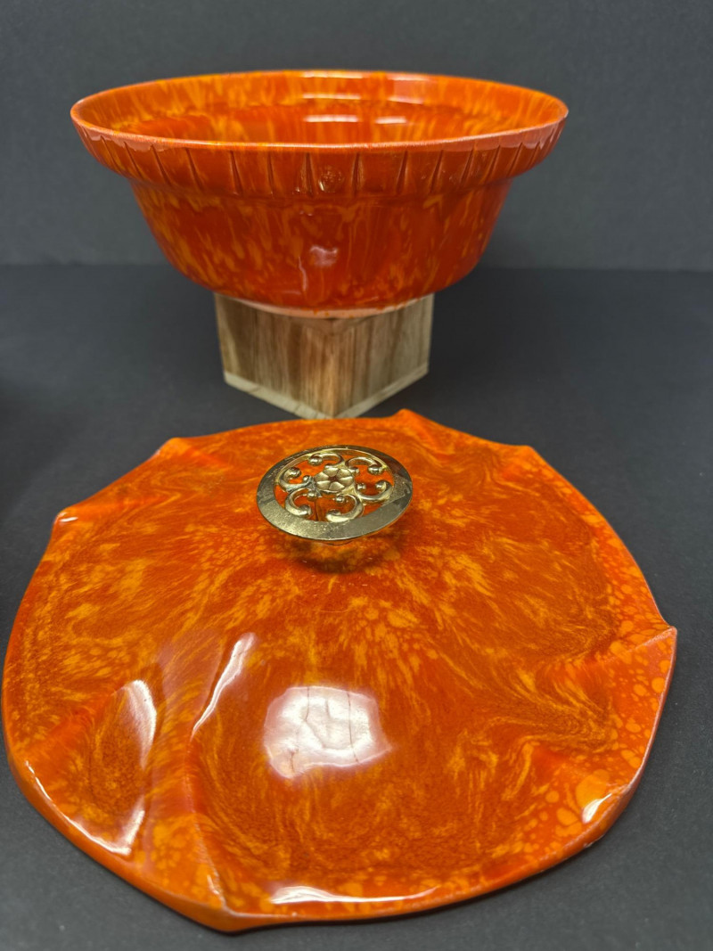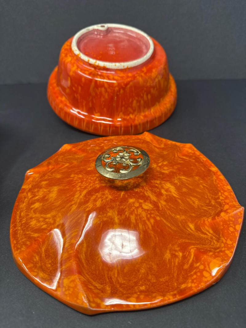 Lot # 97 - 1950s California Pottery Orange Lidded Casserole & MCM Speckled Dish