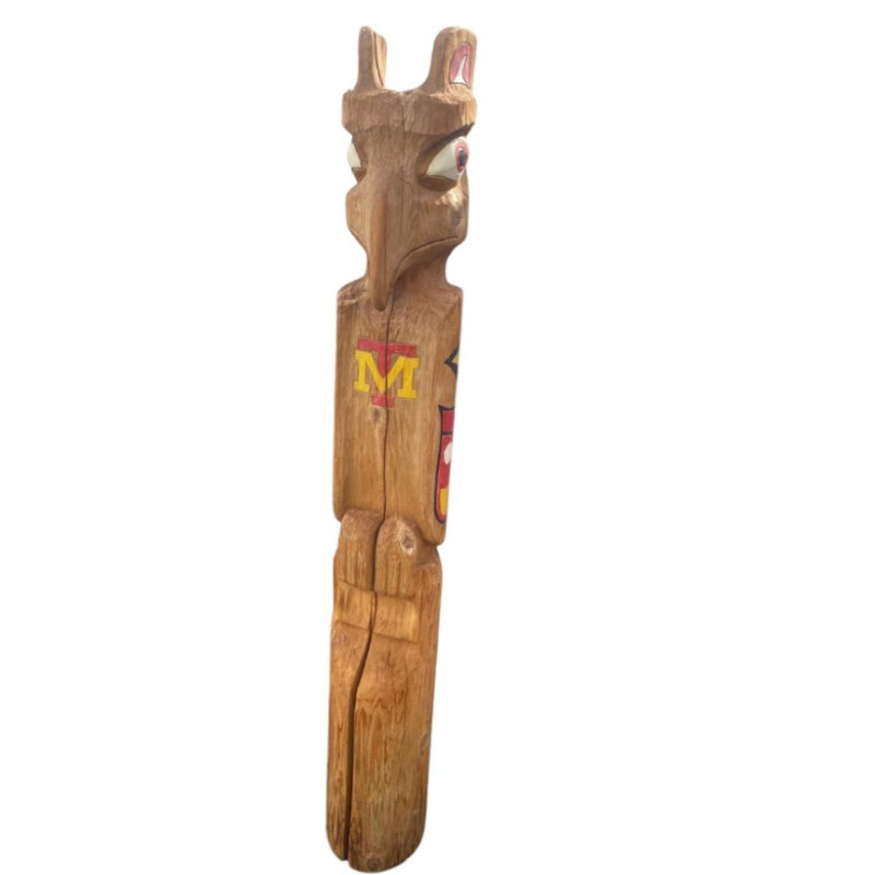 A striking 63-inch tall totem pole with hand-carved detail. A bold decorative piece inspired by Pacific Northwest artistry and storytelling. Historical note: Totem poles are typically carved by tribes such as: Haida, Tlingit, and Tsimshian (Northern Northwest Coast) Kwakwaka’wakw and Nuu-chah-nulth (Southern British Columbia) Coast Salish (Washington and British Columbia) These poles are typically made from western red cedar and feature symbolic figures representing family lineage, mythological creatures, or historical events.