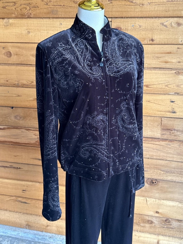 Lot # 158 - ST JOHN Black Velour Pant Set- Sz S/M/P