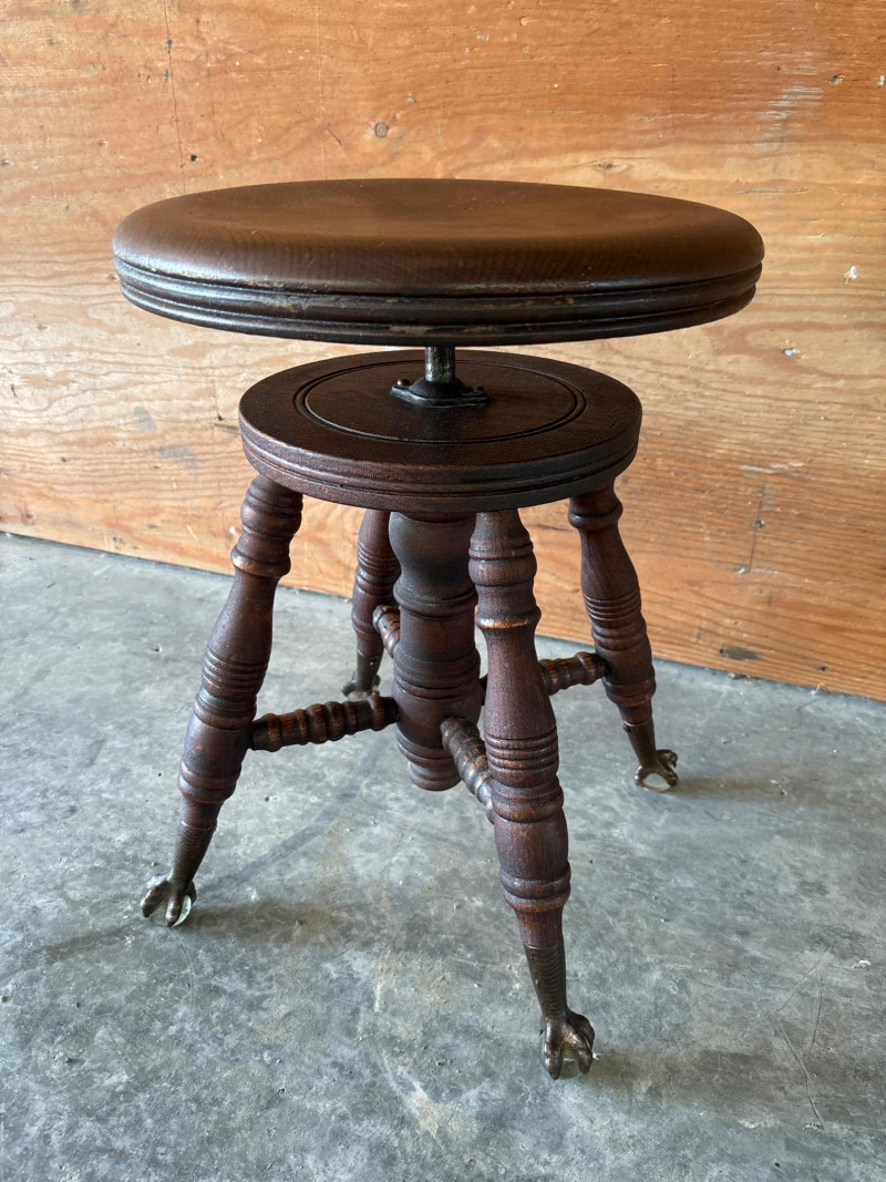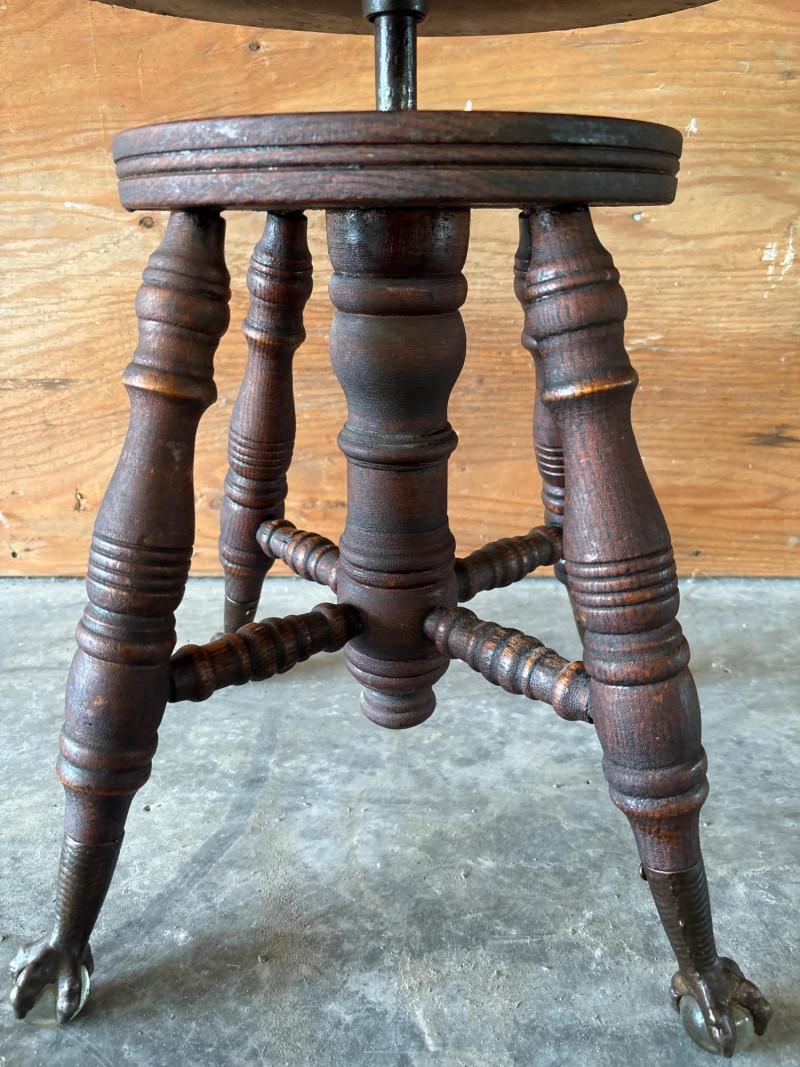 Lot # 89 - Antique Wooden Piano Stool with Glass Ball Feet