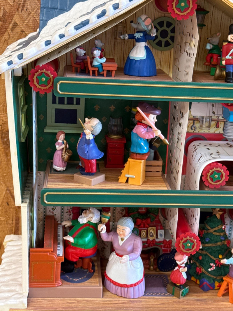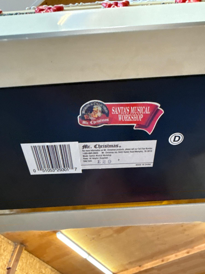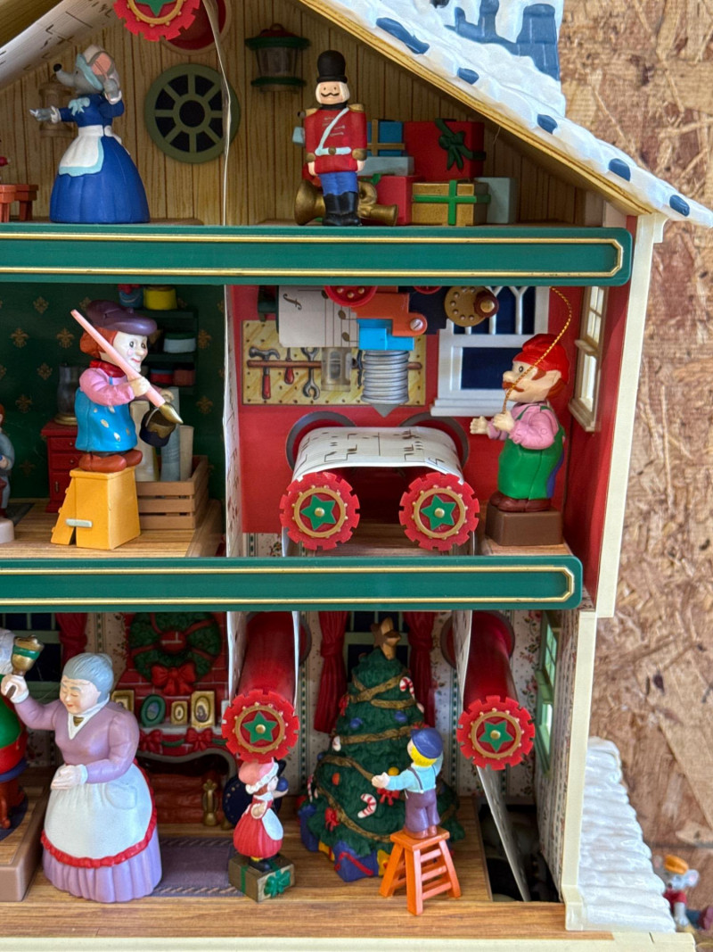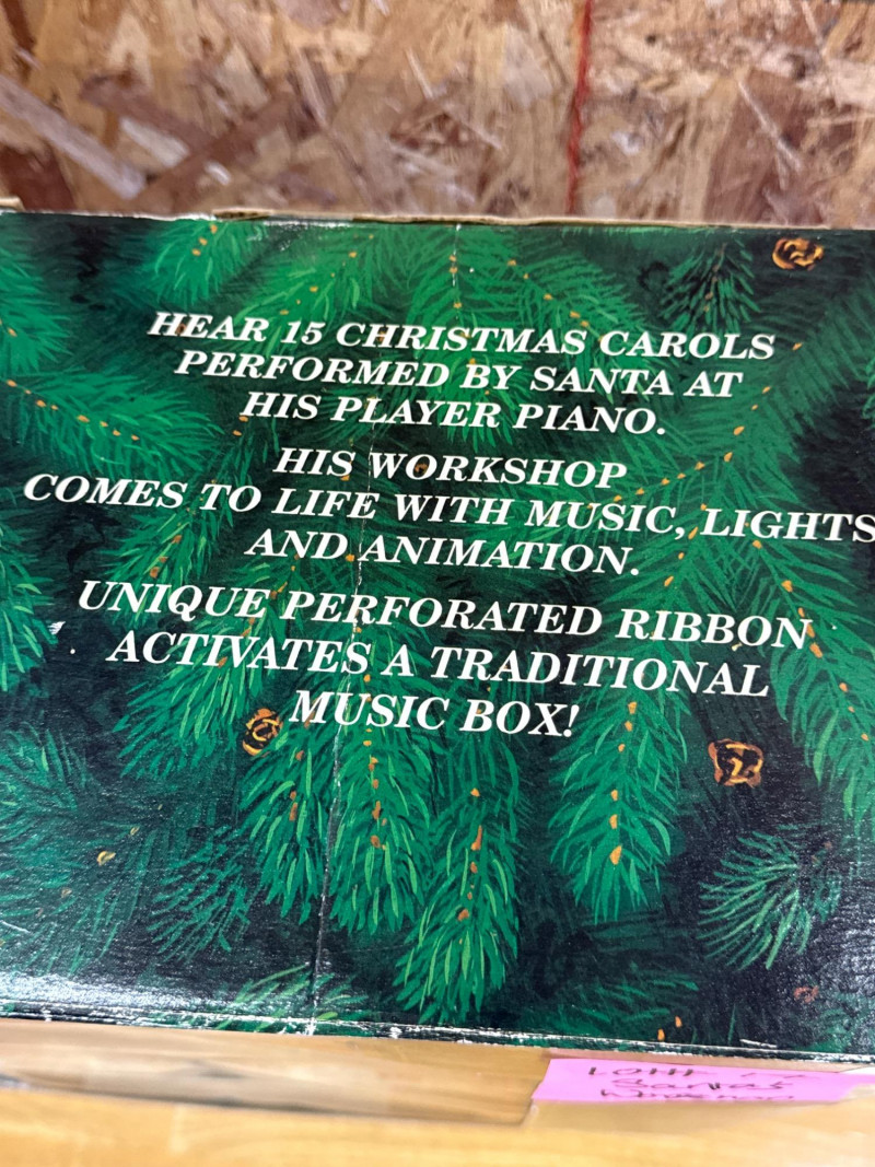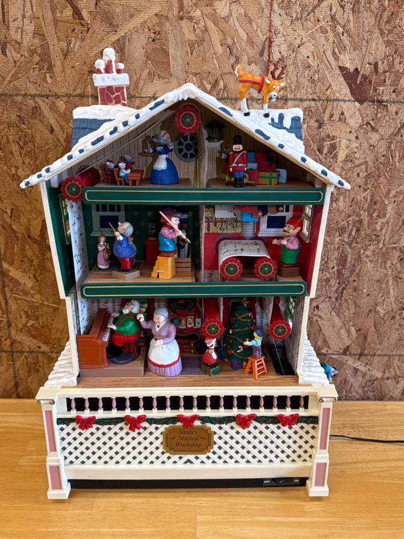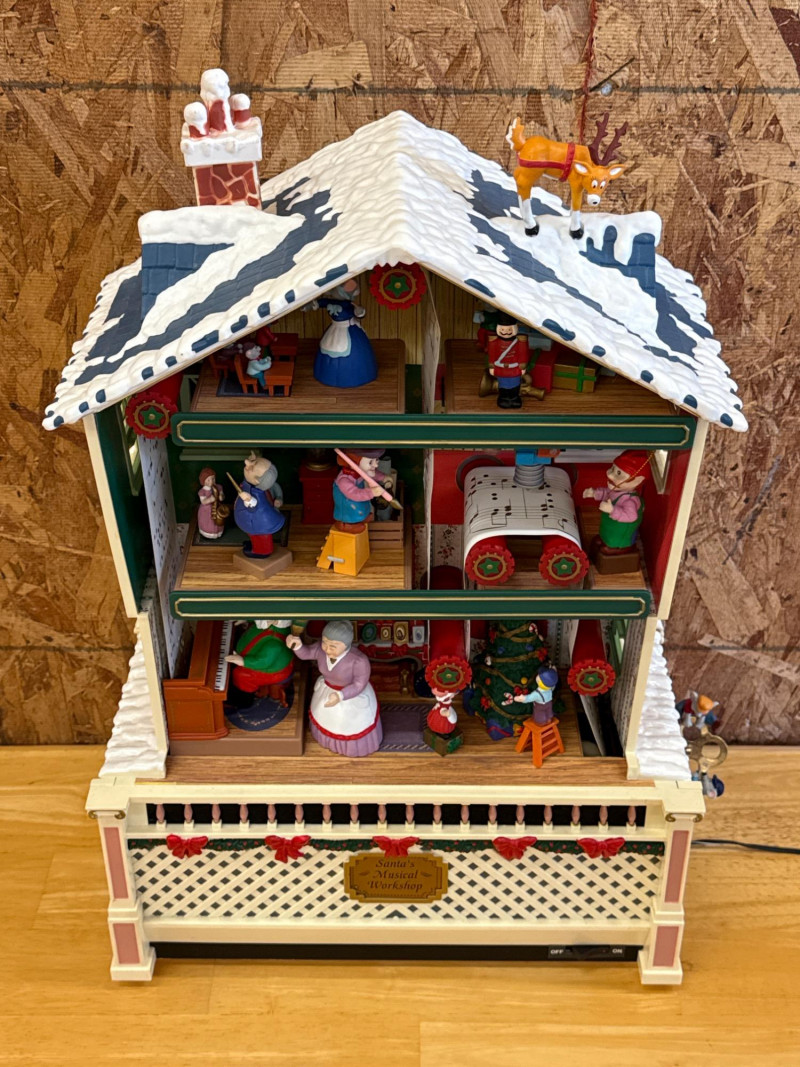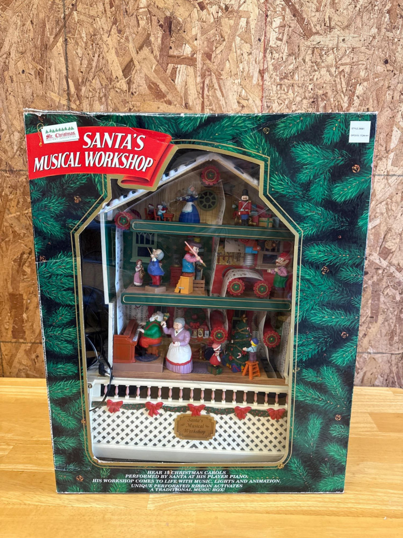Vintage Santa’s Musical Workshop Music works. Lights and animations do not. Has original box.