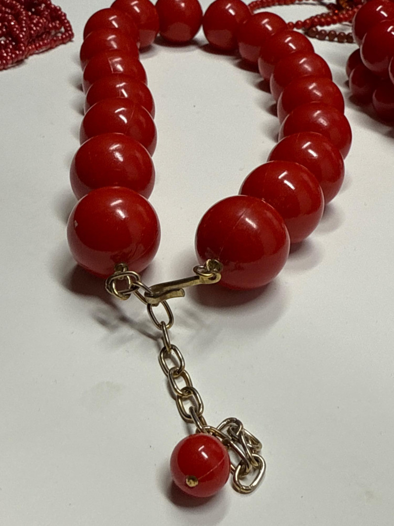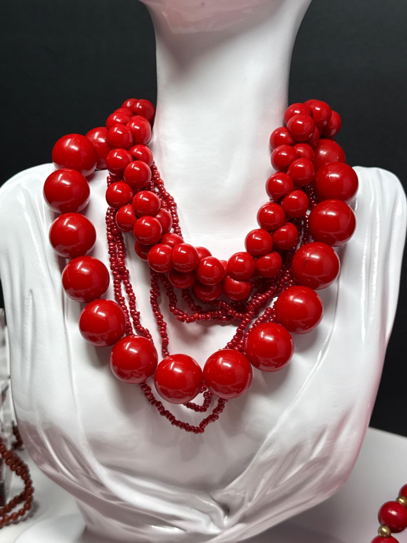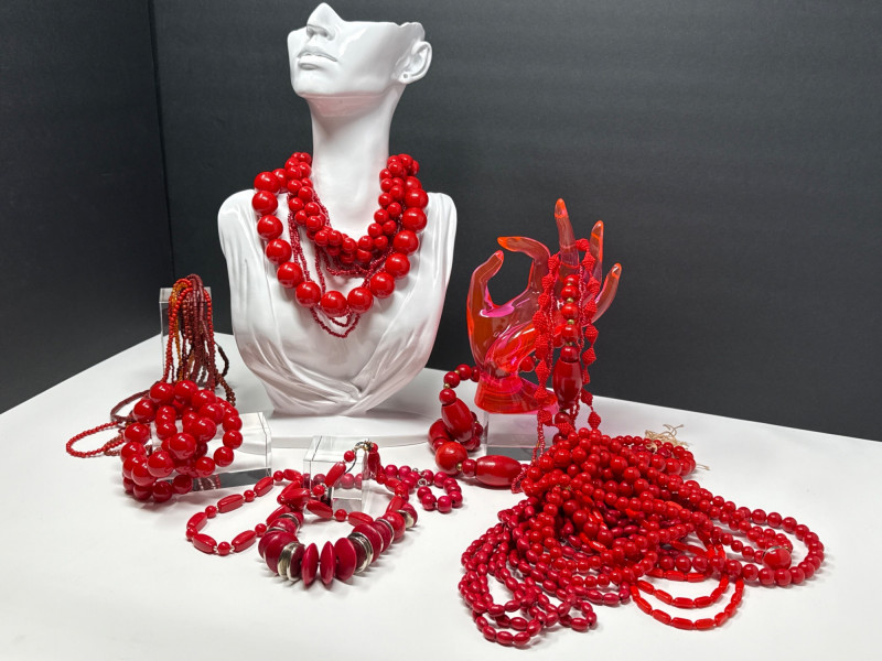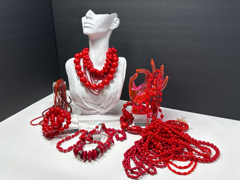 Lot # 44 - Vintage Red Chunky Beaded Jewelry Assortment
