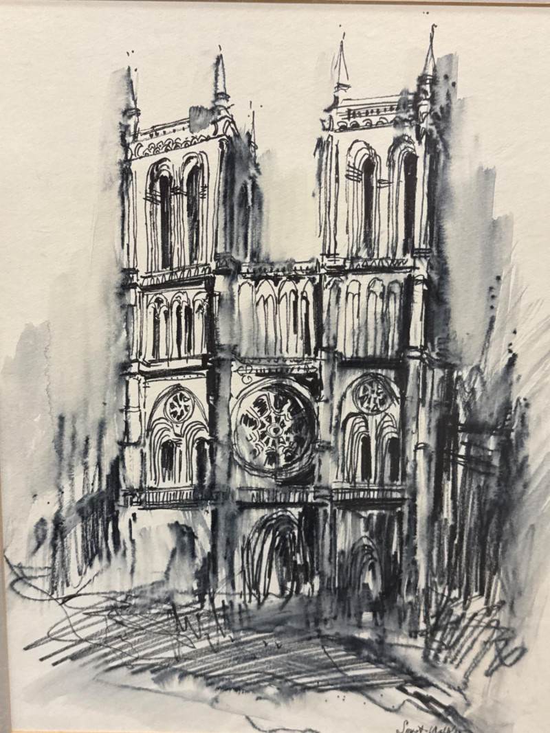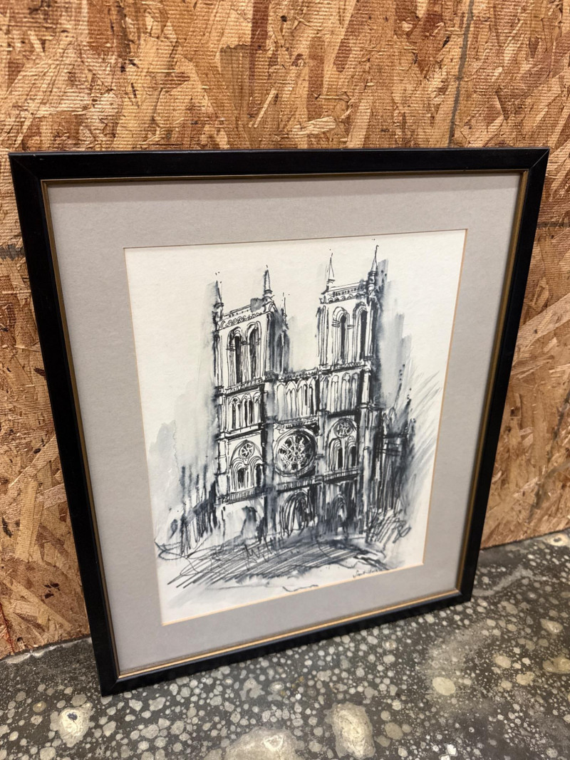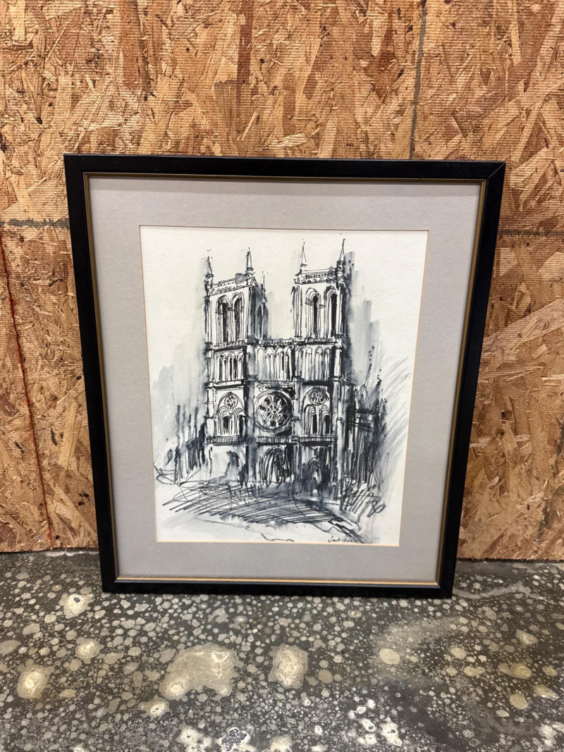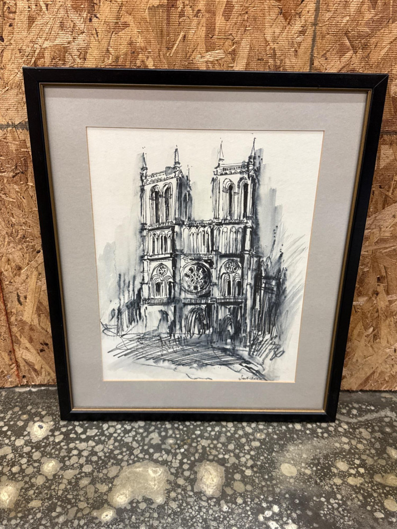 Lot # 76 - Charcoal Sketch of Notre Dame Cathedral *signed
