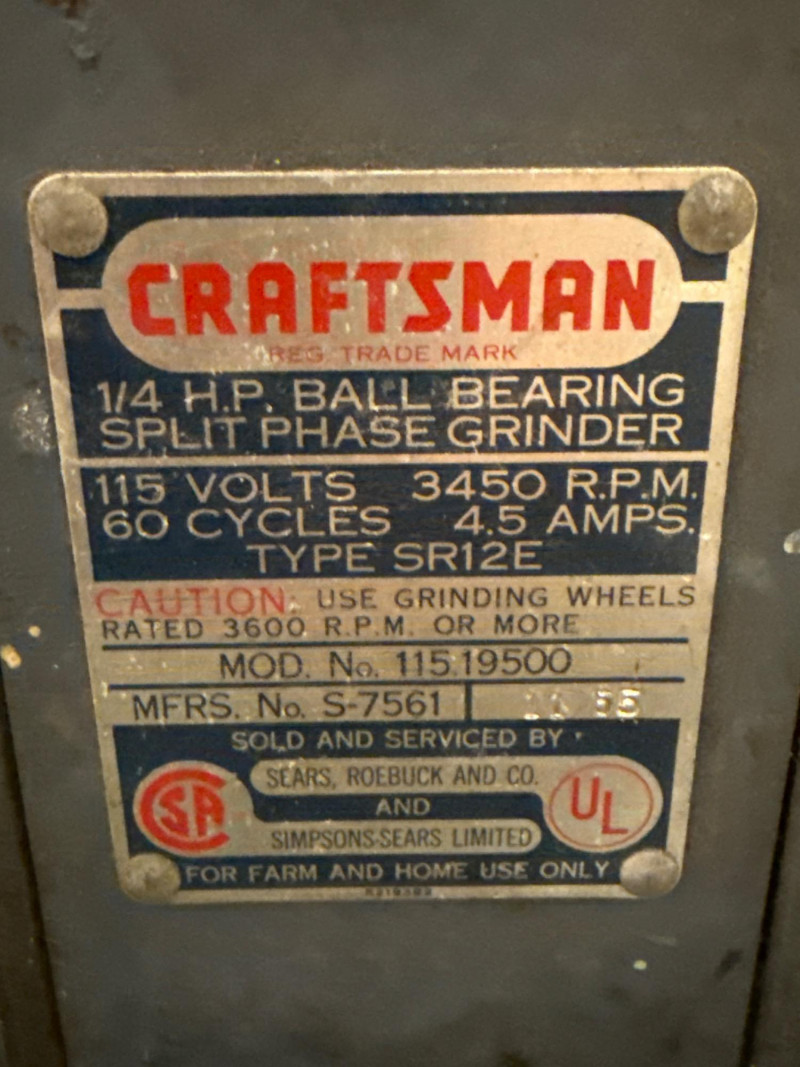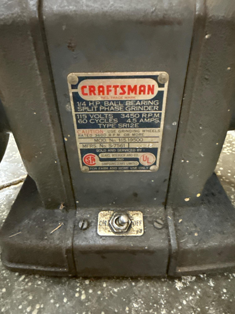 Vintage Craftsman Bench Grinder Model #11519500- Works!