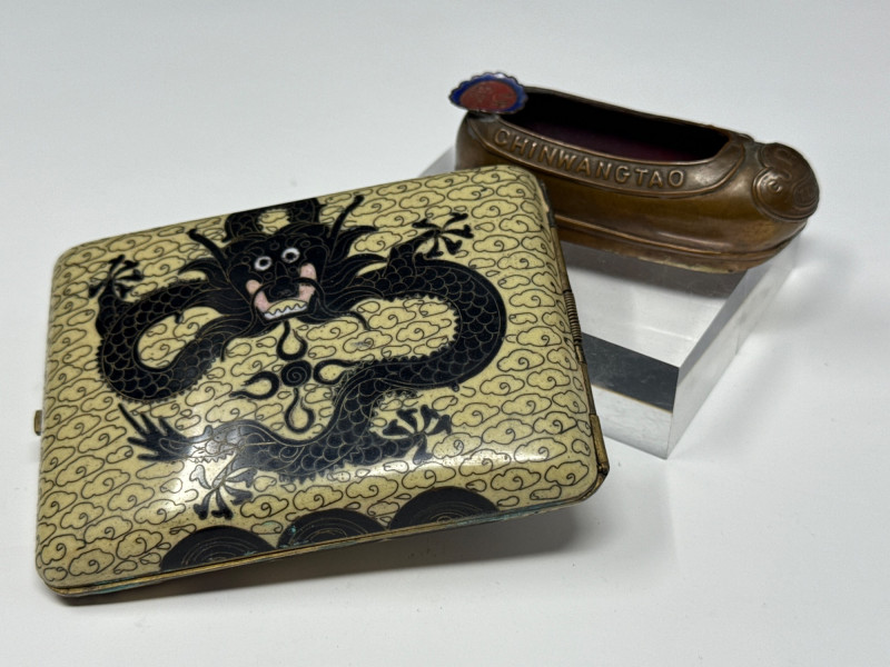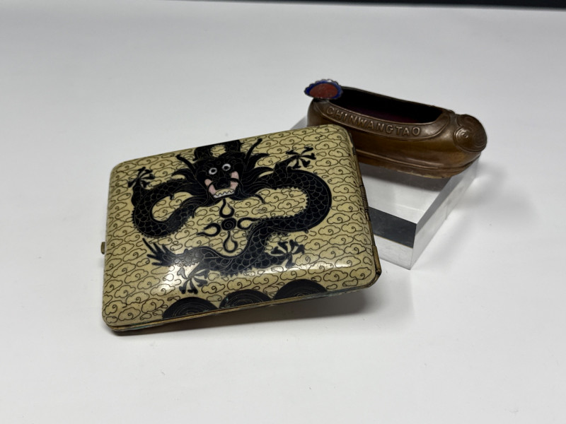 Lot # 45 - Antique Cloisonné Dragon Case & Ashtray