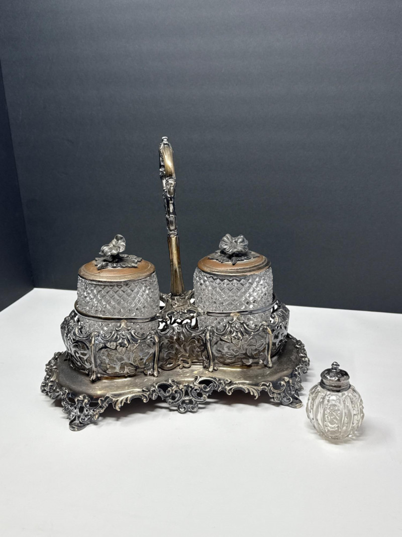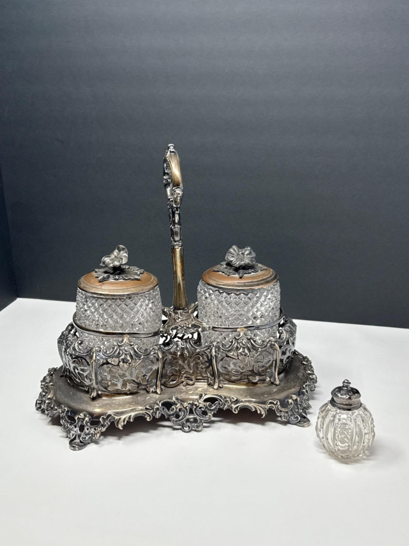 Lot # 18 - Antique Silverplated Condiment Set w/ Small Shaker