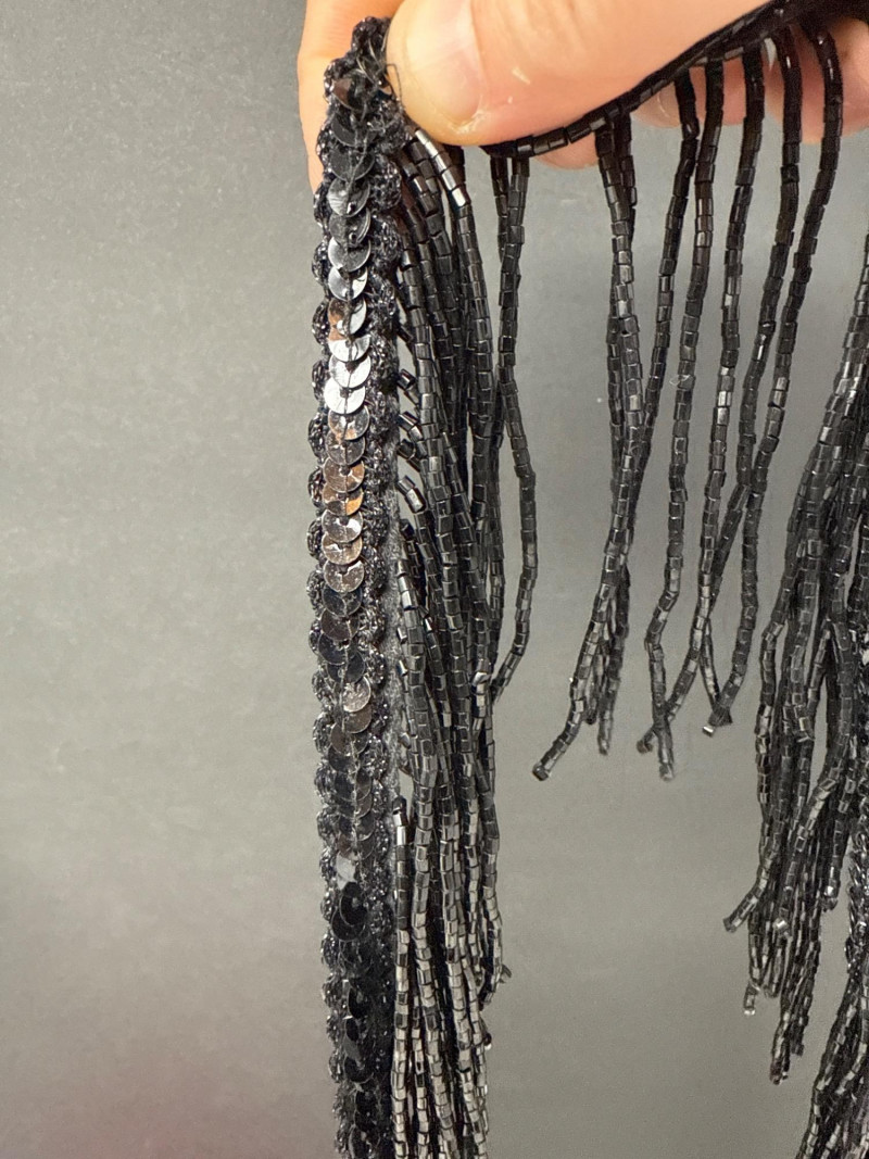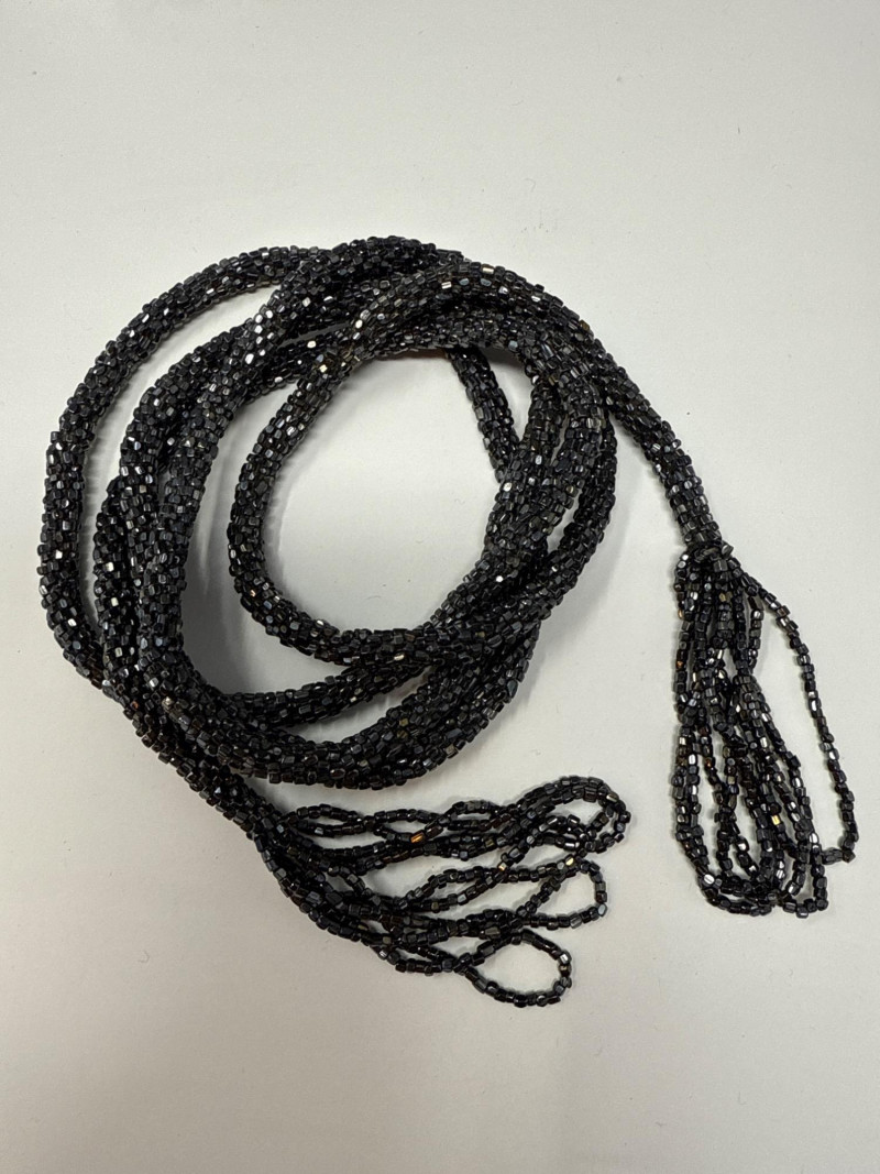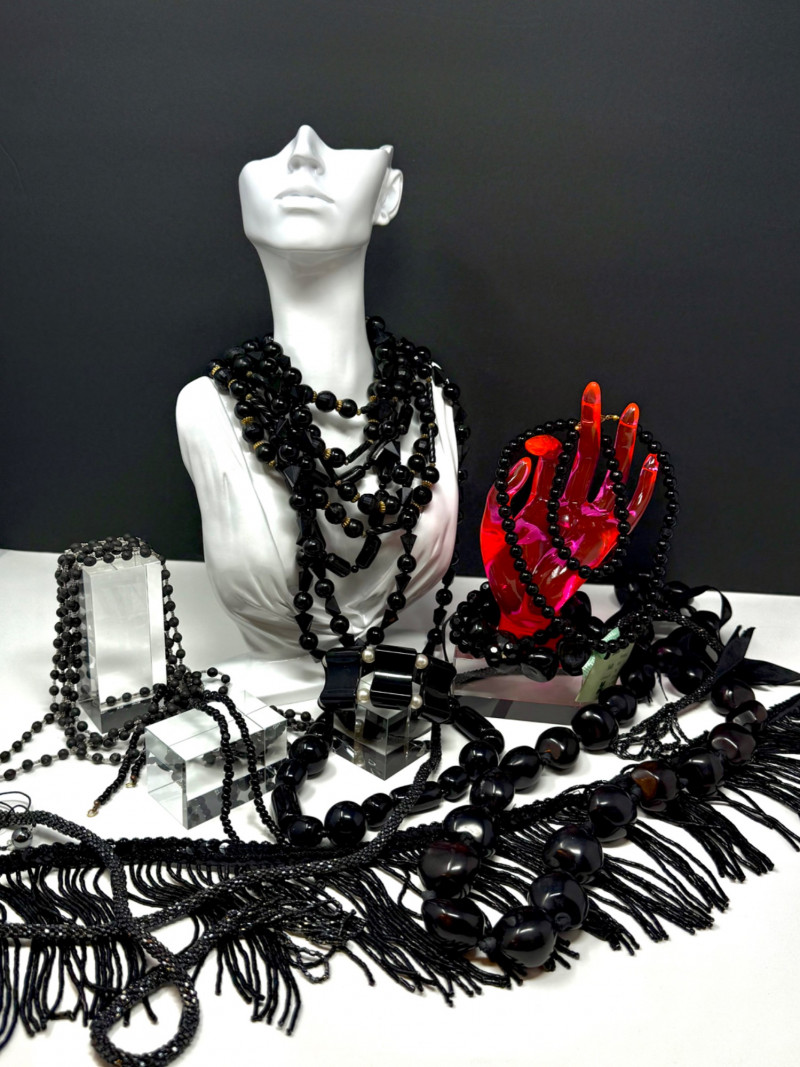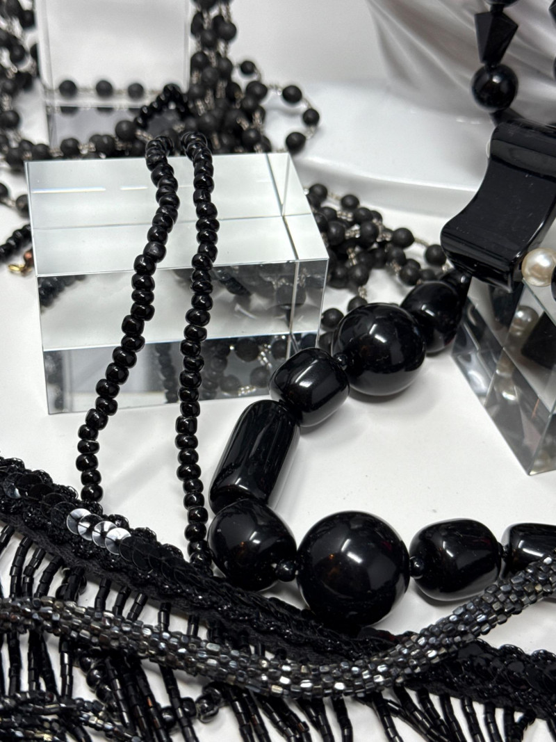 Vintage Black Chunky Beaded Jewelry Various bracelets, necklaces, beaded tassels and trim.