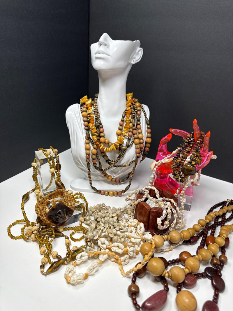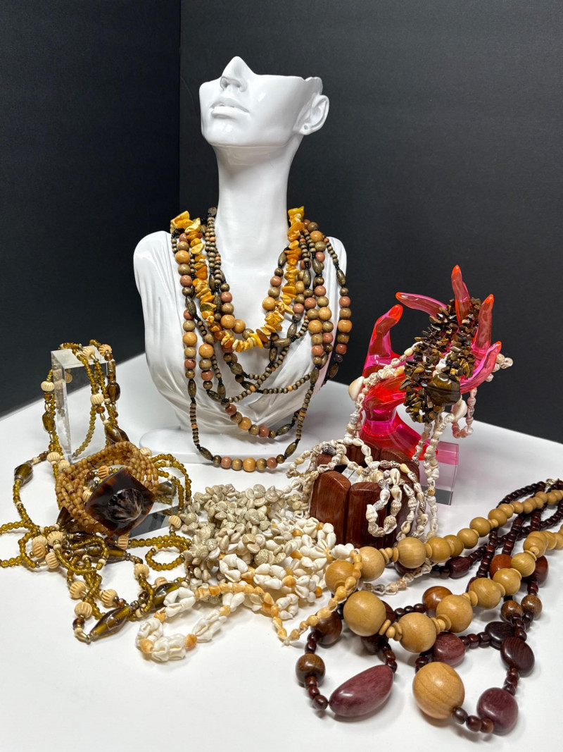 Vintage Wooden & Shell Jewelry Lot #1 Assorted Necklaces, Bracelets