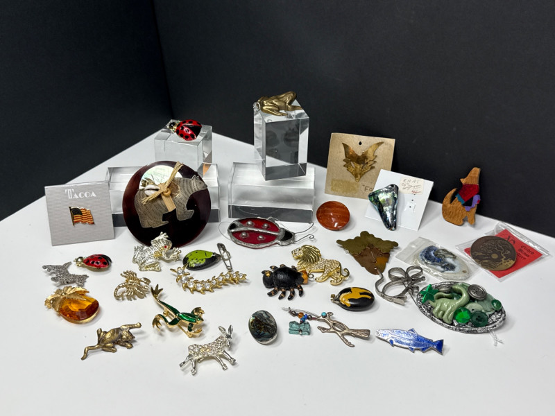 Lot # 122 - Assorted Pins, Pendants & Charms- Brass & More