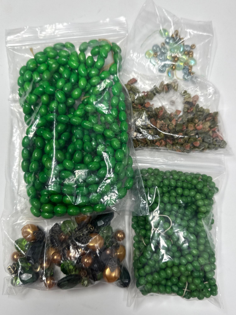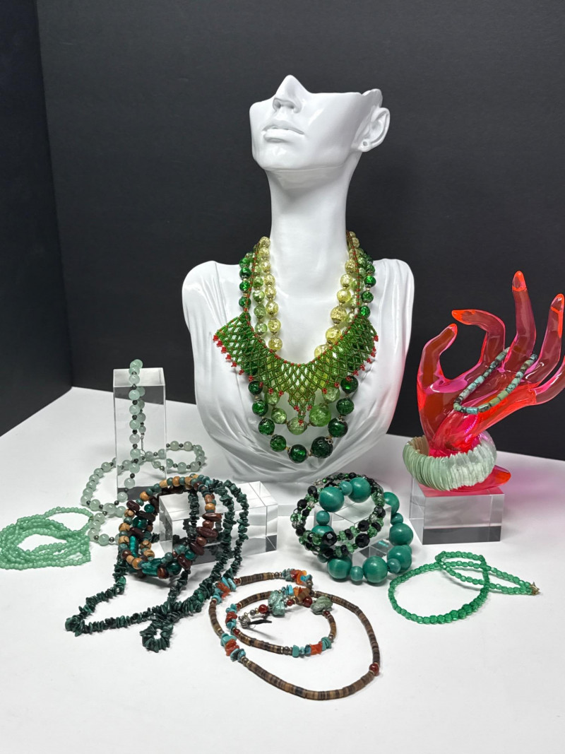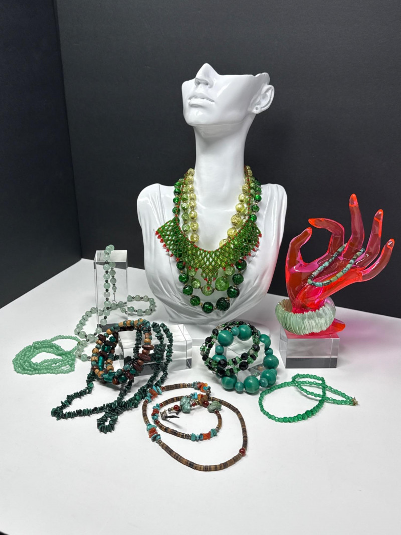 Vintage Green Beaded Jewelry Assortment of Bracelets, Necklaces and Beads