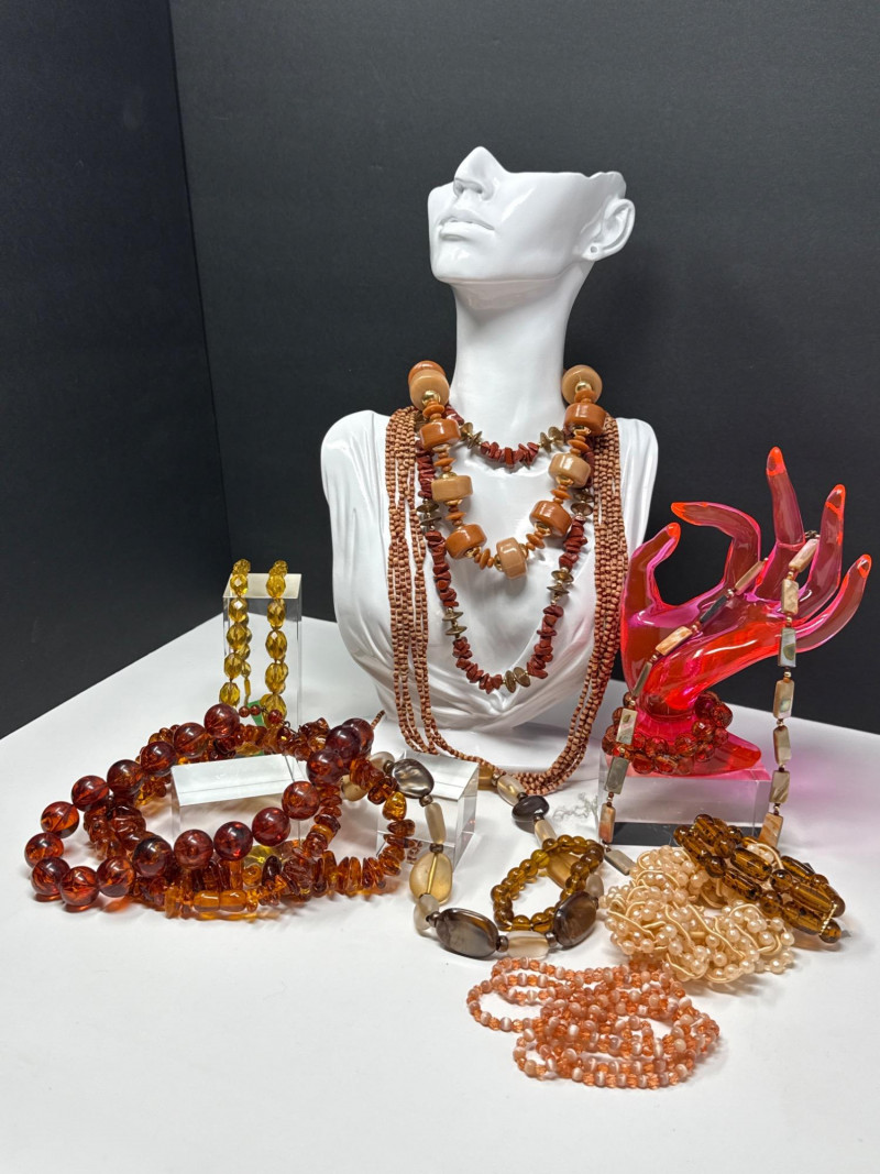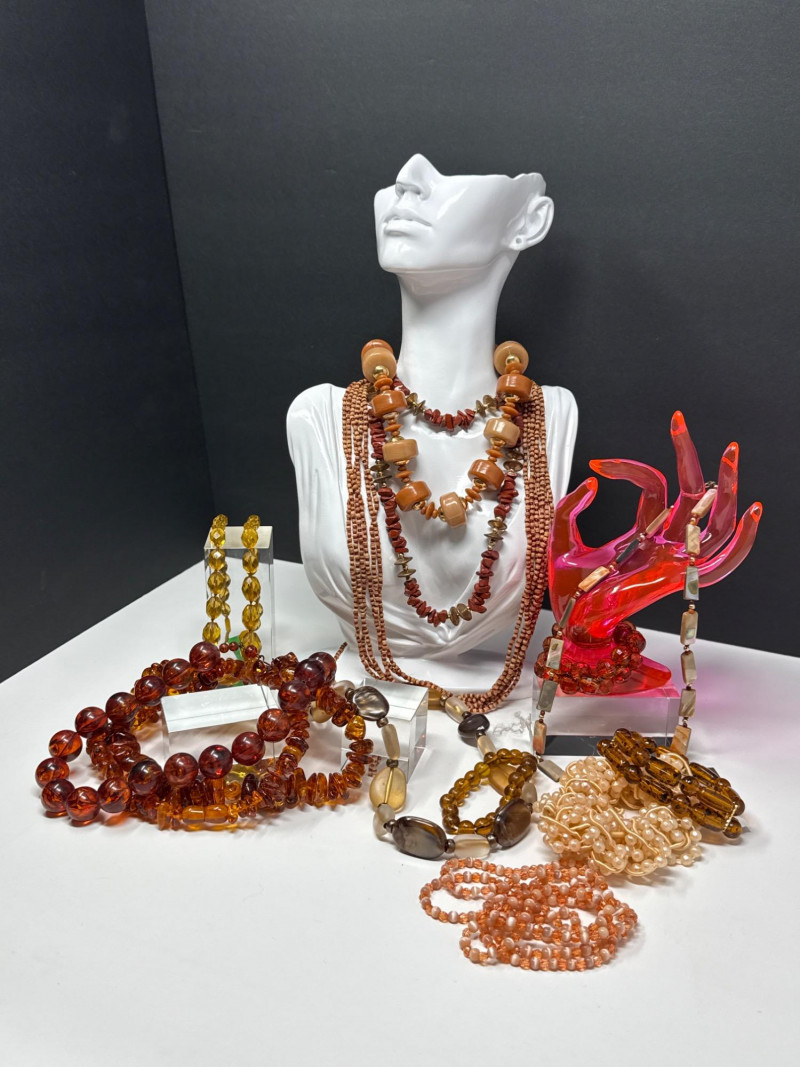 Vintage Amber Beaded Jewelry Assortment of Necklaces, Bracelets & Beads