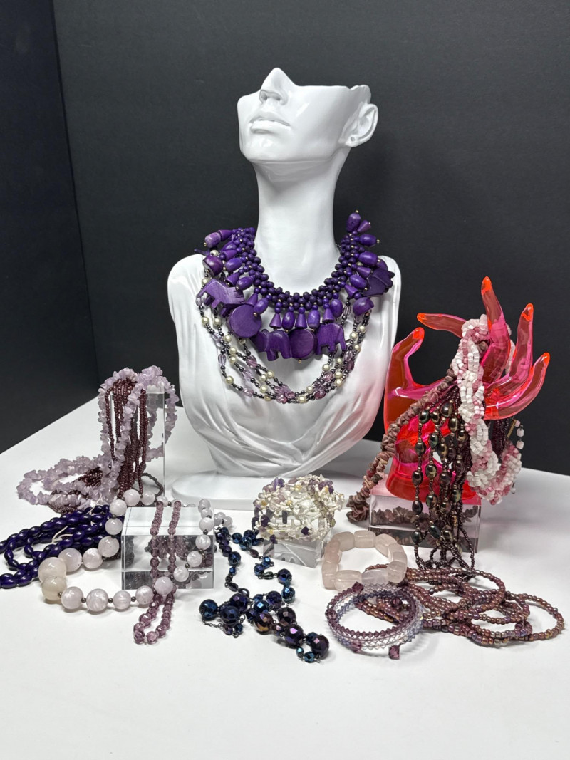 Vintage Purple Beaded Jewelry Assortment of Necklaces, Bracelets and Beads