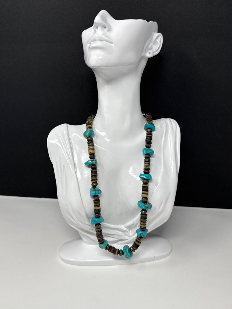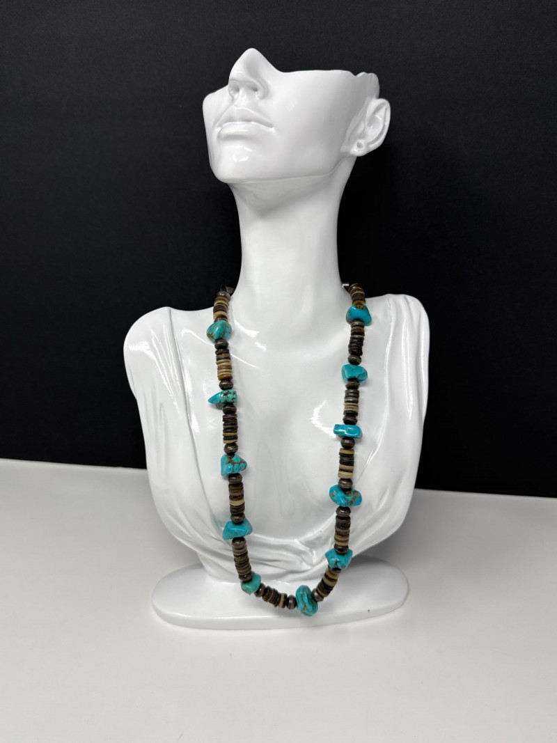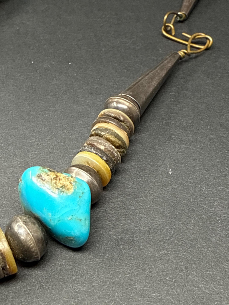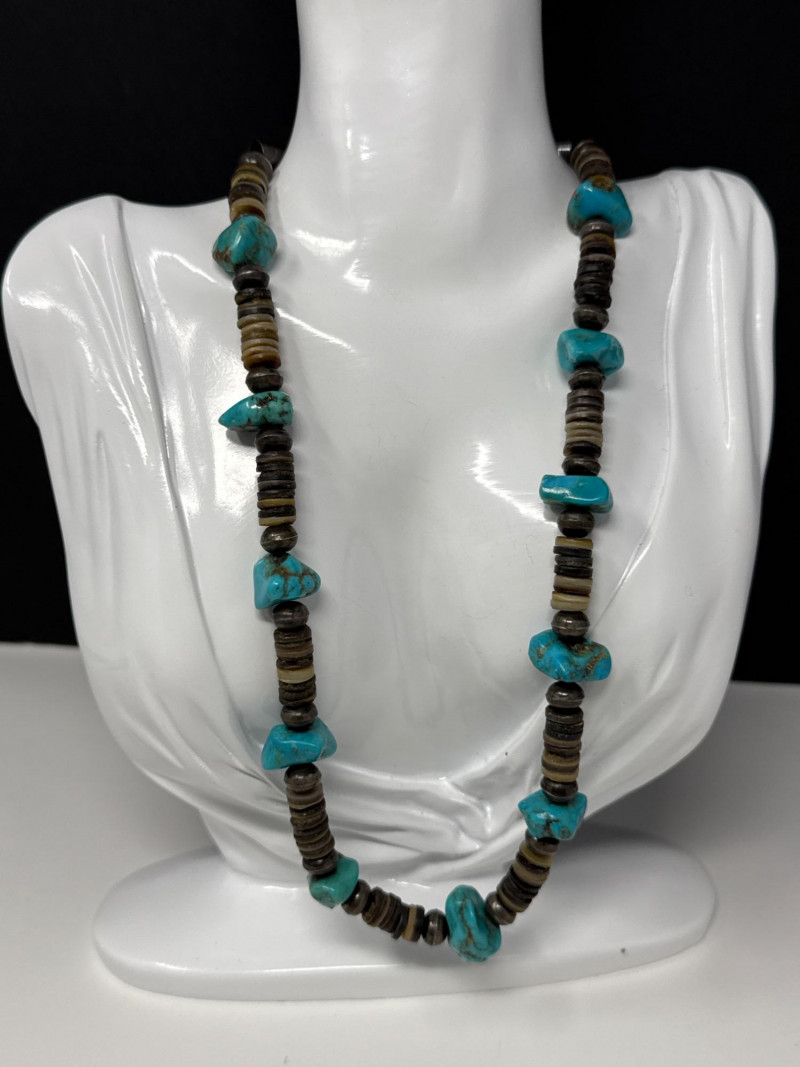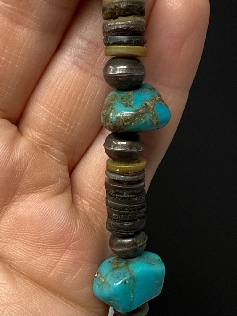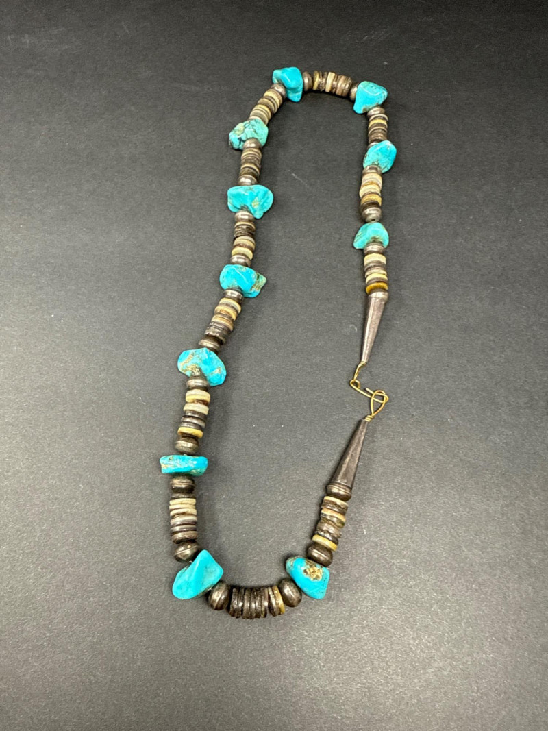 Lot # 27 - Navajo Turquoise Silver Beaded Necklace