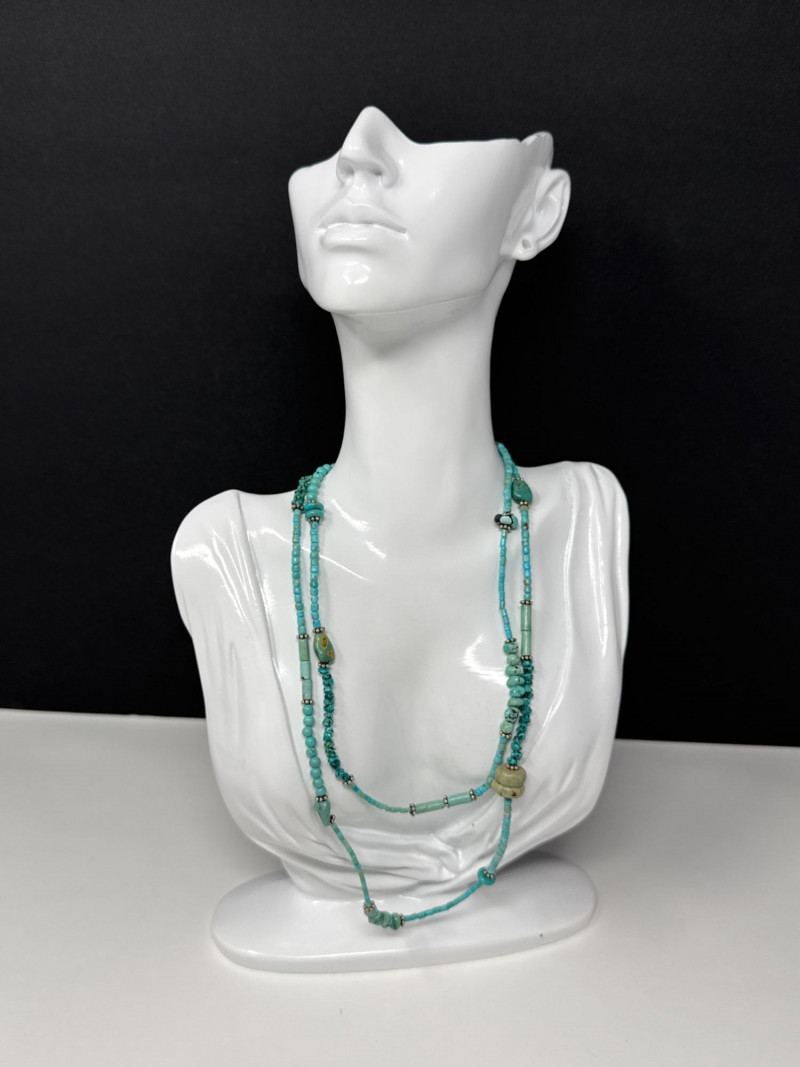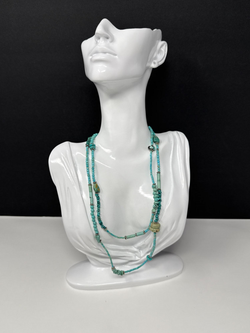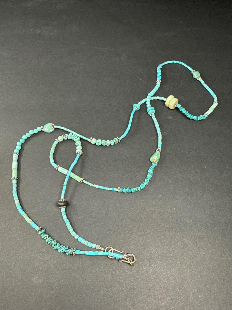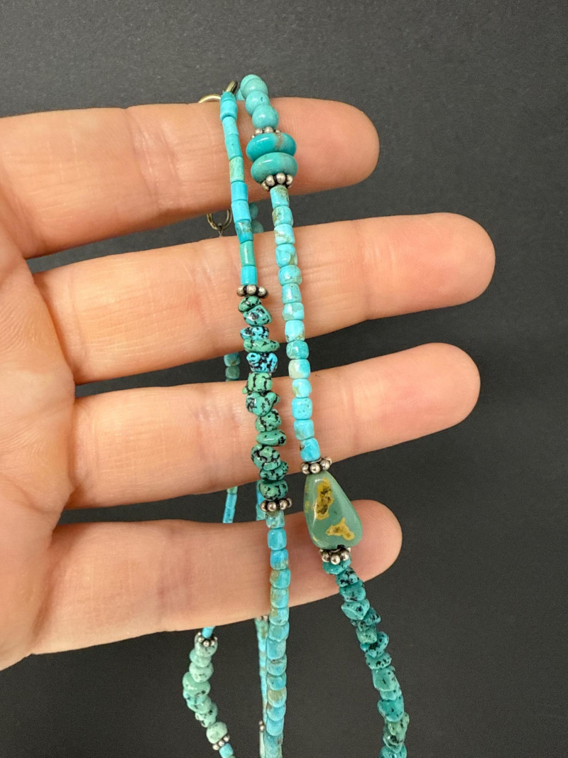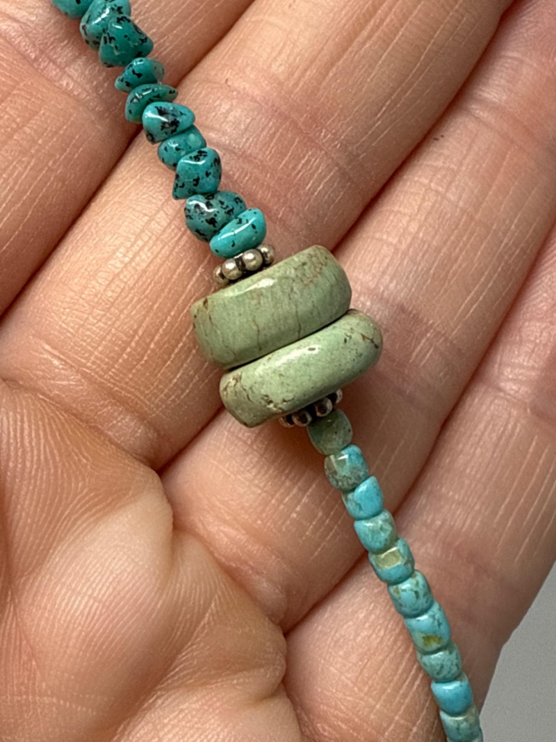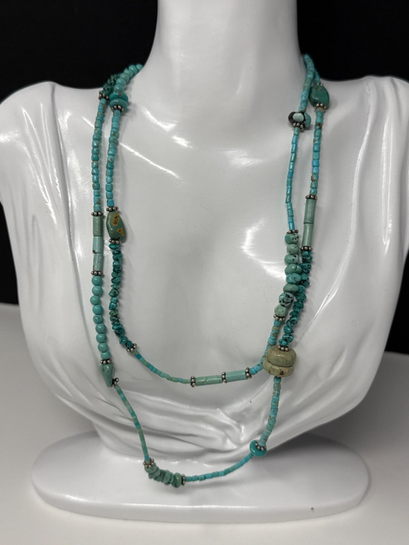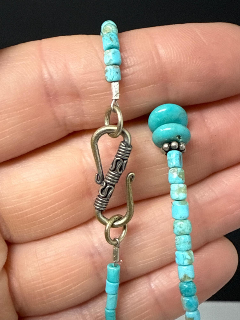 Lot # 12 - Vintage Native Silver & Turquoise Beaded Necklace