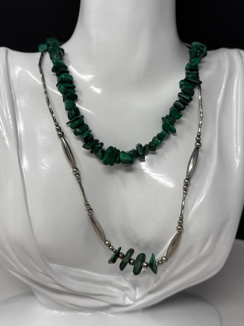 Lot # 143 - Vintage Malachite Beaded Necklace Pair